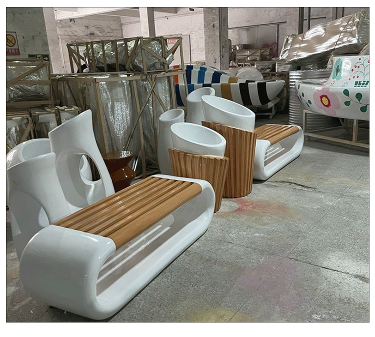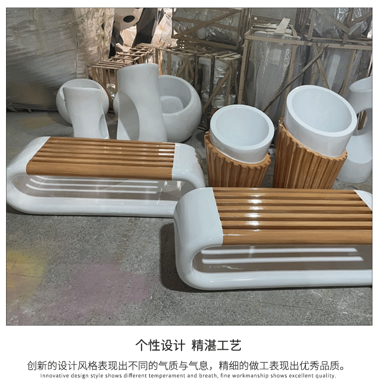 Creatividad al aire libre imitación de madera sólida fibra de vidrio taburete de ocio centro comercial hotel oficina oficina oficina sala de ventas asiento combinación de maceta