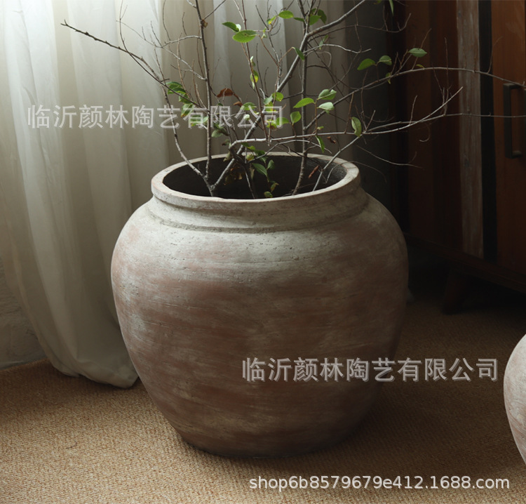 Vintage cement maceta de flores silencioso viento verde ornamentos maceta de flores gran abdomen jar jarro decoración de hotel jarro antiguo