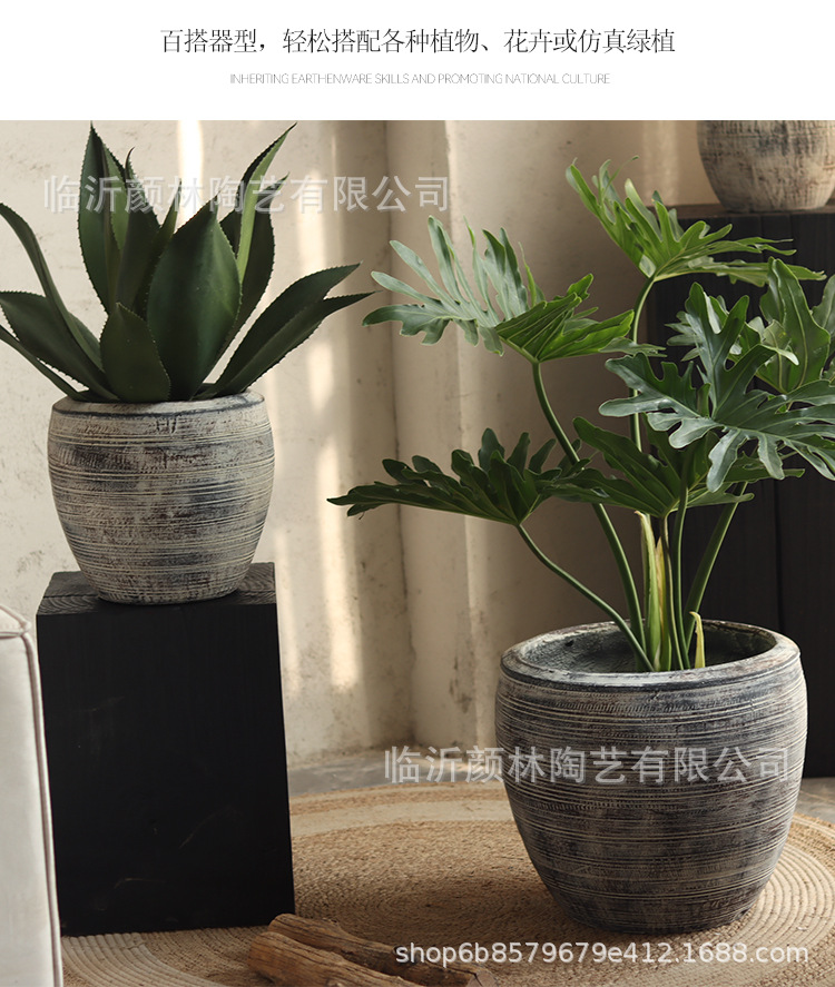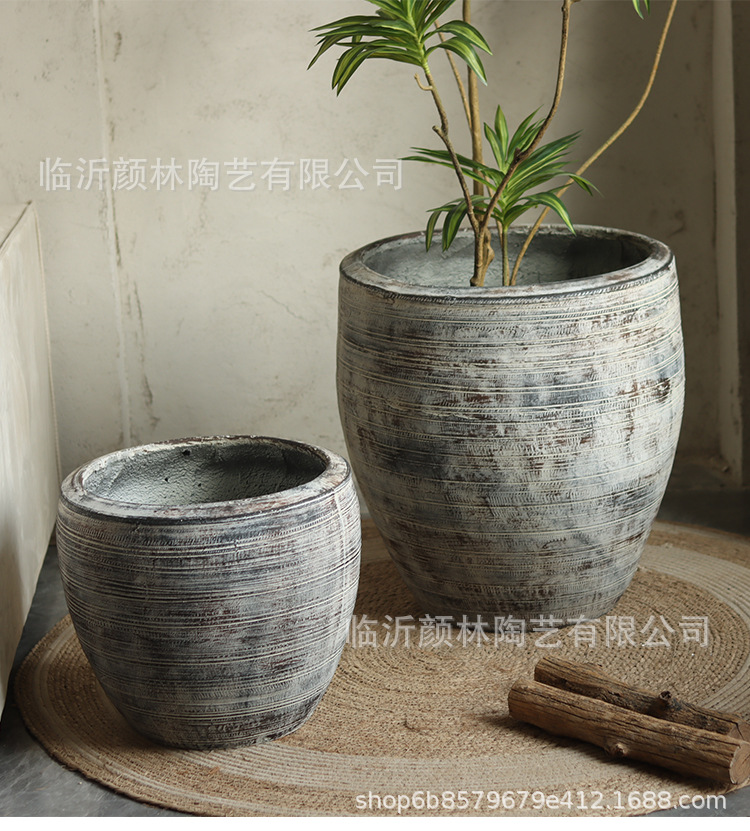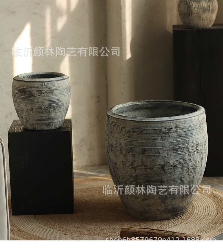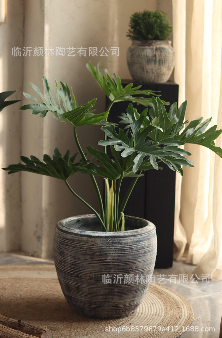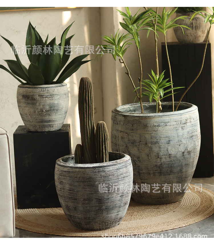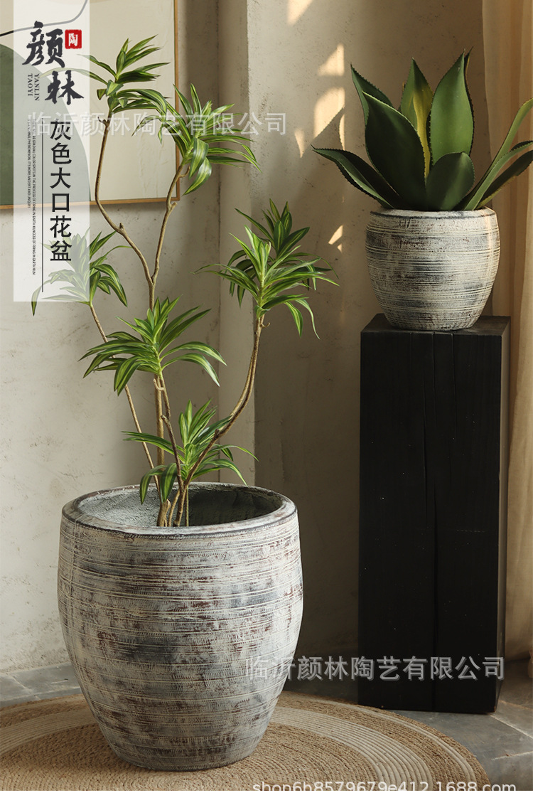 Retro gris creativo textura interior sala de estar maceta verde hotel centro comercial decoración patio gran maceta de aterrizaje