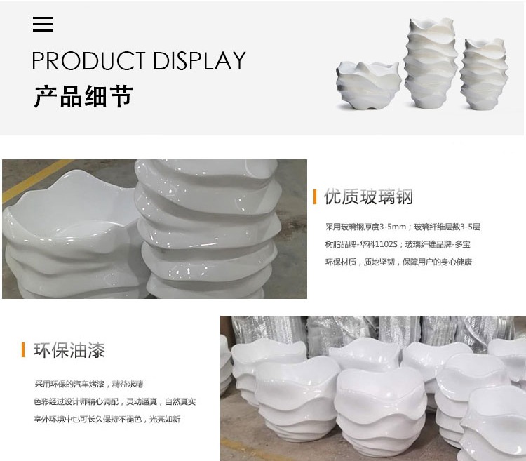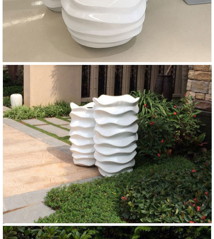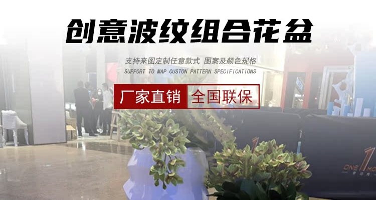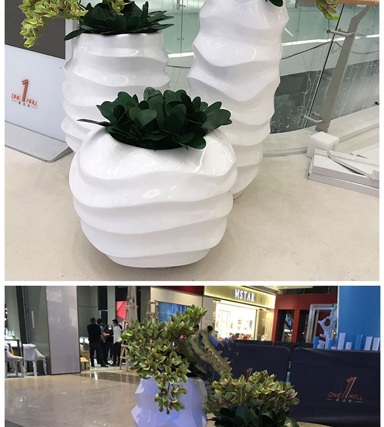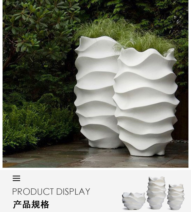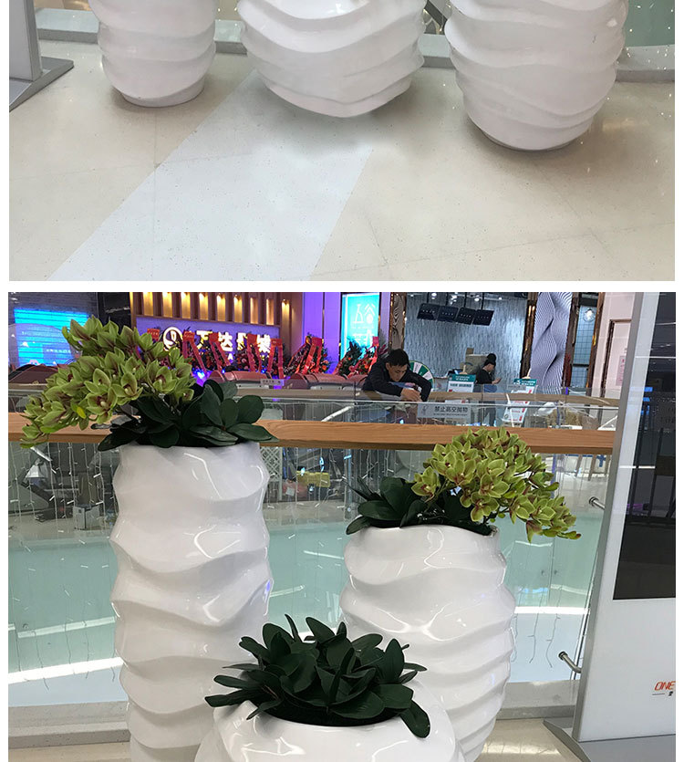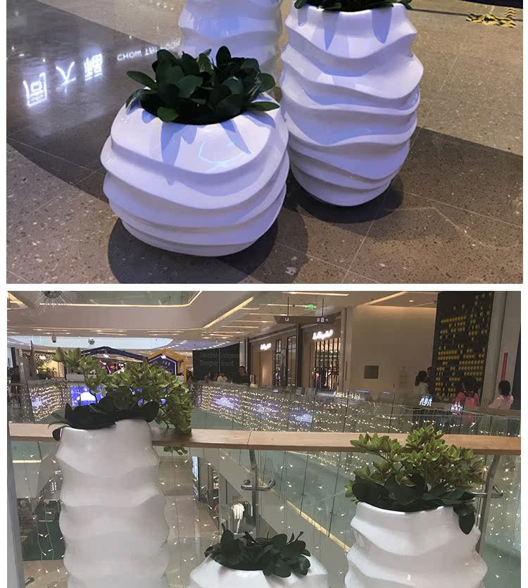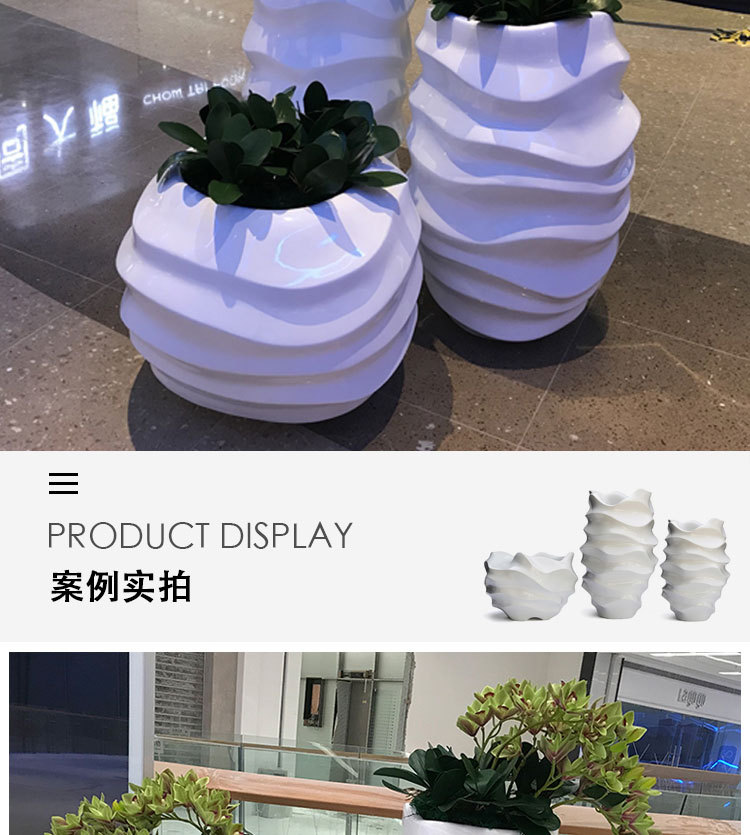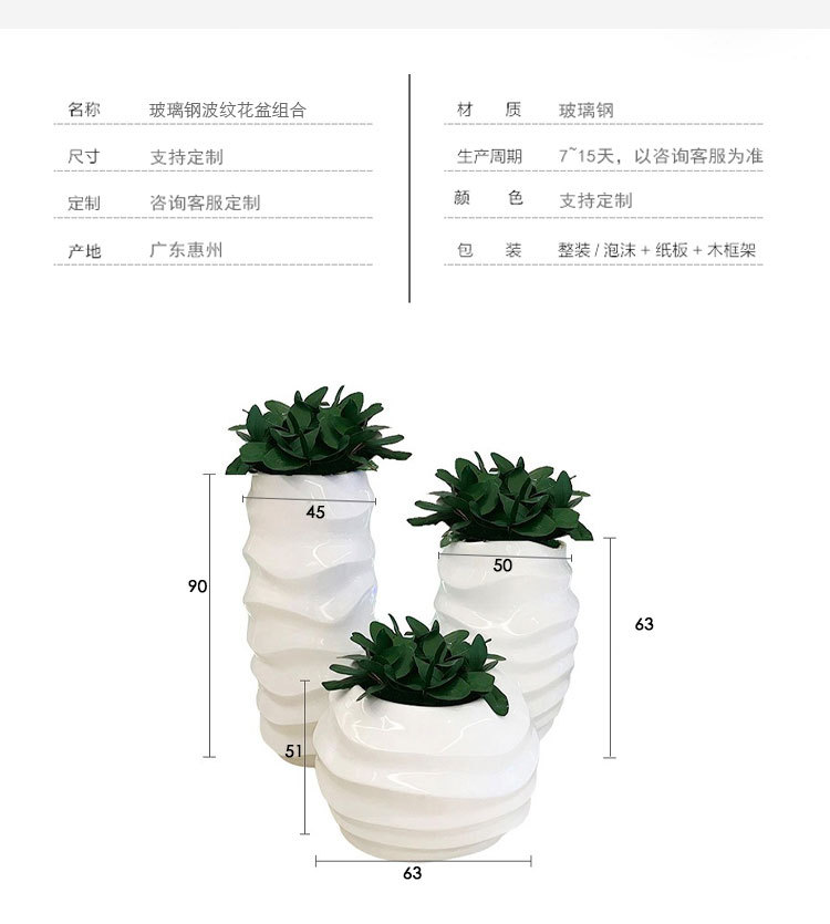 Fibra de vidrio corrugada combinación de maceta de flores centro de negocios hotel club de ocio maceta de fibra de vidrio bonsai flores