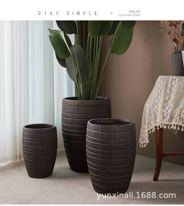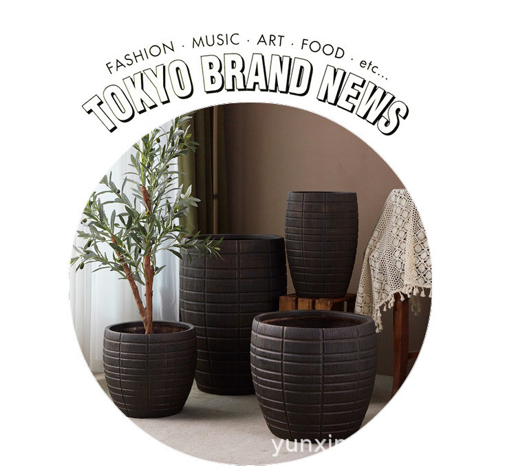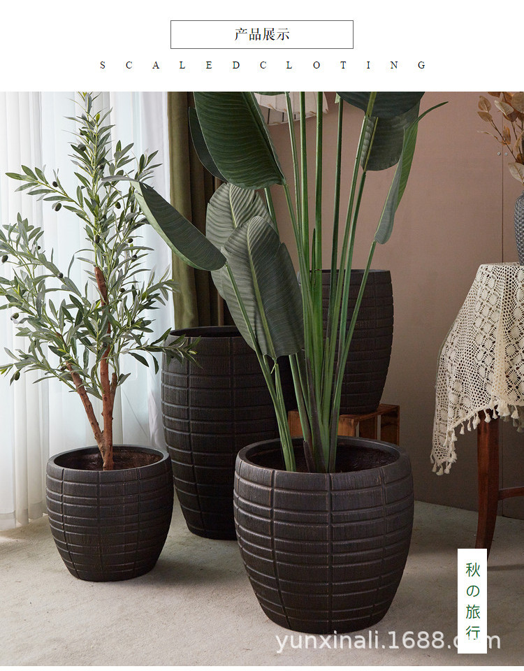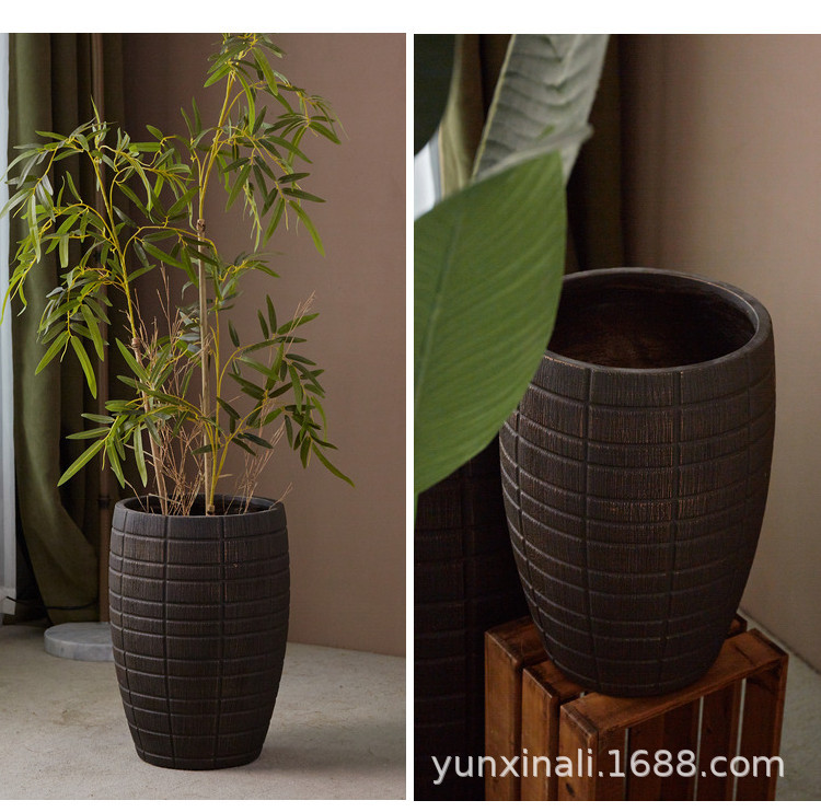 Creativo estilo nórdico de alta calidad negro oro magnesio barro relieve de gran calibre maceta interior centro comercial Nan Tian bambú ornamentos verdes