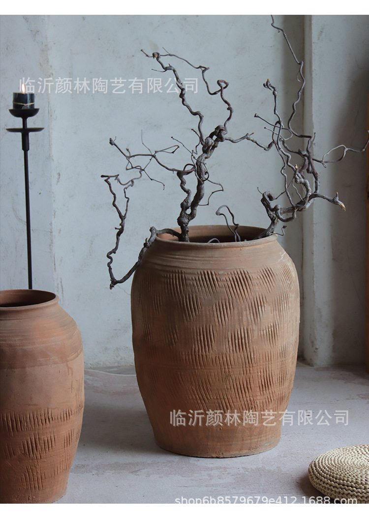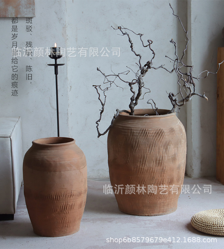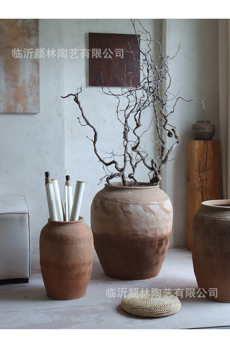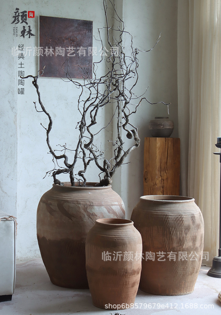 Hecho a mano vasijas de cerámica de tierra combinación de vasijas de cerámica Zen antiguo arte chino decoración de vivienda de cerámica gruesa