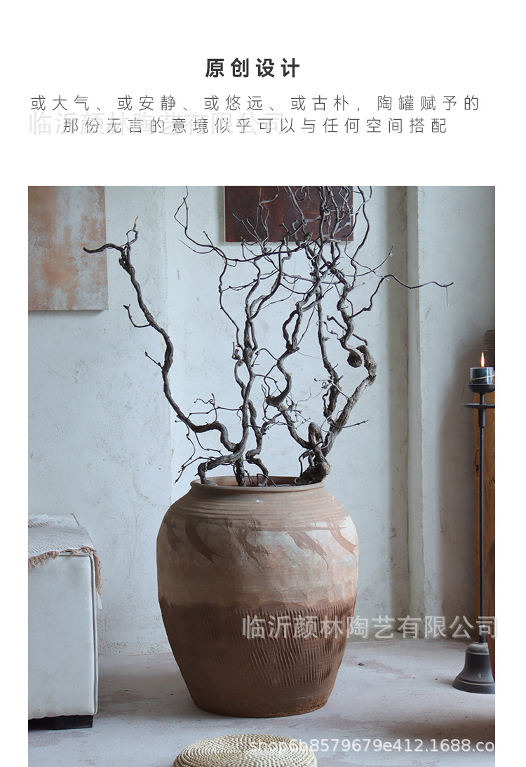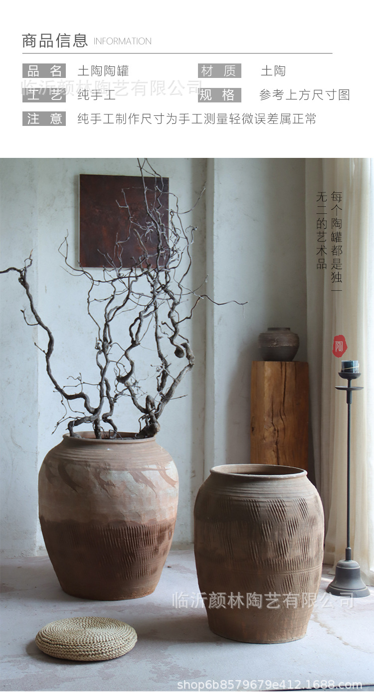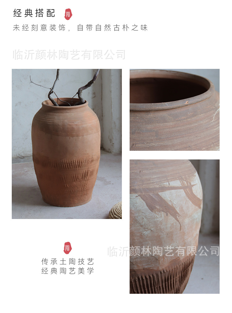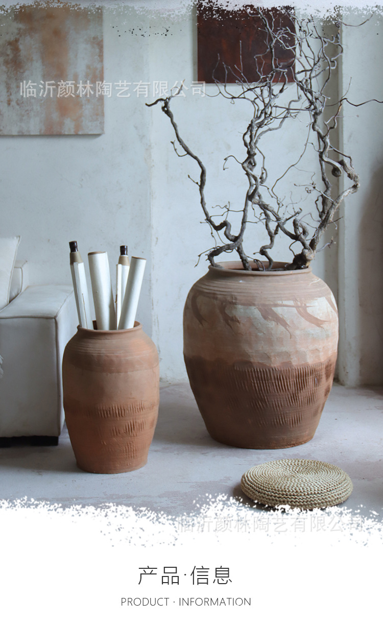 Hecho a mano vasijas de cerámica de tierra combinación de vasijas de cerámica Zen antiguo arte chino decoración de vivienda de cerámica gruesa