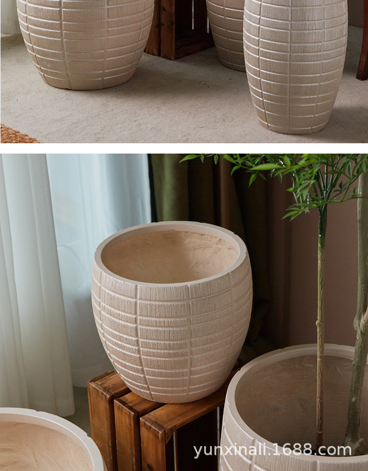 Nuevo estilo nórdico de alta sensación de magnesio de barro creativo en relieve de alta profundidad maceta interior centro comercial helechos verdes maceta especial