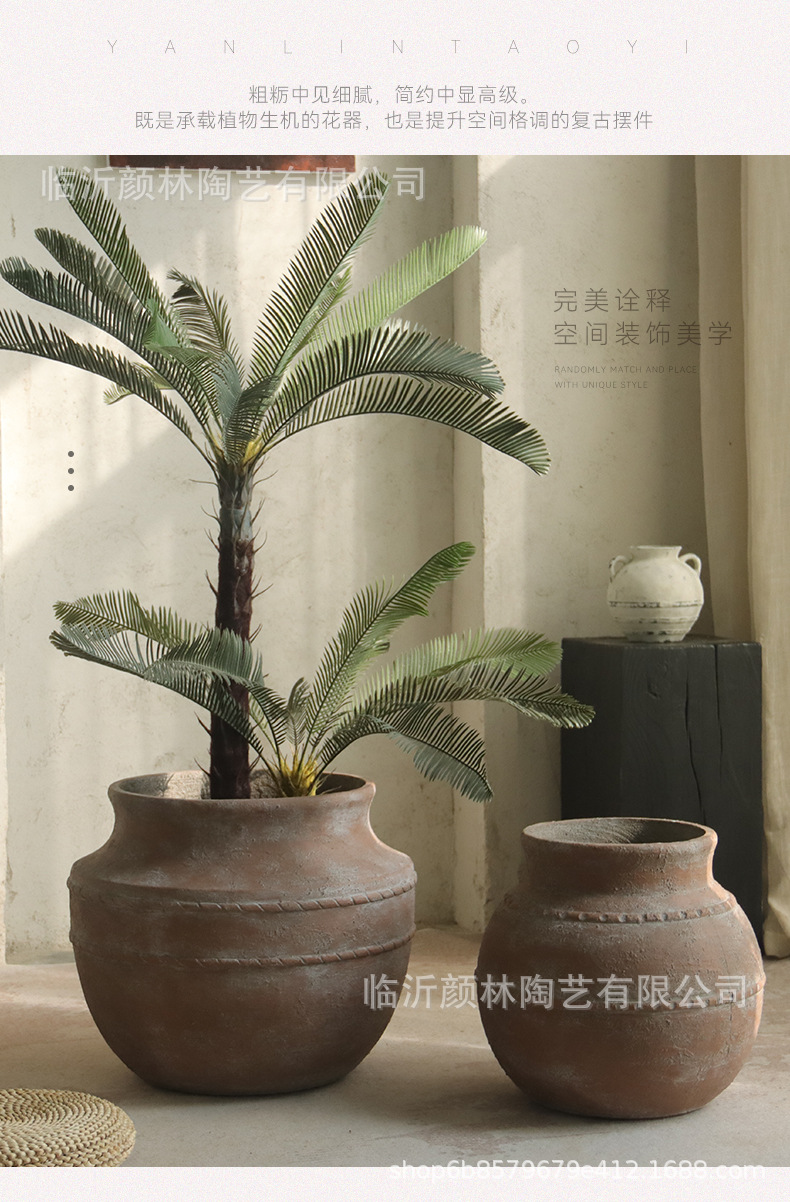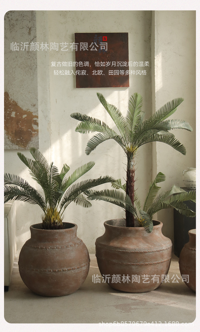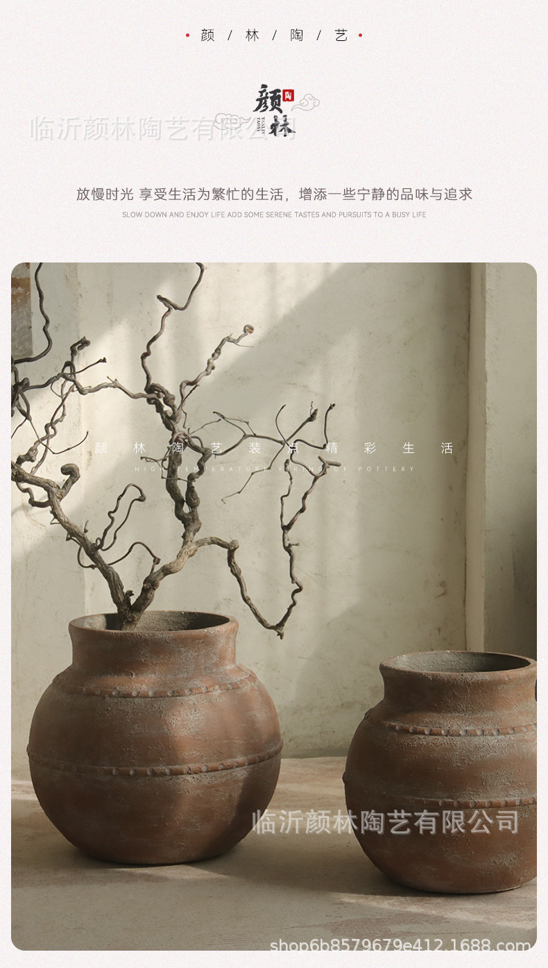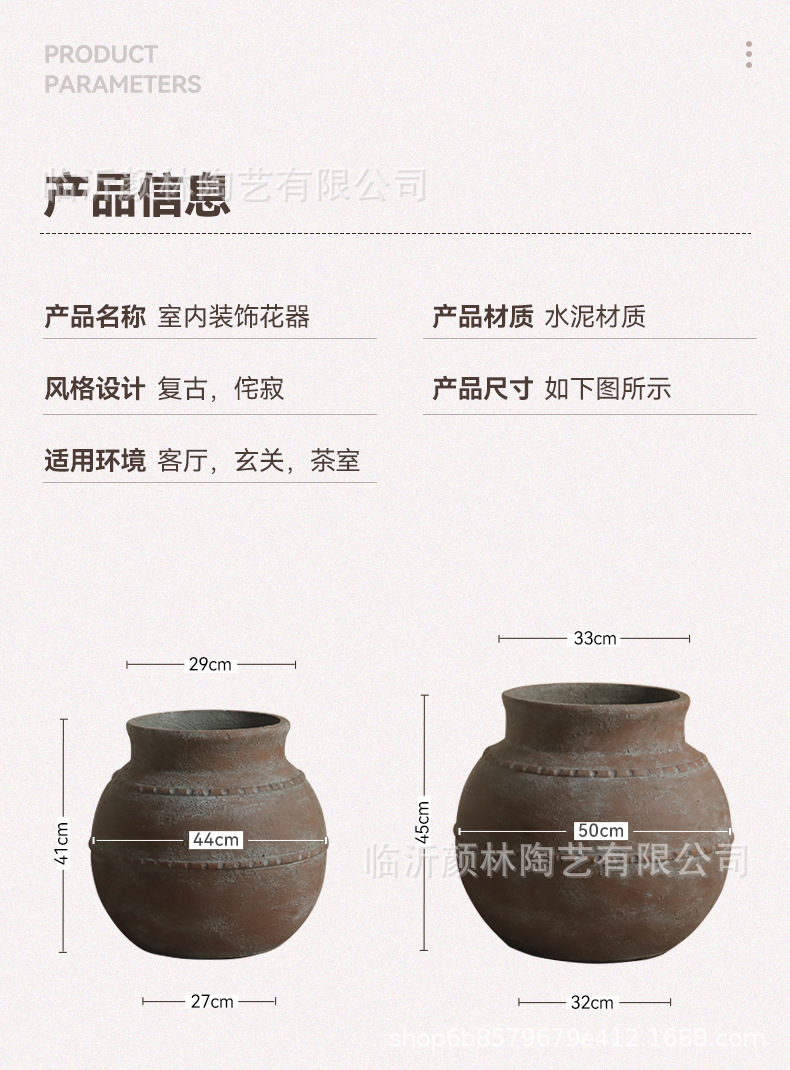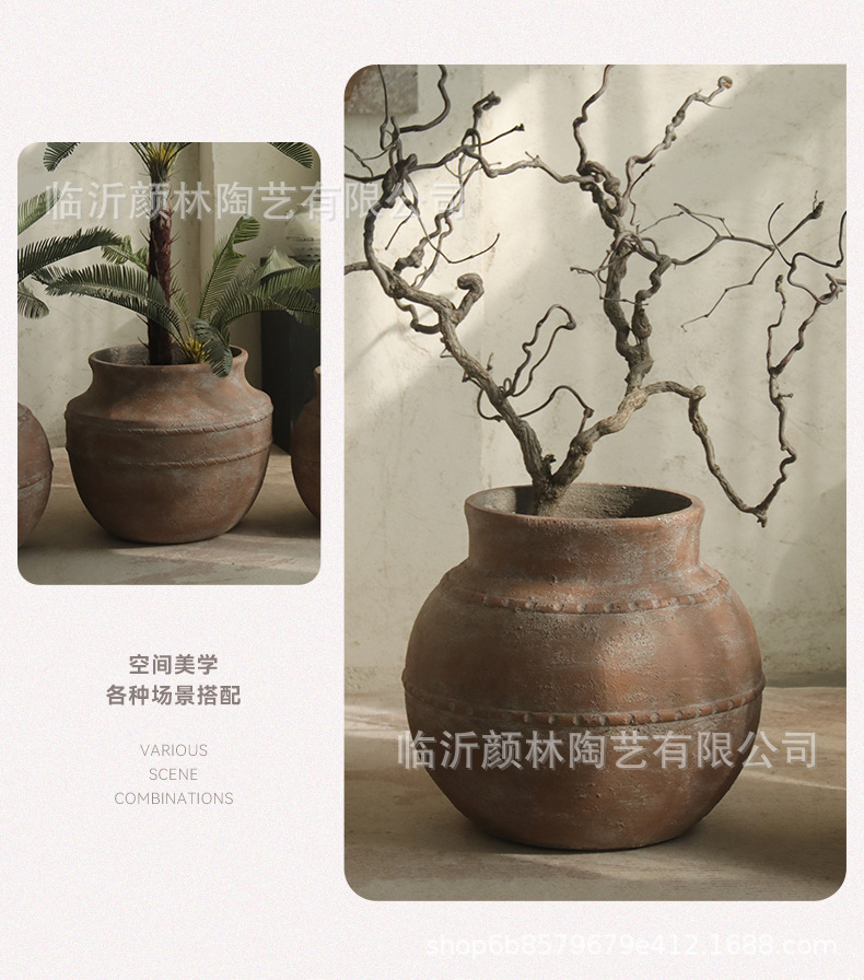 Retro manuales maceta de cemento gran vaso de estómago de textura natural Zen sala de té plantación verde ramas secas decoración floral