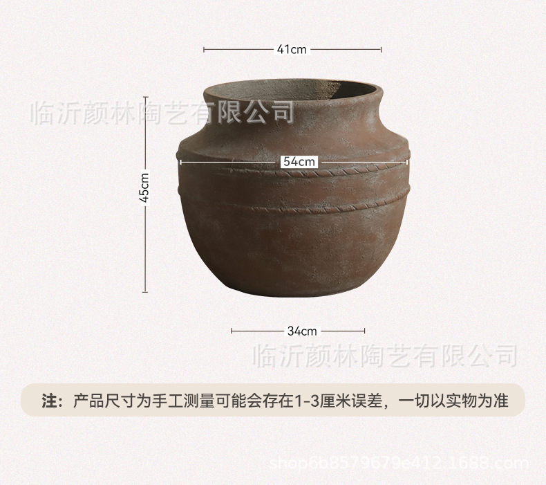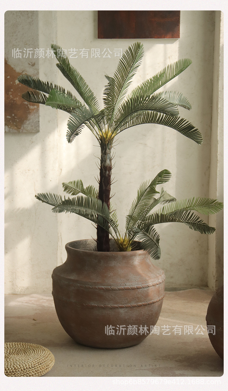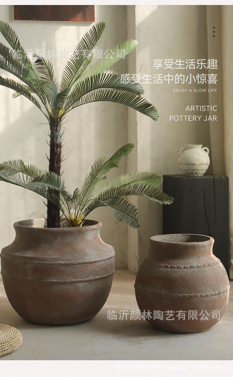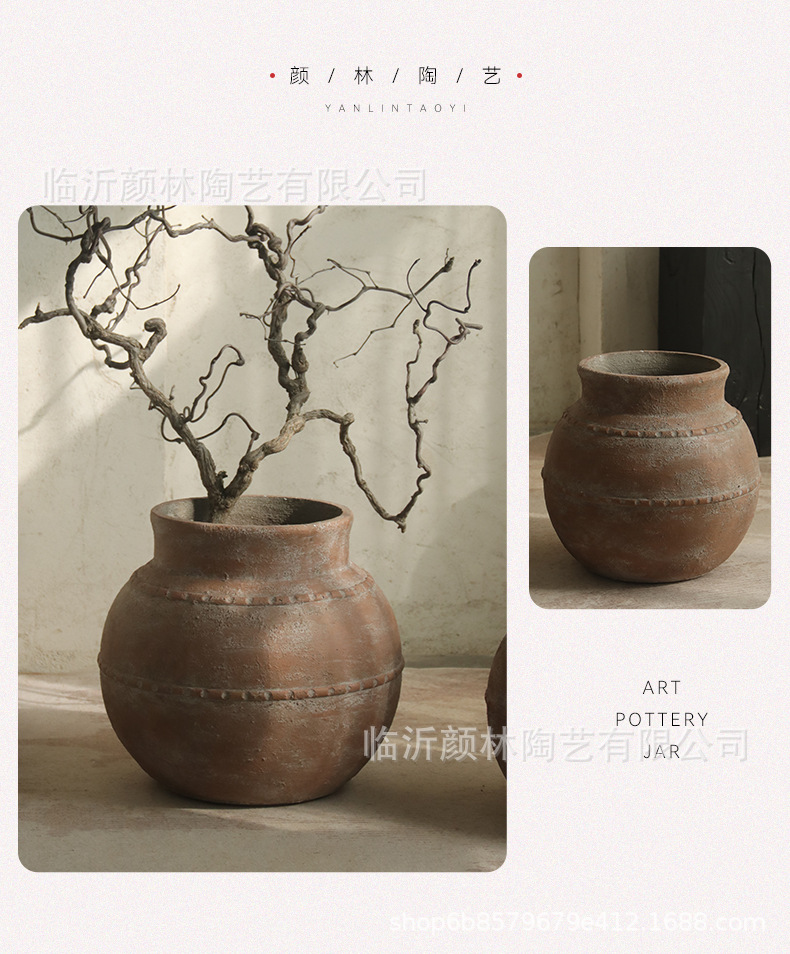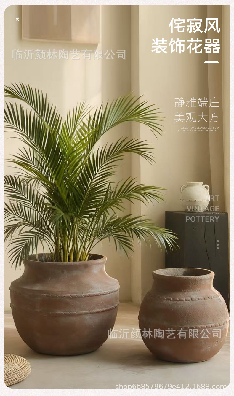 Retro manuales maceta de cemento gran vaso de estómago de textura natural Zen sala de té plantación verde ramas secas decoración floral
