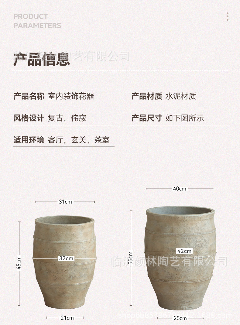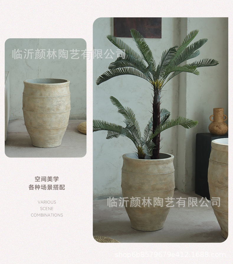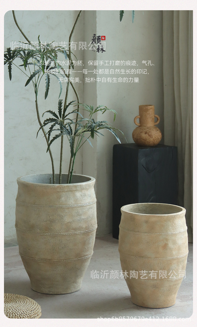 maceta de cemento de alto tipo de plantación de suelo decoración interior simple gran plantación de plantas verdes