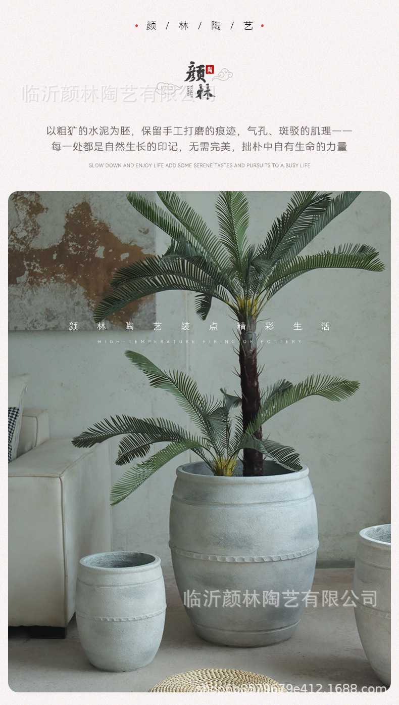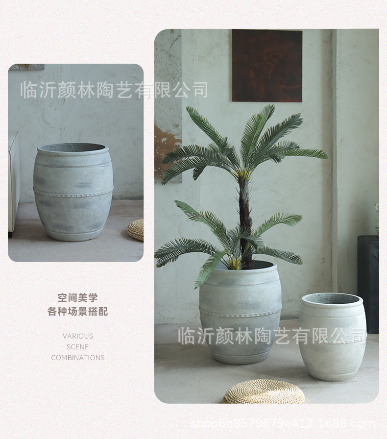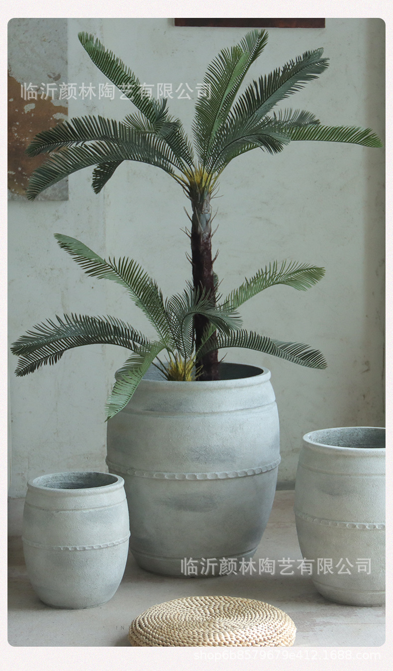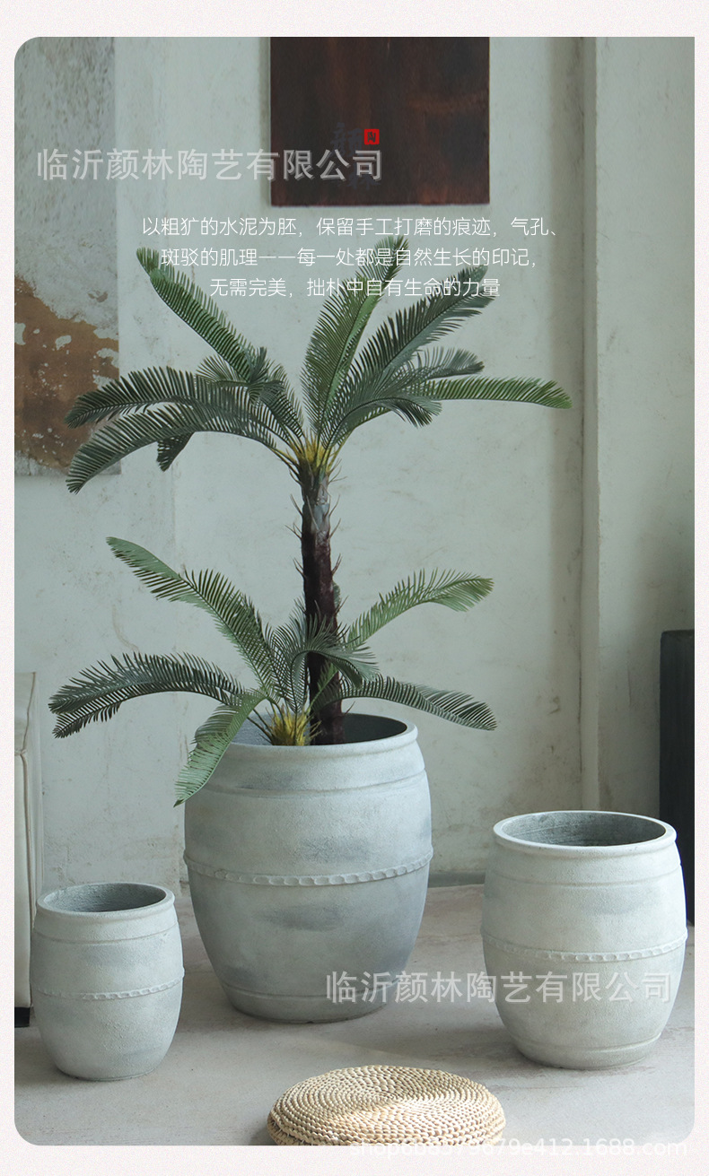 Retro flowerpot de suelo blanco gran calibre cemento sala de estar sala de té decoración de viento tranquilo gran contenedor de plantación verde