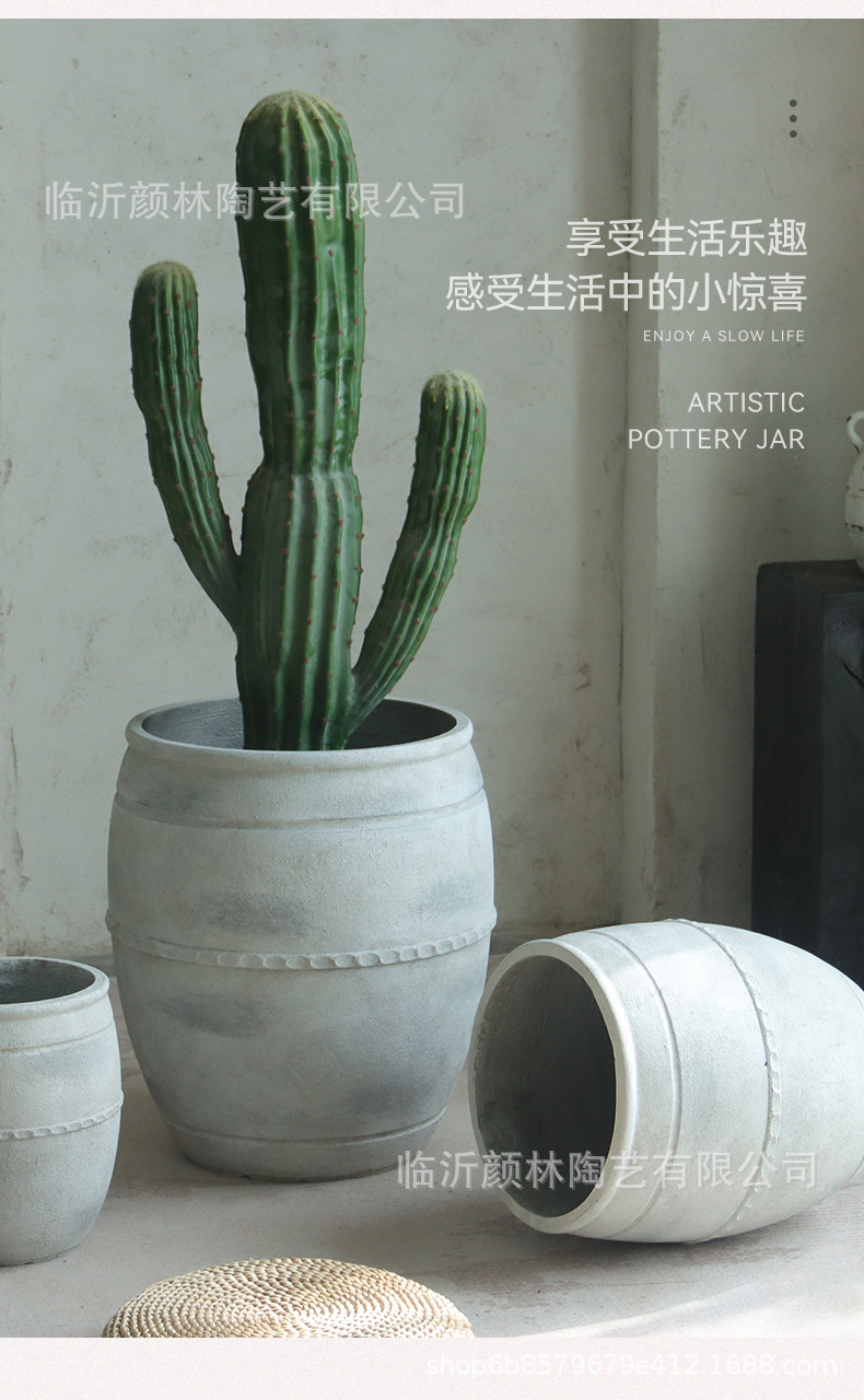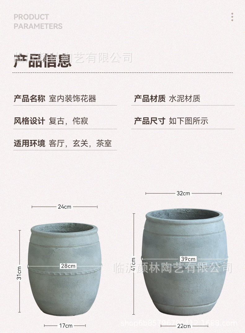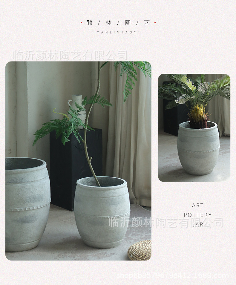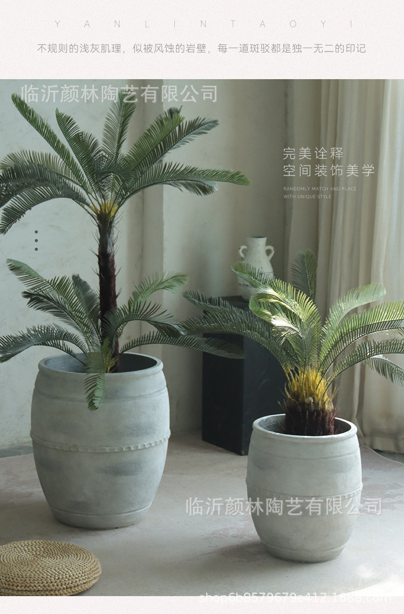 Retro flowerpot de suelo blanco gran calibre cemento sala de estar sala de té decoración de viento tranquilo gran contenedor de plantación verde