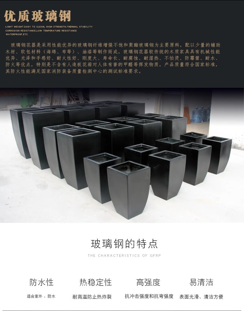 Fibra de vidrio al aire libre gran maceta hotel centro comercial club de ocio maceta de fibra de vidrio combinación maceta de flores
