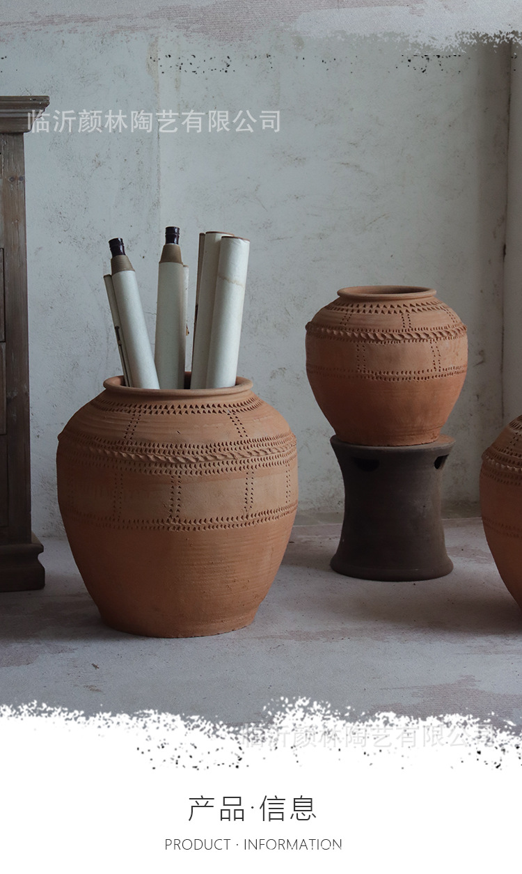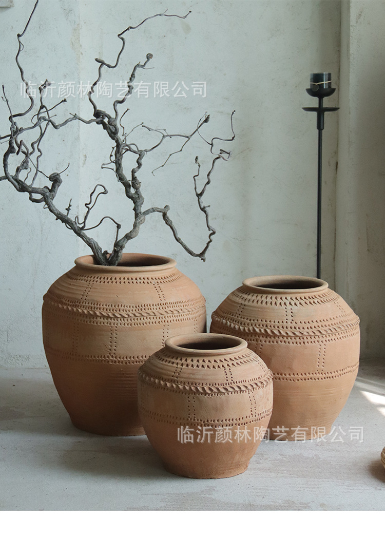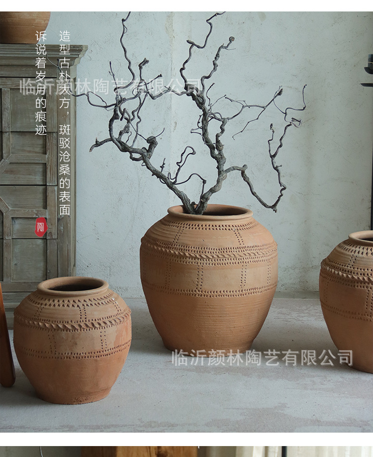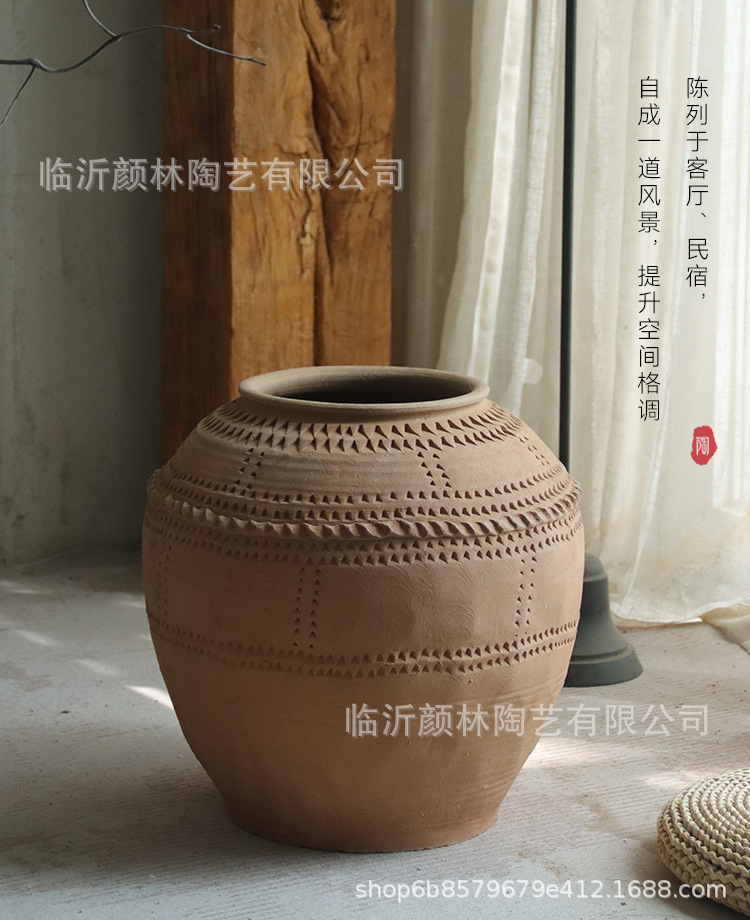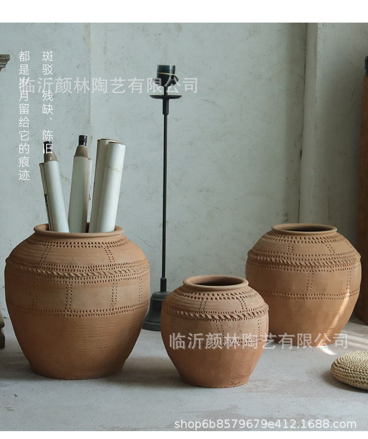Gran barro de barro de barro antiguo vasijas de tierra vasijas de flores de cerámica gruesa sala de estar modelo de vivienda decoración de la sala de decoración de la ventana silenciosa