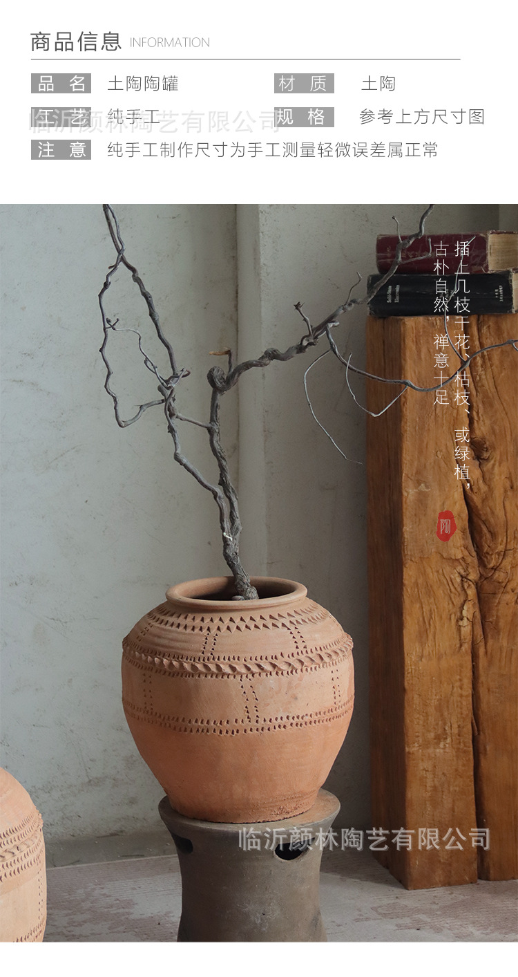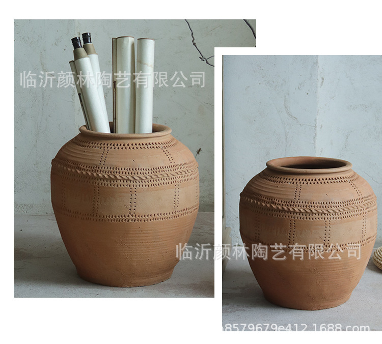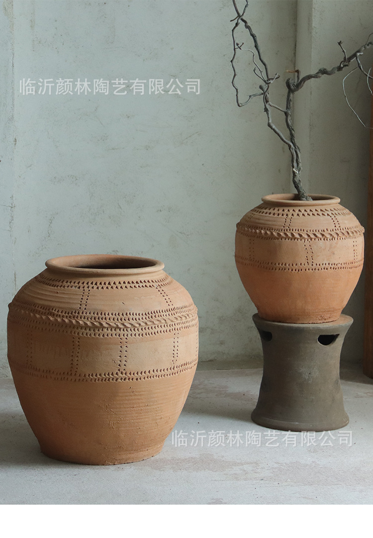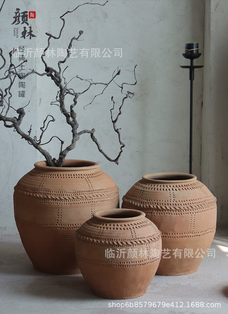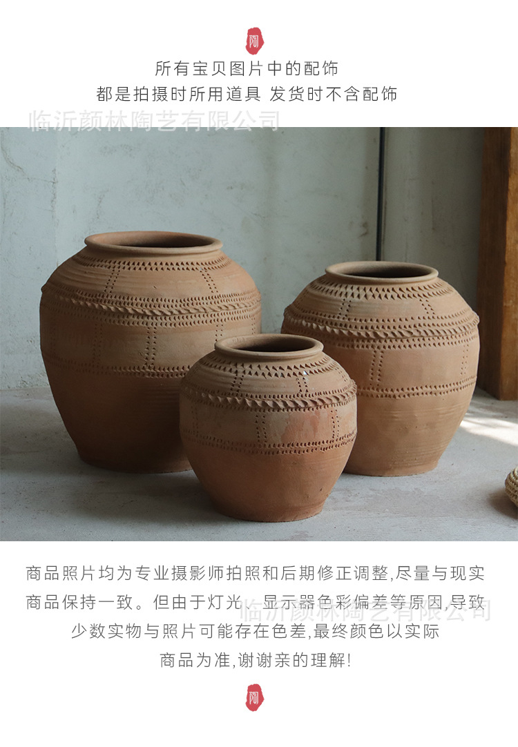 Gran barro de barro de barro antiguo vasijas de tierra vasijas de flores de cerámica gruesa sala de estar modelo de vivienda decoración de la sala de decoración de la ventana silenciosa
