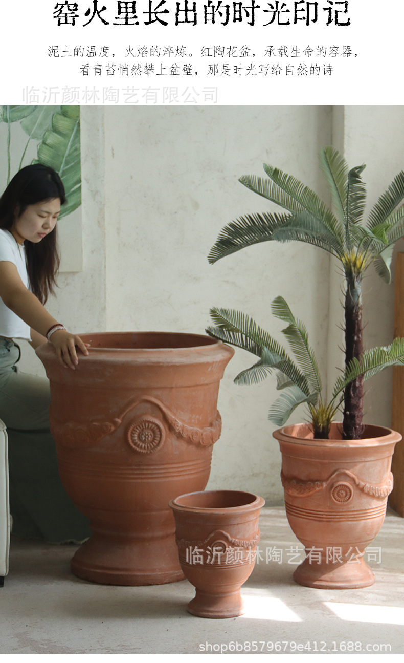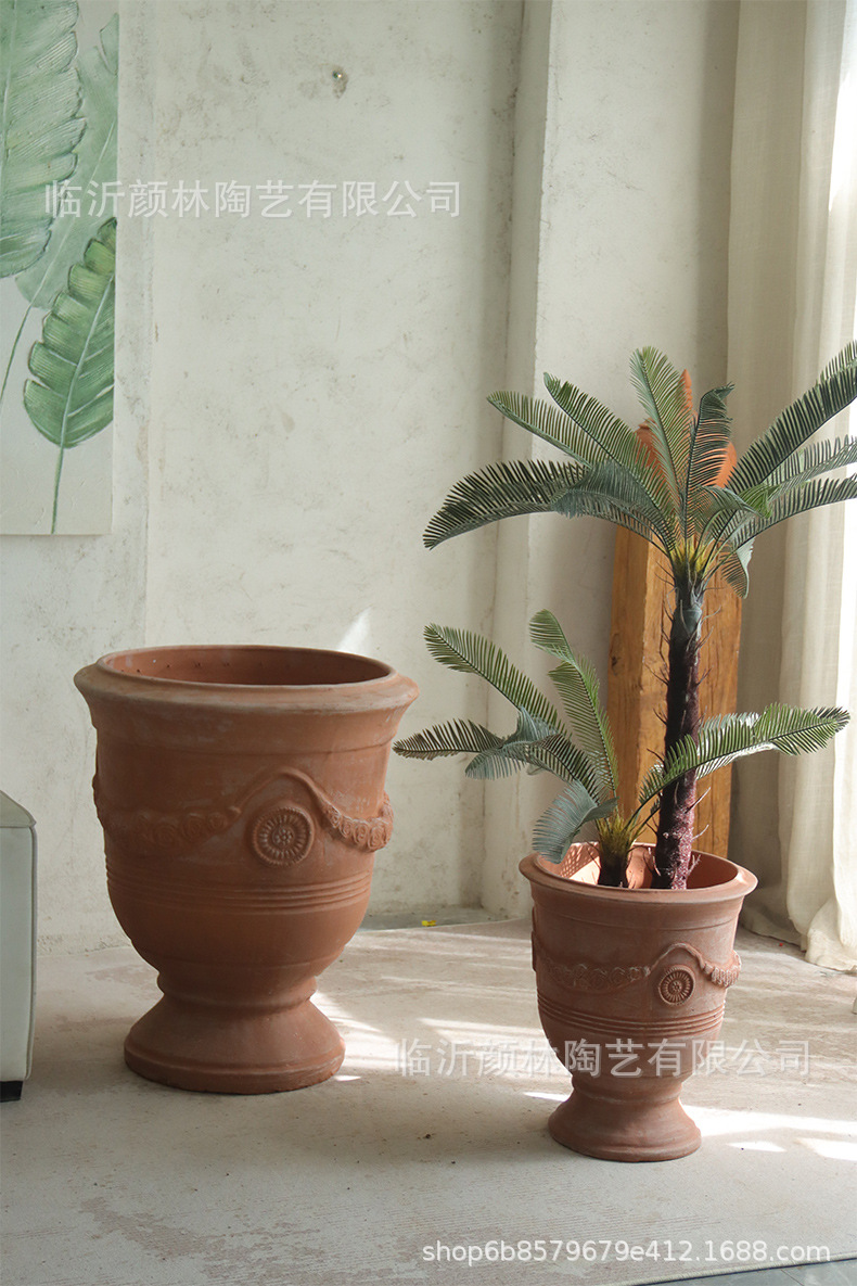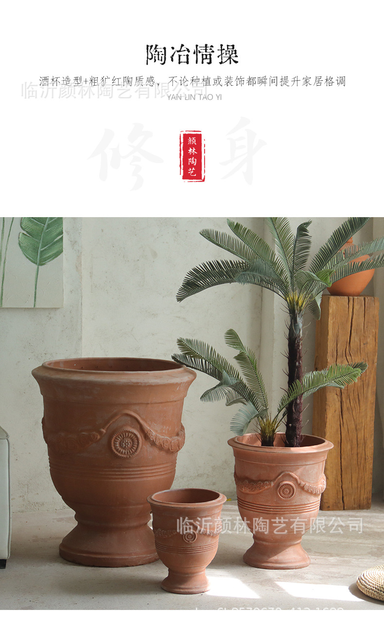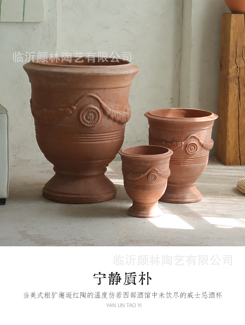 Taza de cerámica roja maceta de cerámica gruesa comercio exterior de cerámica roja europea paisaje pastoral maceta verde de gran calibre