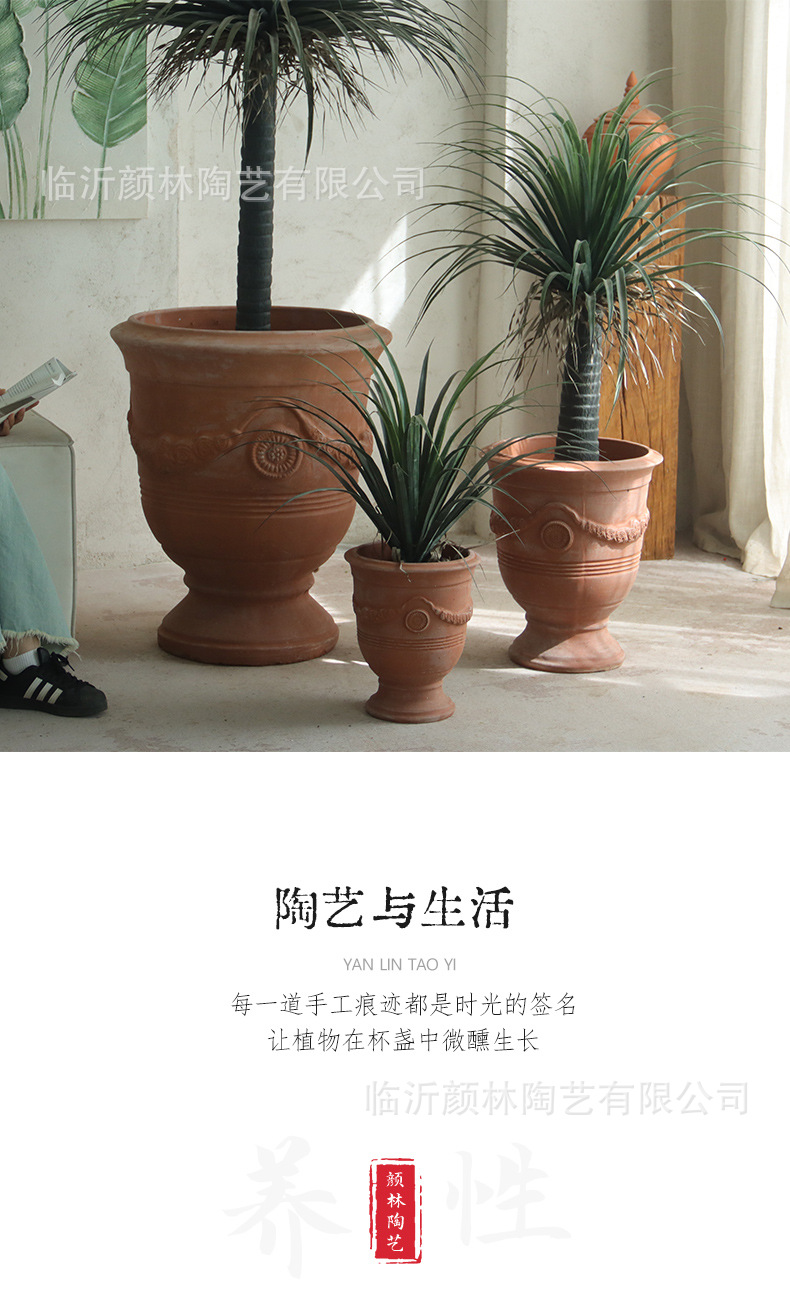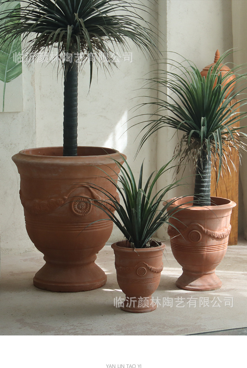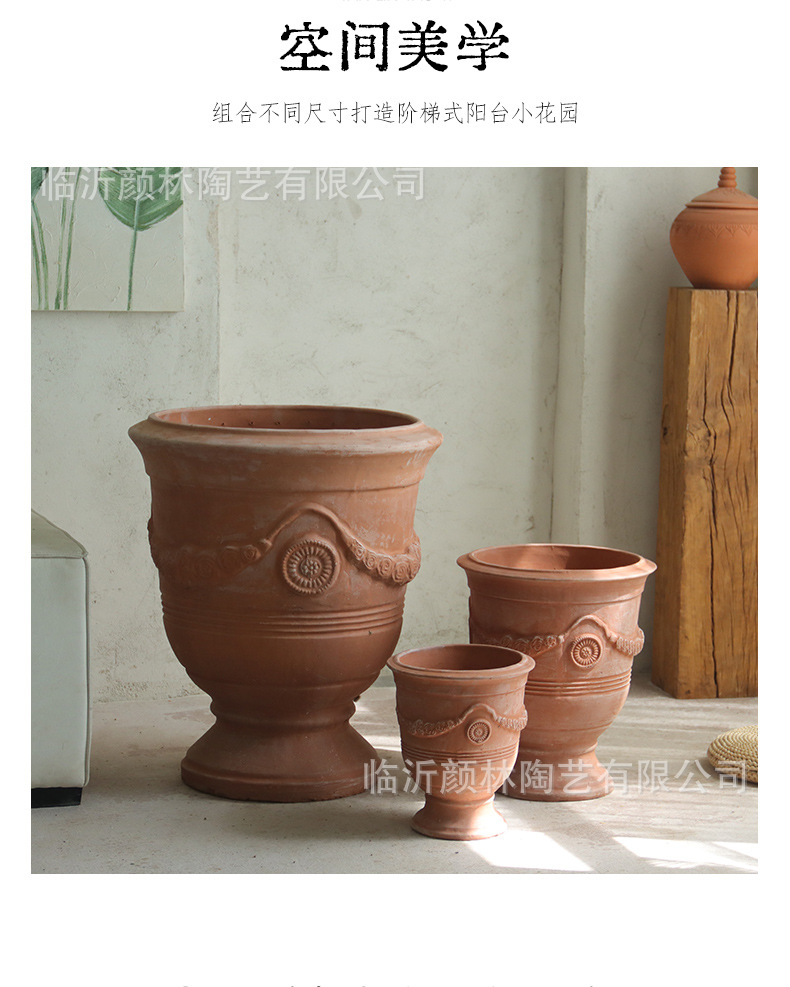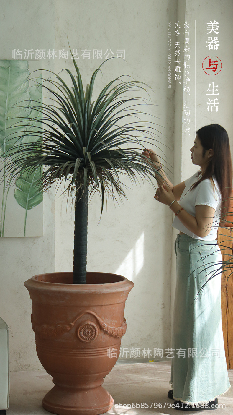 Taza de cerámica roja maceta de cerámica gruesa comercio exterior de cerámica roja europea paisaje pastoral maceta verde de gran calibre