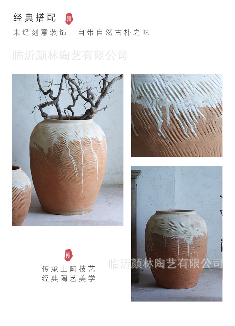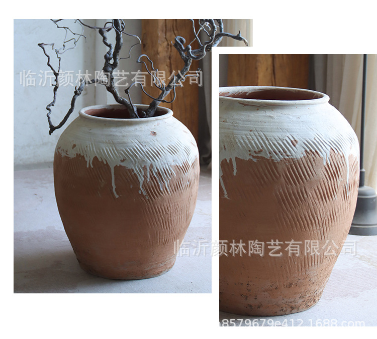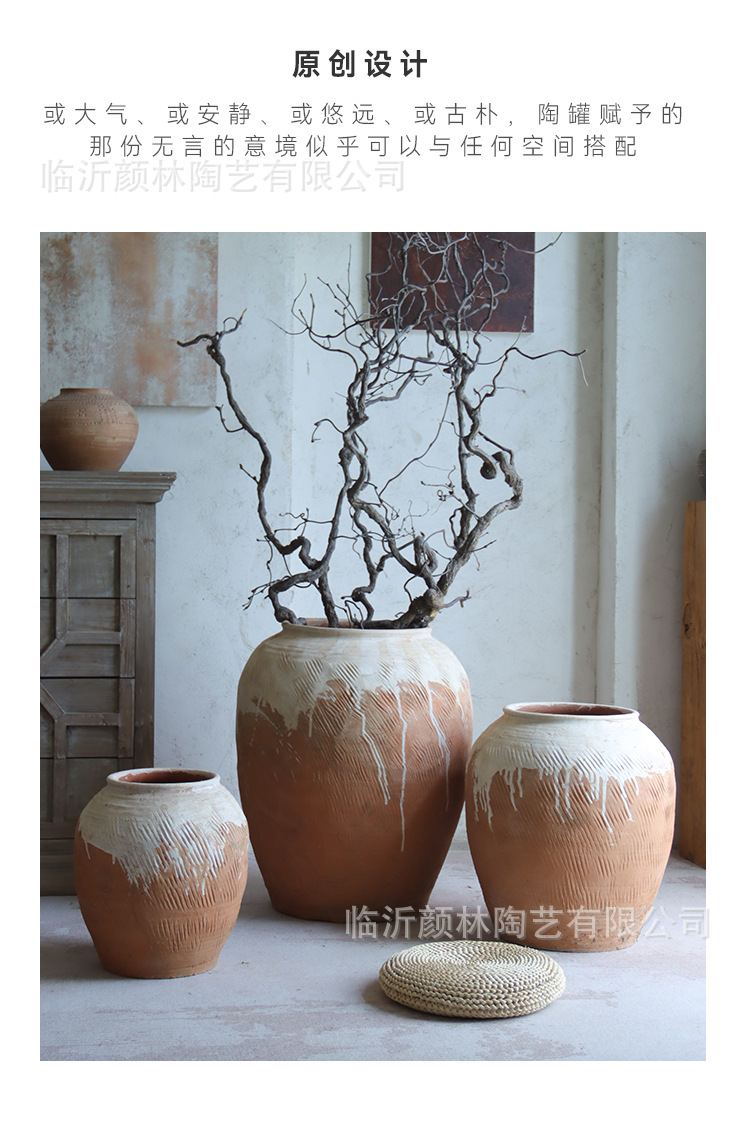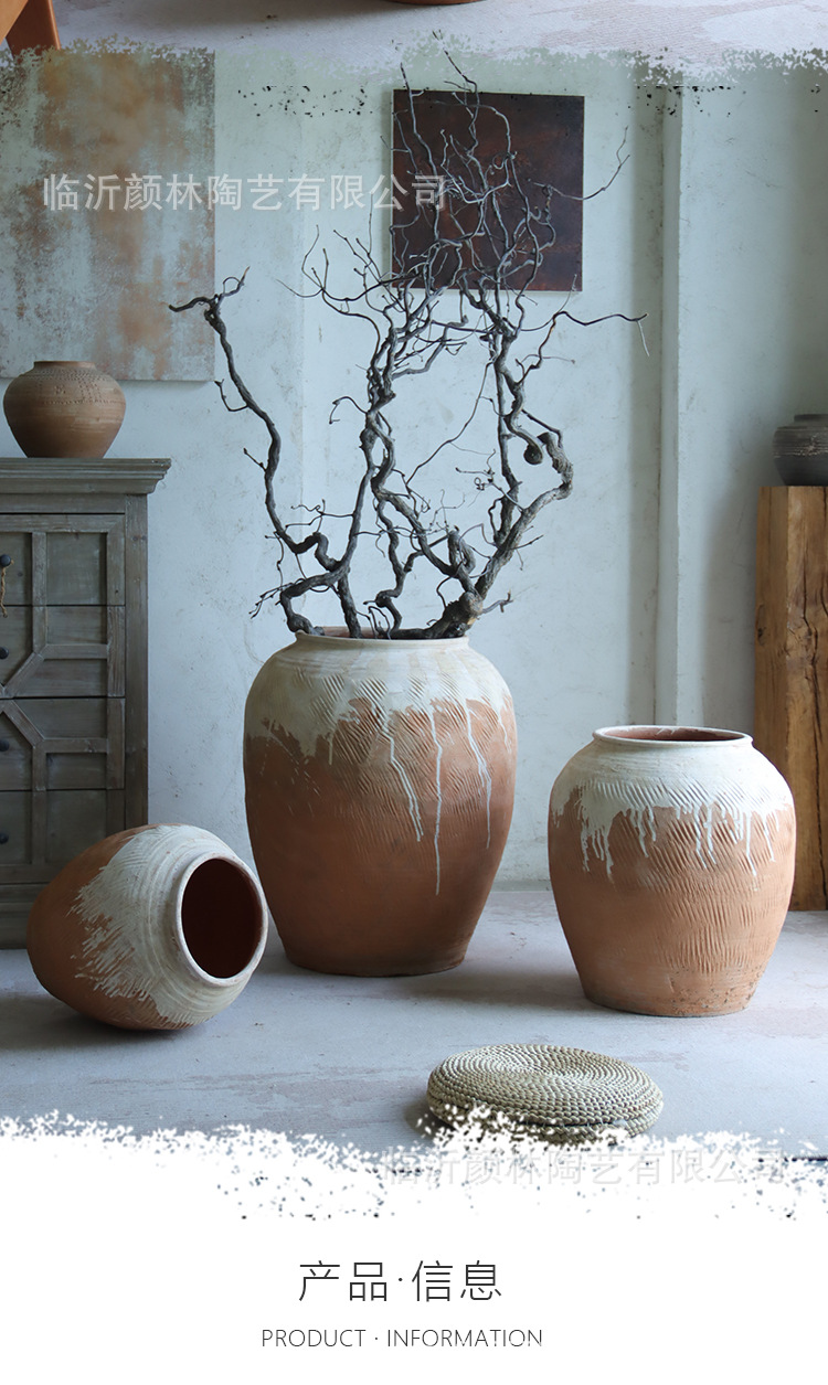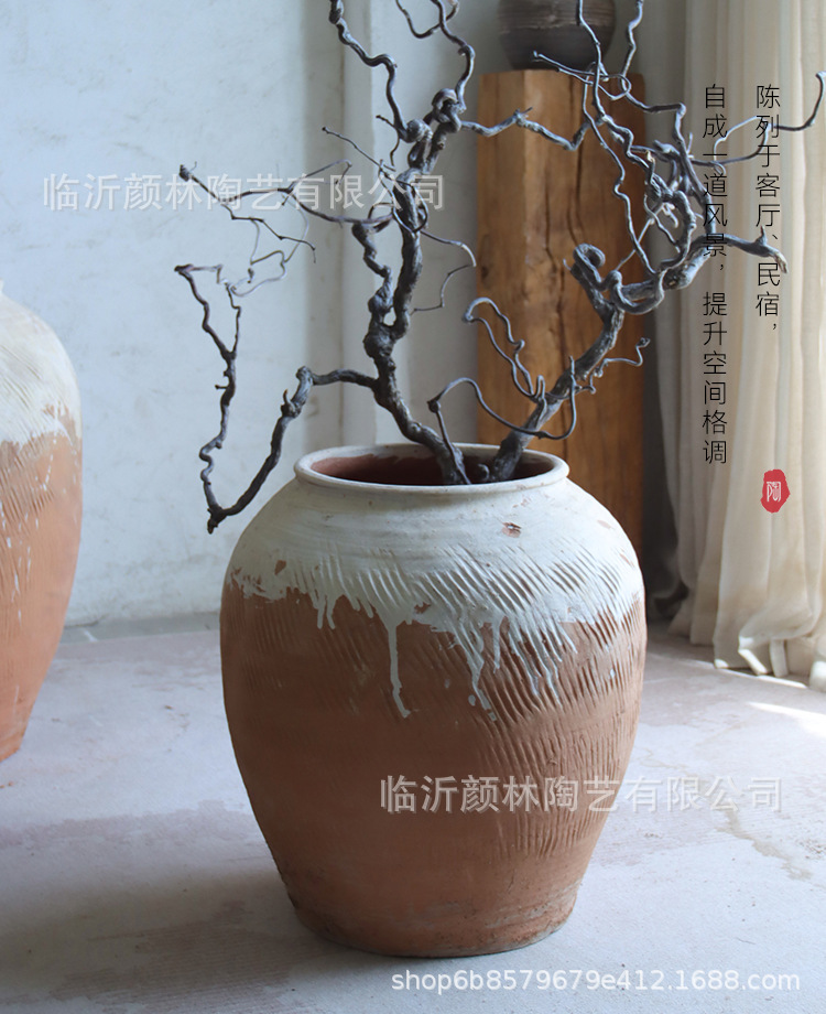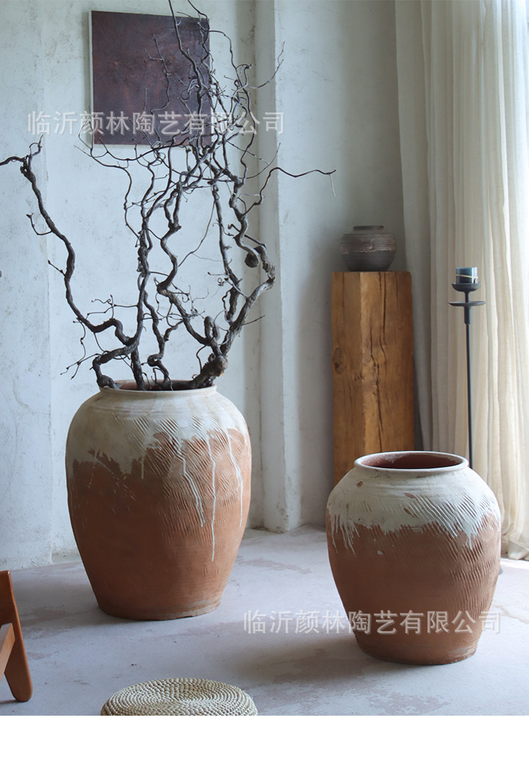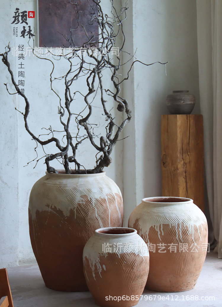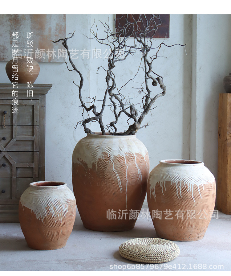 Botella de cerámica gruesa de tierra gran vaso de estómago de cerámica silenciosa decoración paisajística de alojamiento residencial botella de cerámica china decoración Zen retro