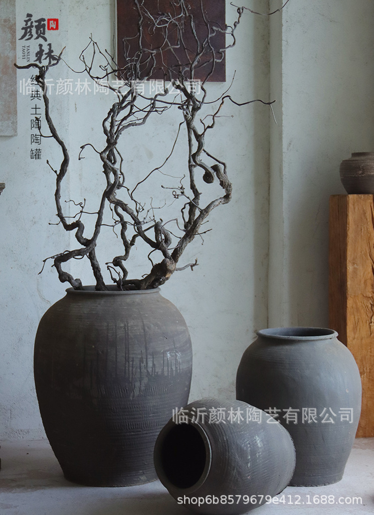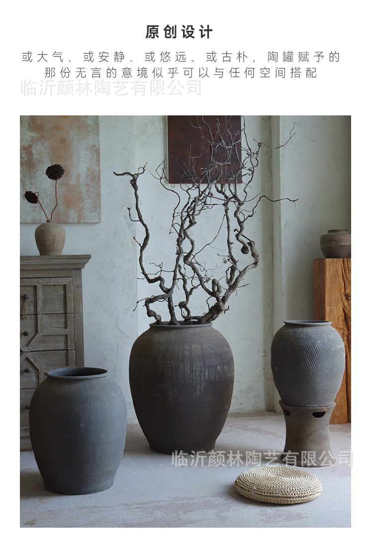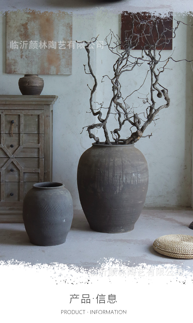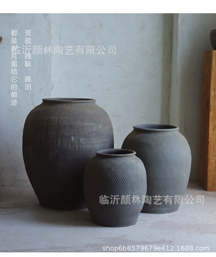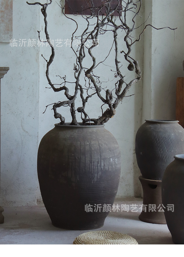 Retro gris negro de cerámica gran decoración paisajística de viento tranquilo de cerámica de cerámica gruesa de cerámica de suelo de cerámica redonda gran jarrón de flores