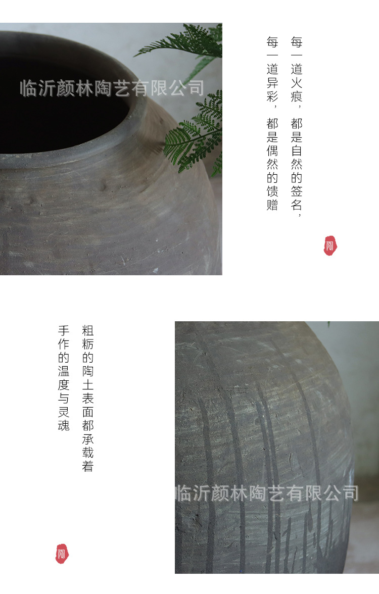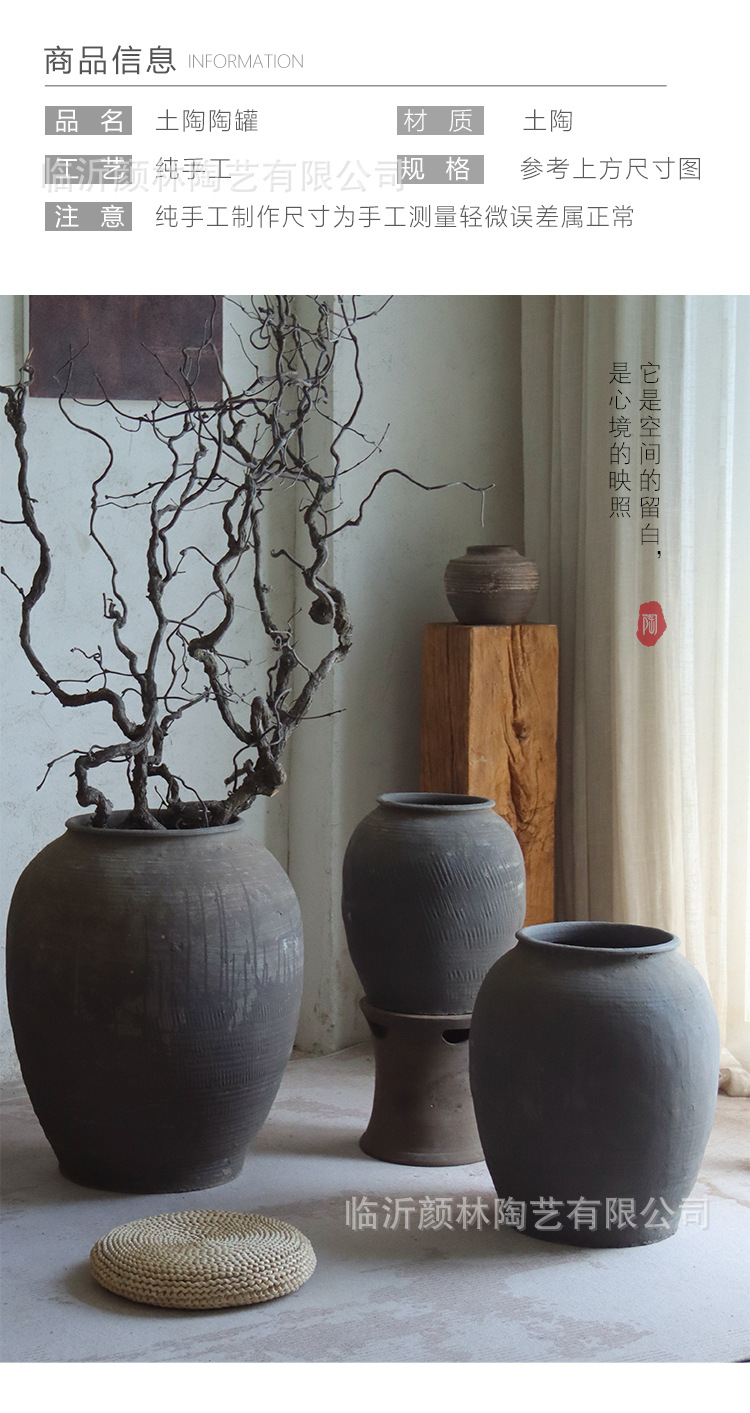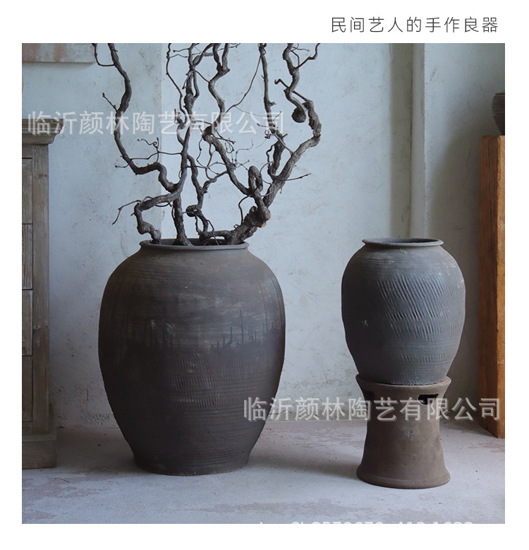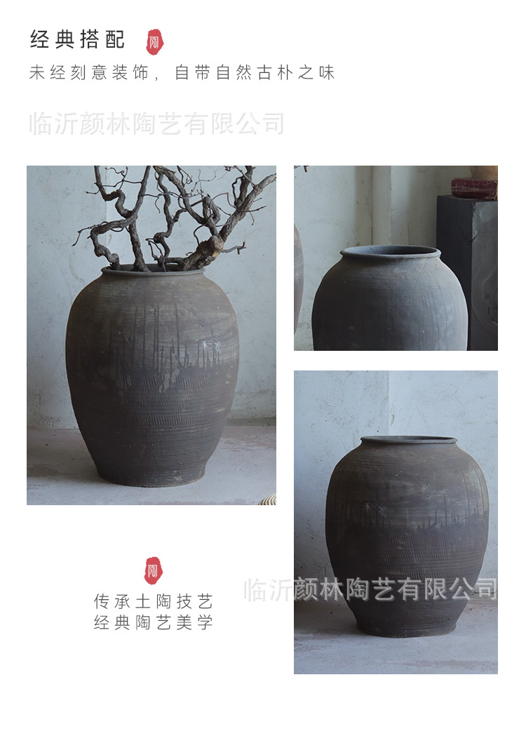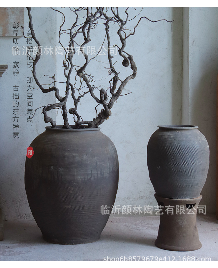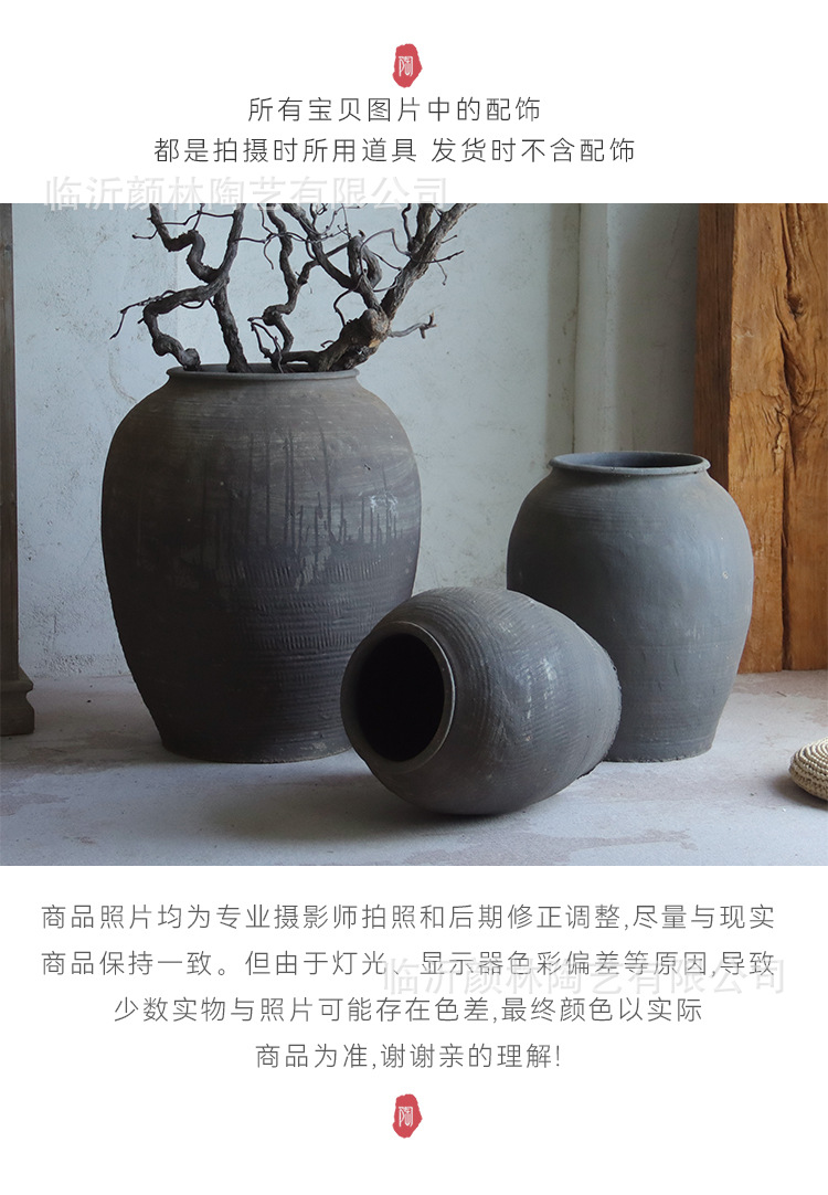Retro gris negro de cerámica gran decoración paisajística de viento tranquilo de cerámica de cerámica gruesa de cerámica de suelo de cerámica redonda gran jarrón de flores