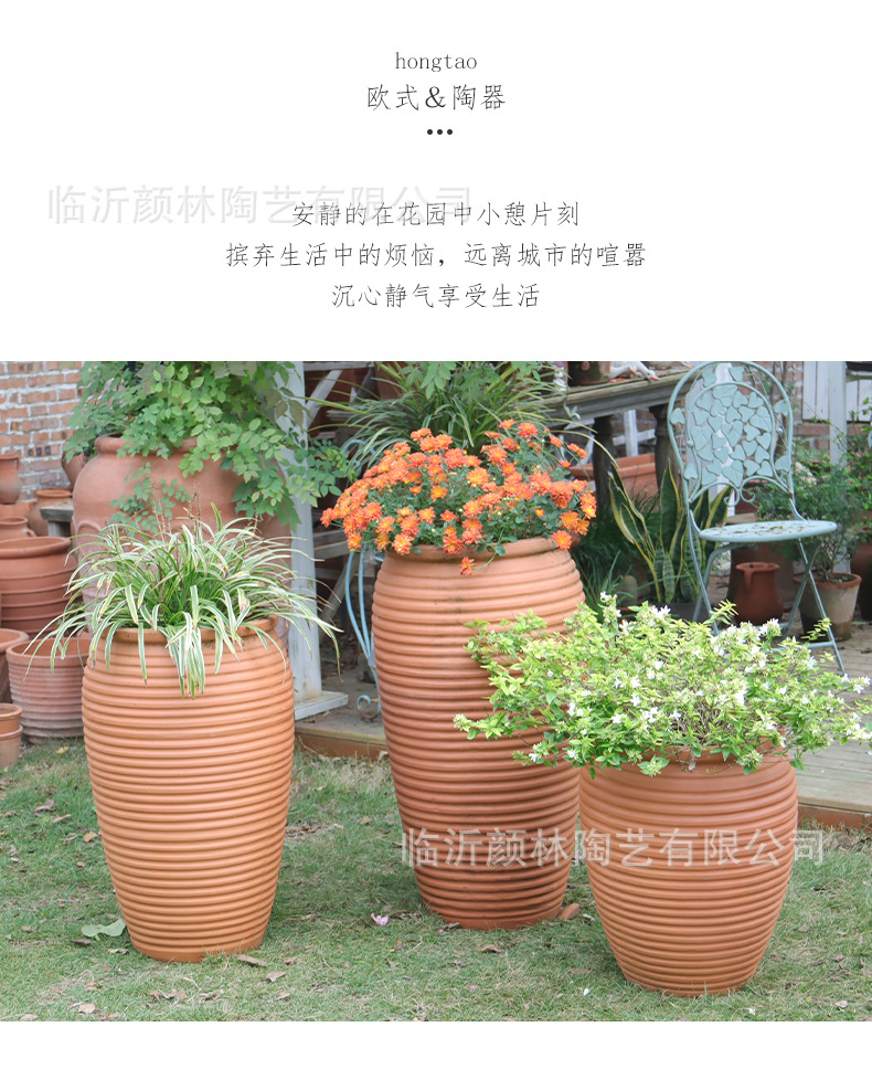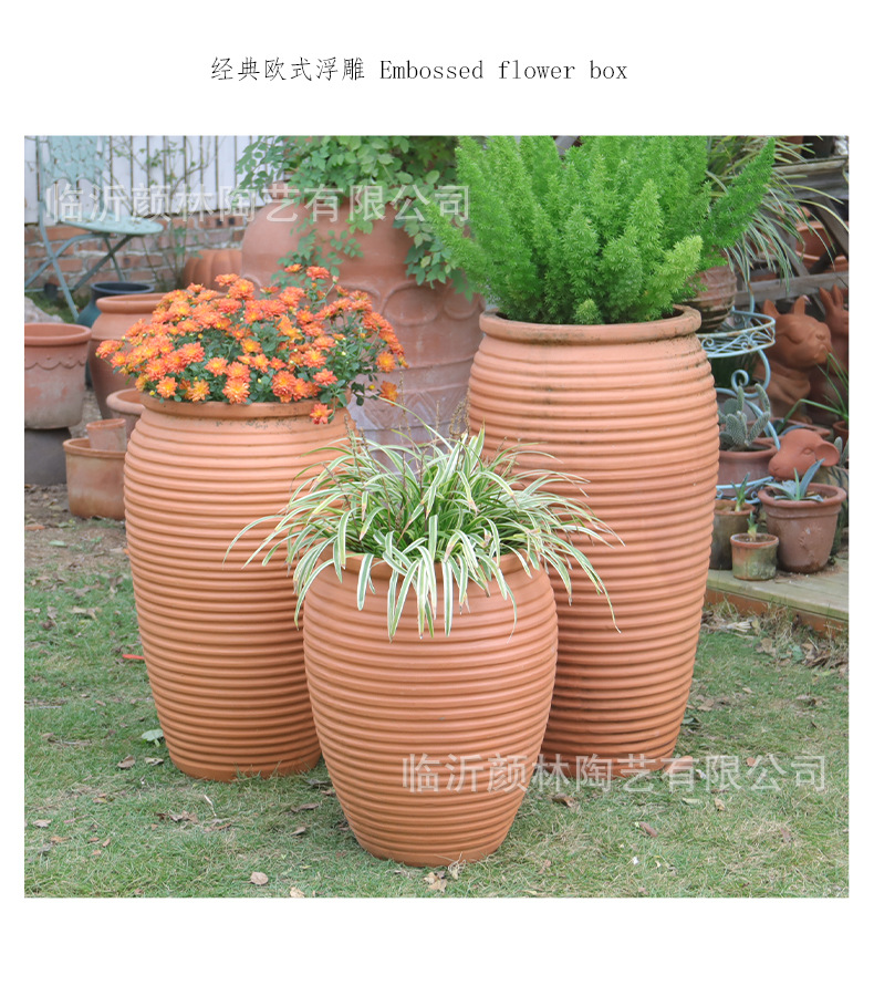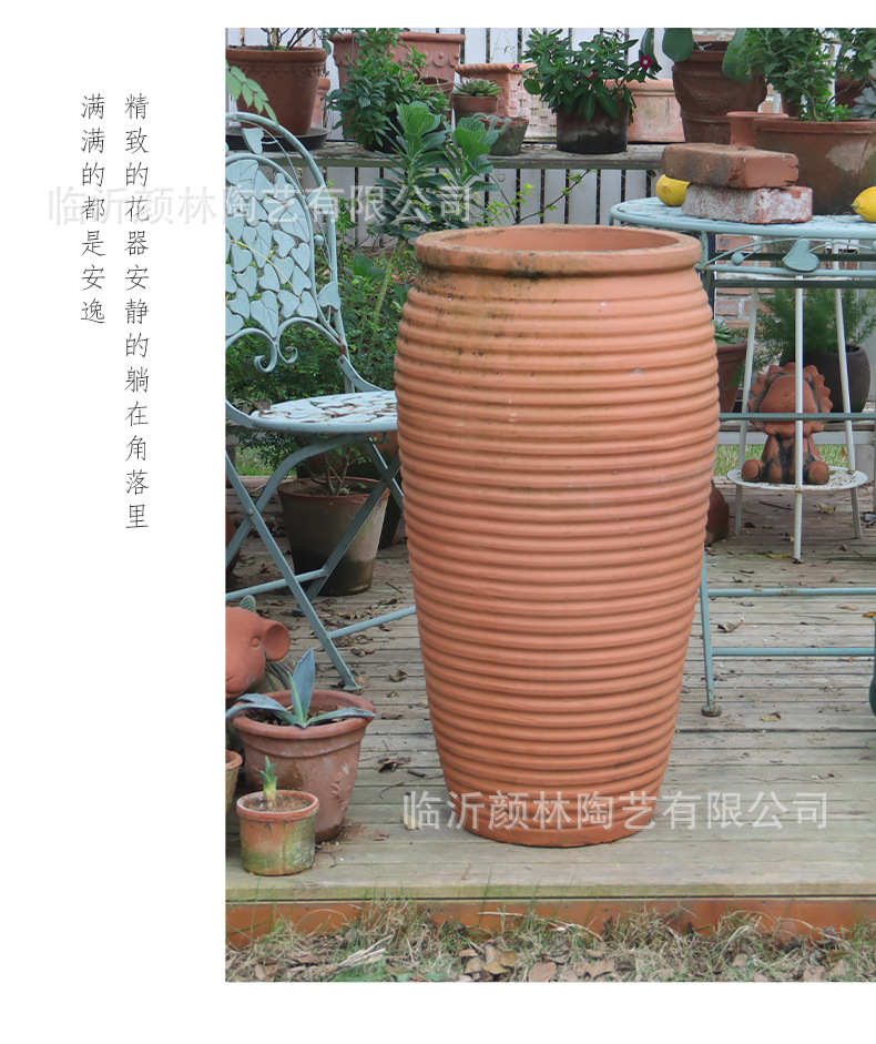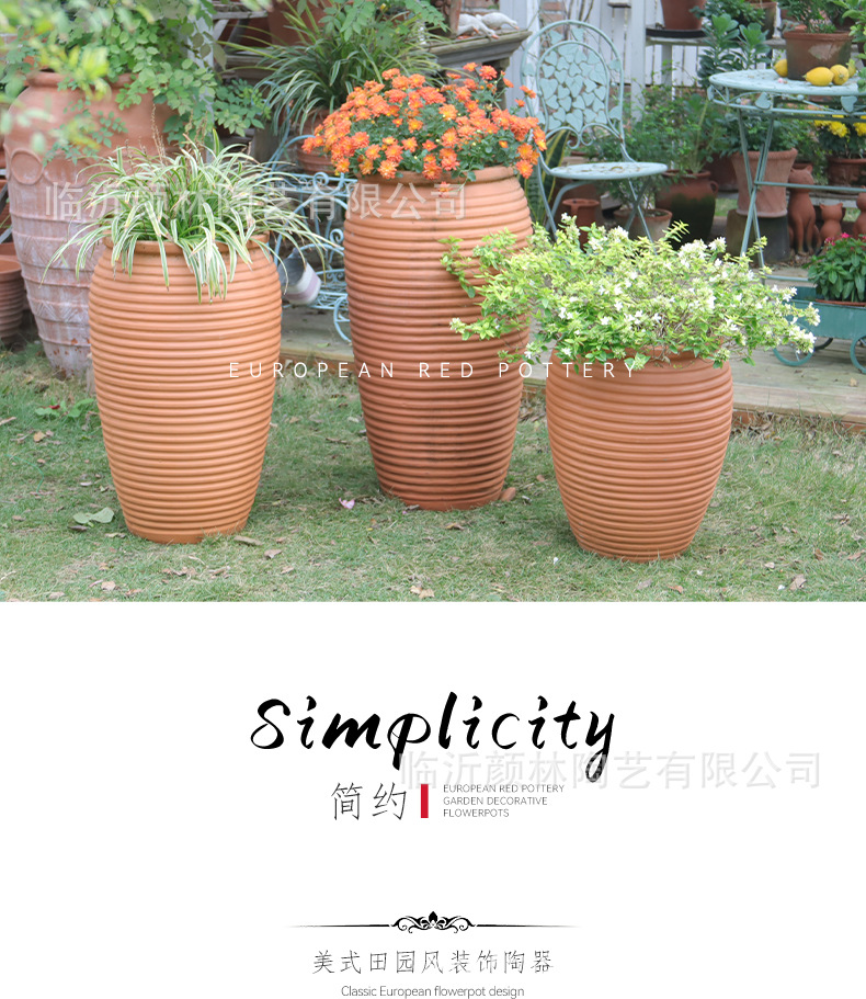 Terrizaje de alta combinación de cerámica de plantación de flores maceta de cerámica gruesa maceta de cerámica roja ventilada jardín paisaje villa decoración maceta