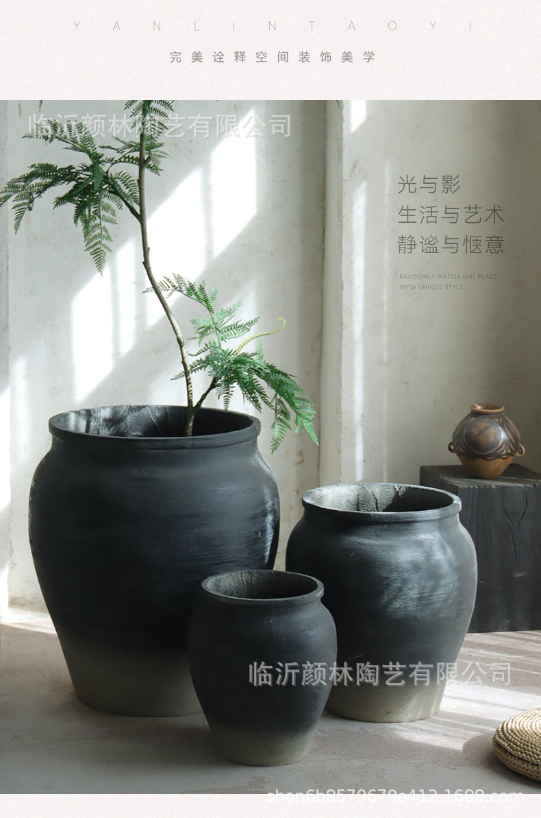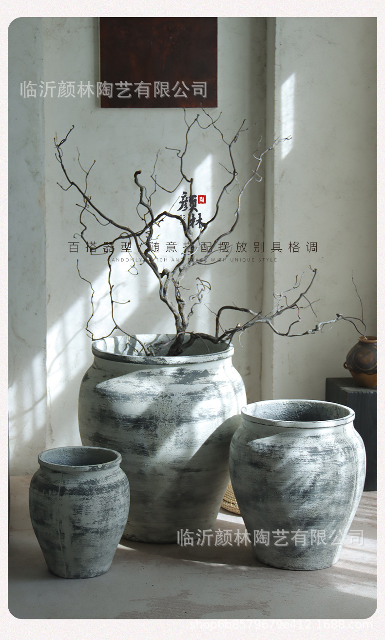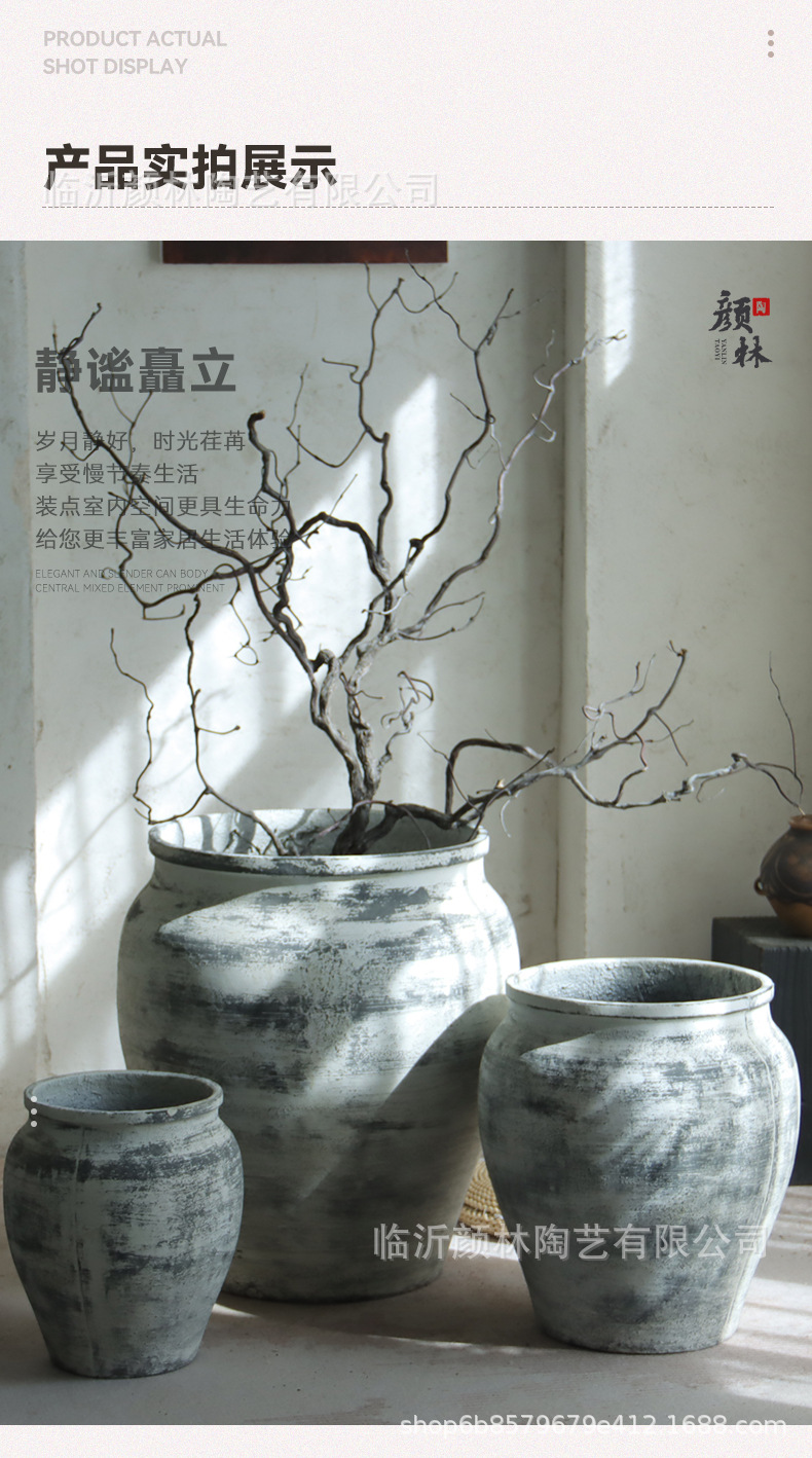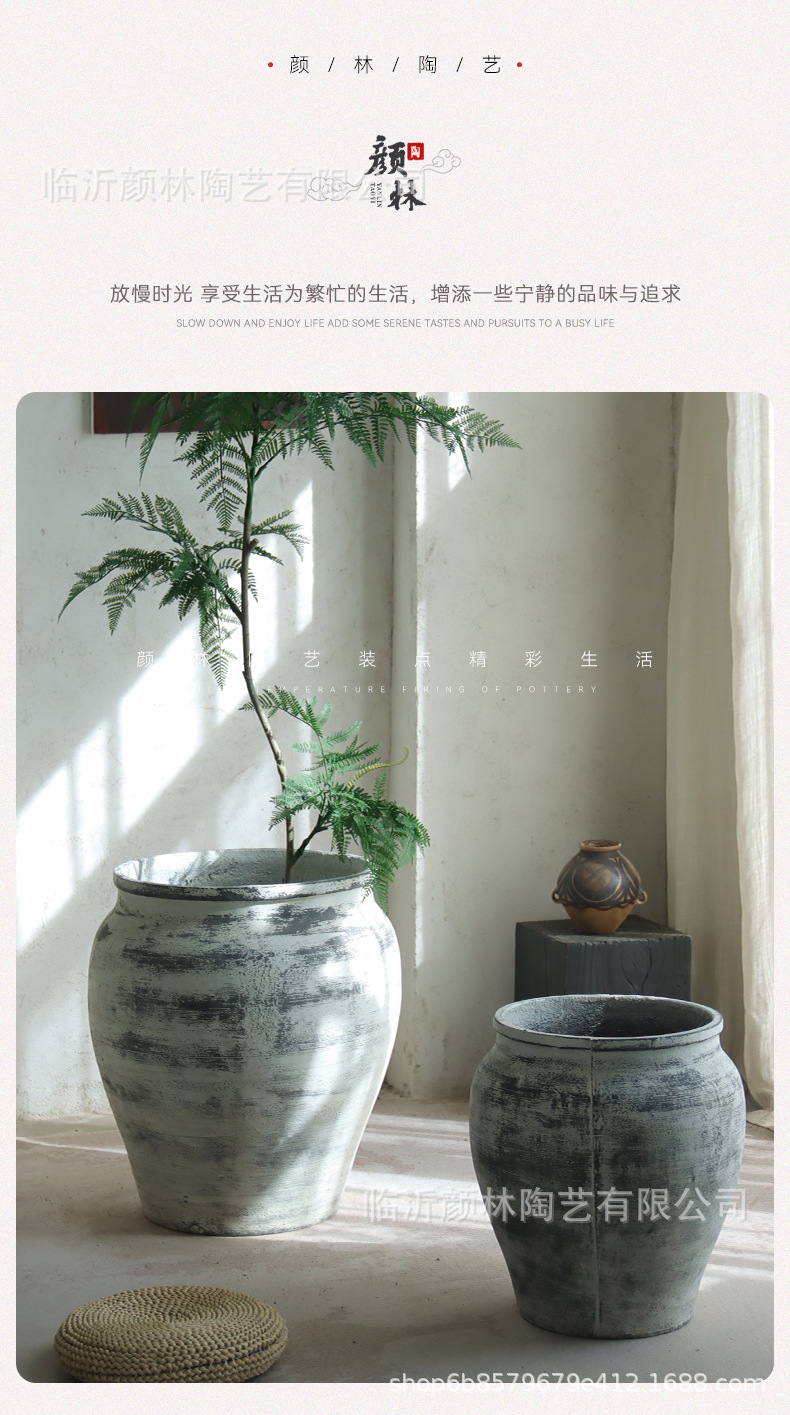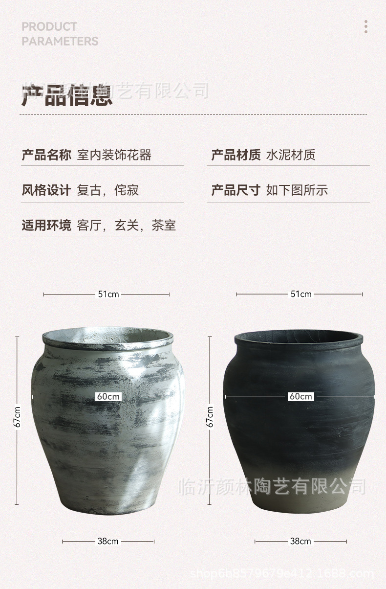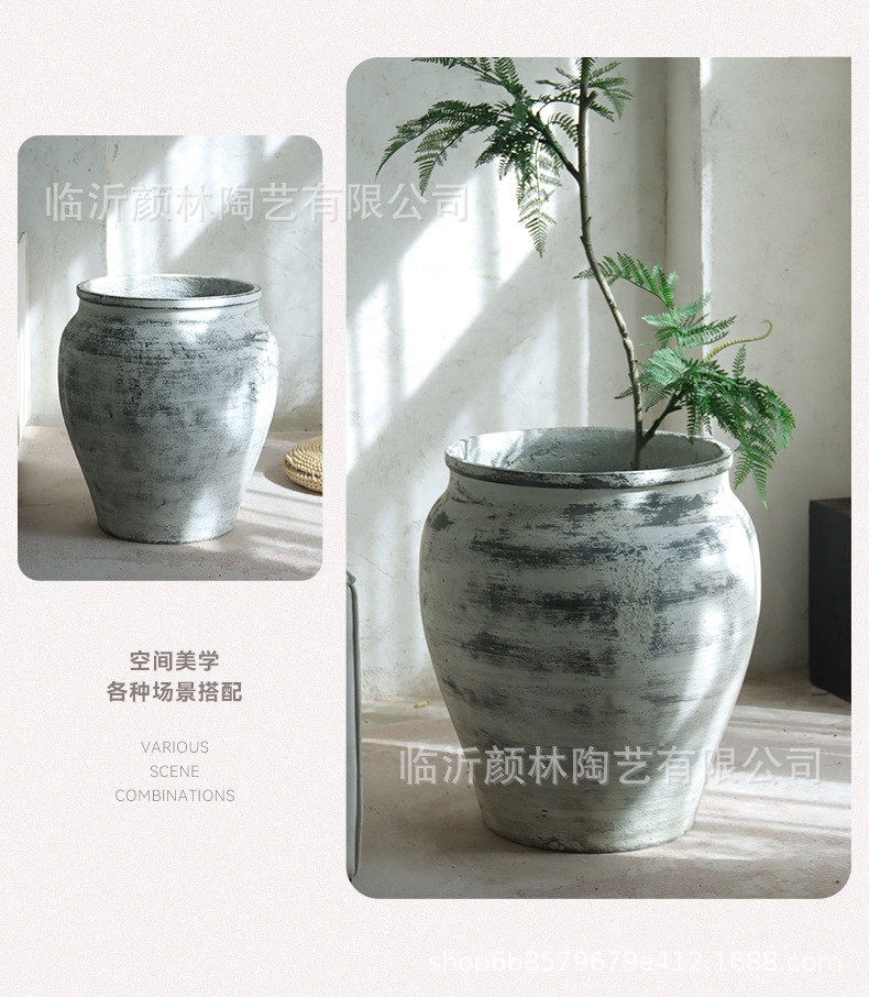 Flores de cemento retro alto estómago gran piso ventilado sala de estar hotel vestíbulo verde decoración maceta fuerte y duradera