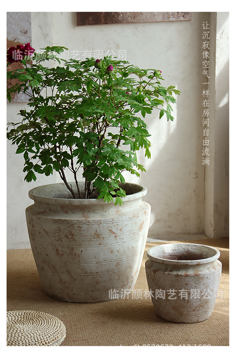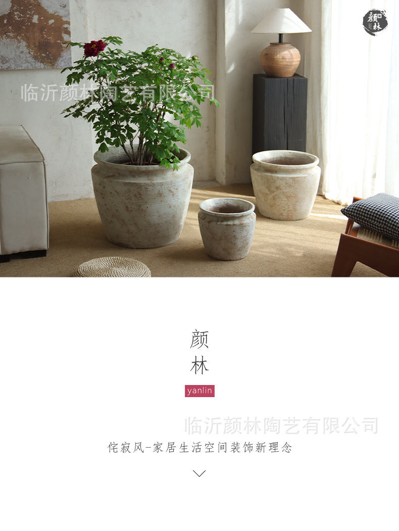 Retro jardín balcón plantación de árboles gran maceta de cemento de gran calibre maceta de flores centro comercial hotel decoración verde a gran escala