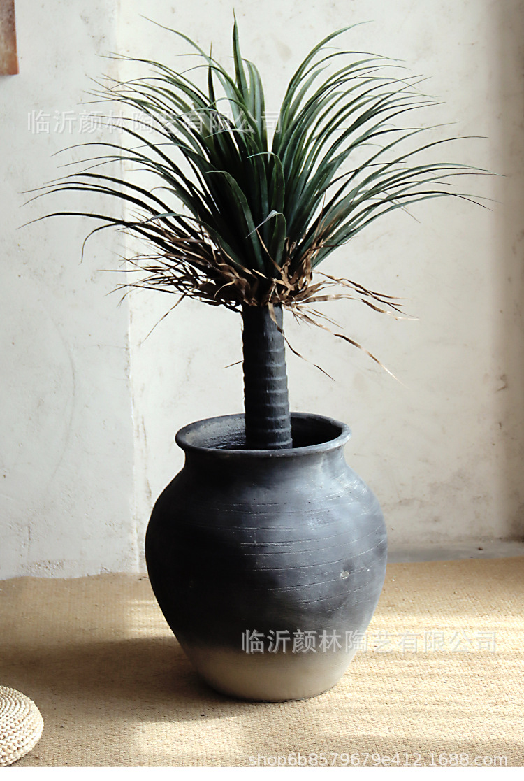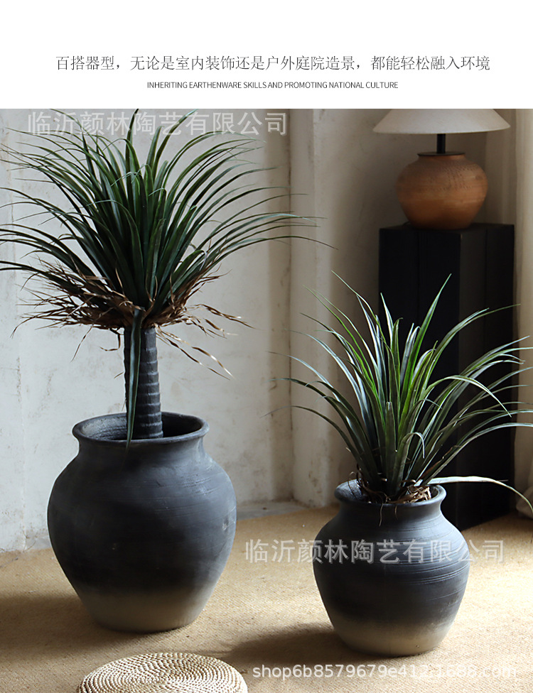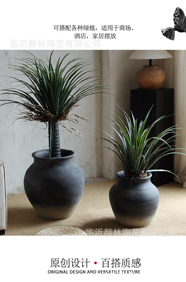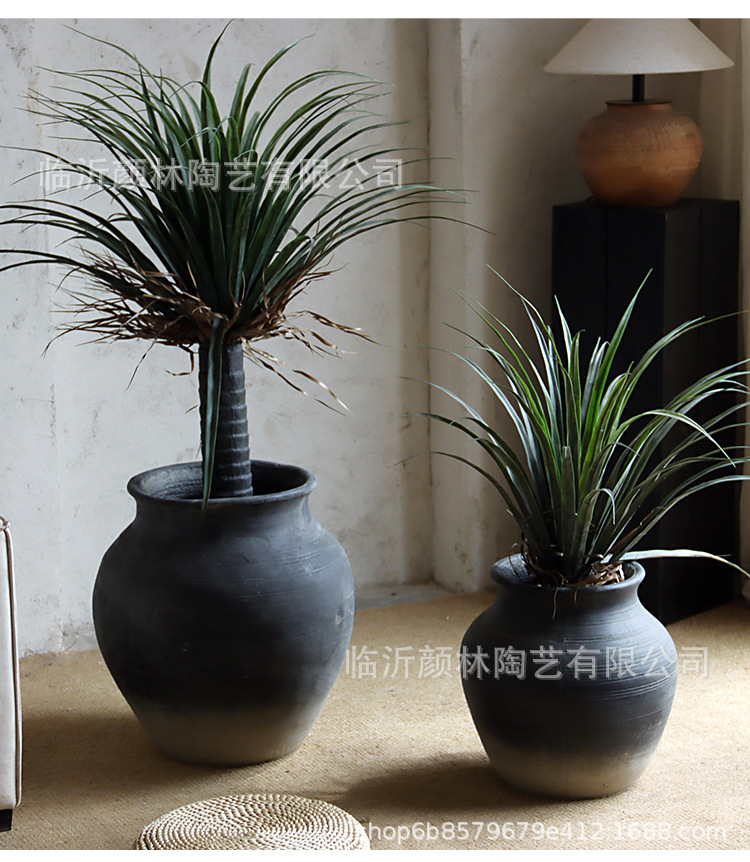 Cementos de tierra gris negro gran vientre redondo plantación interior verde hacer viejas macetas de diseño de decoración del espacio del hotel