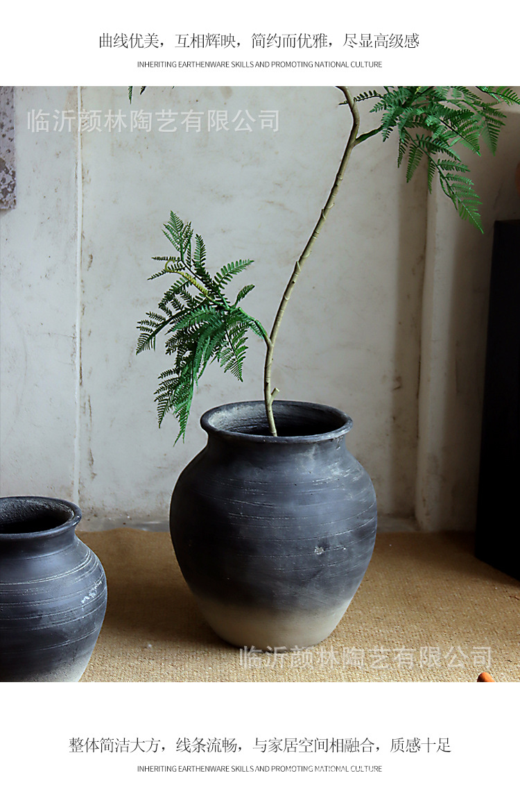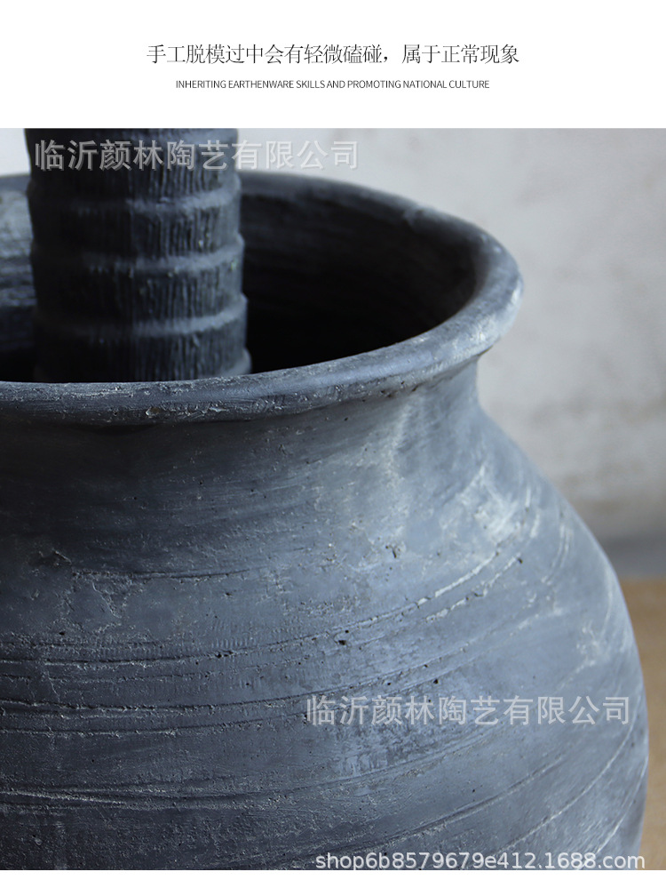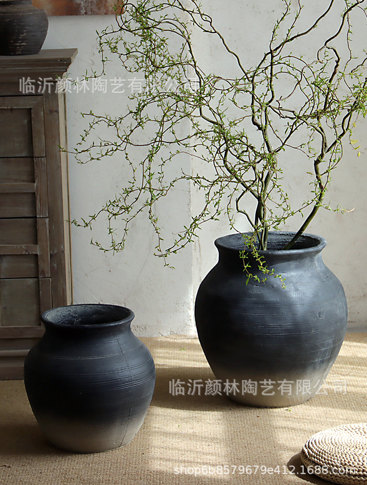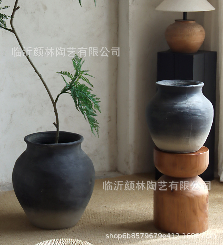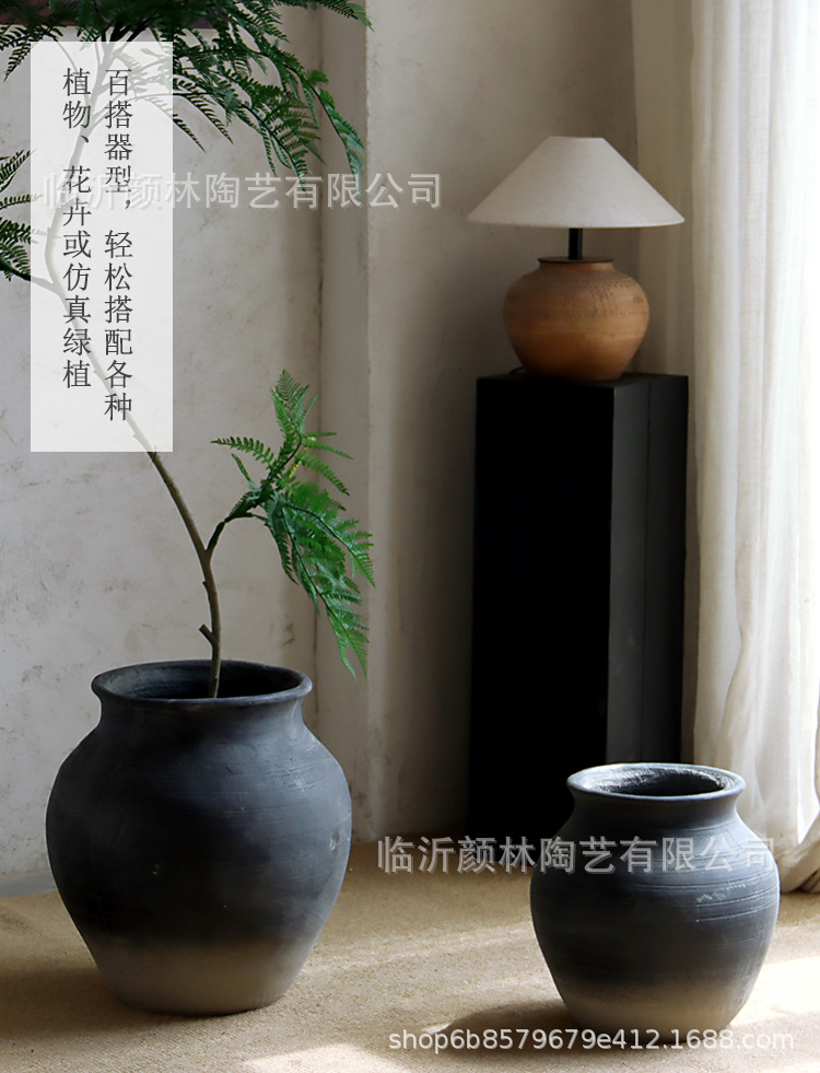 Cementos de tierra gris negro gran vientre redondo plantación interior verde hacer viejas macetas de diseño de decoración del espacio del hotel