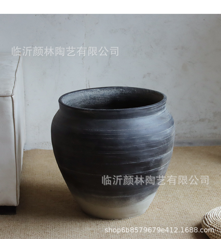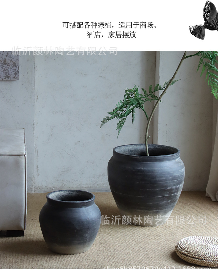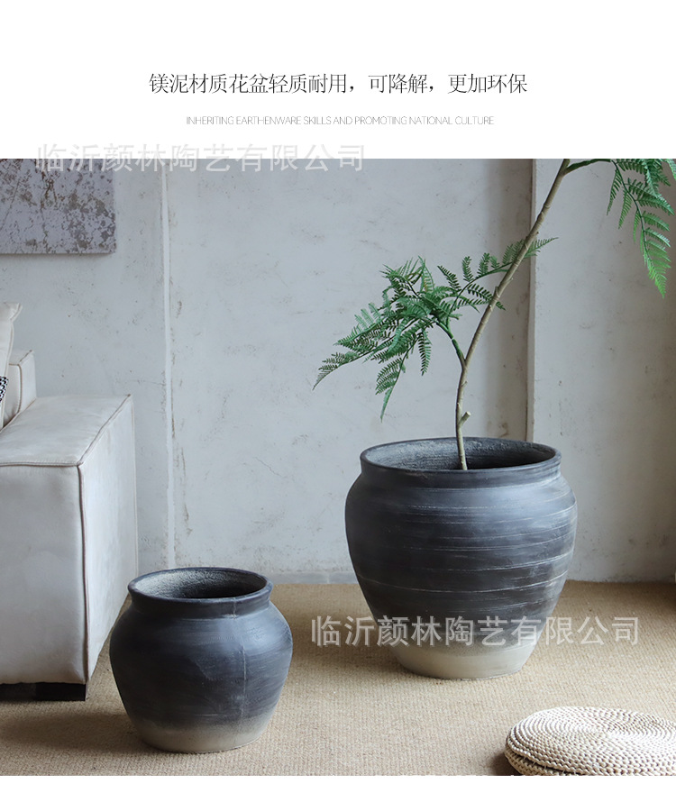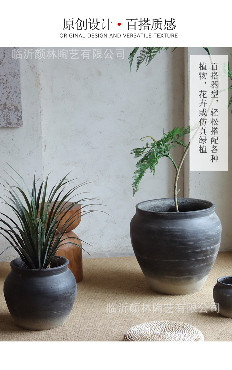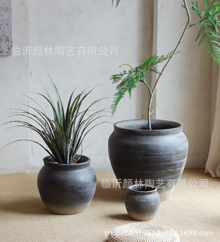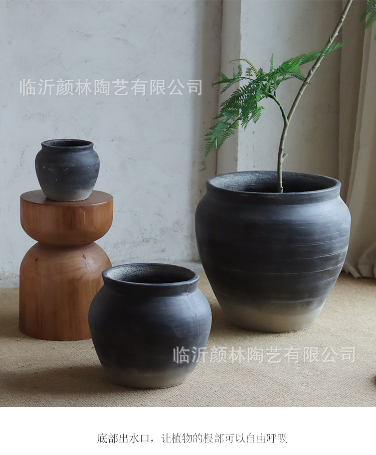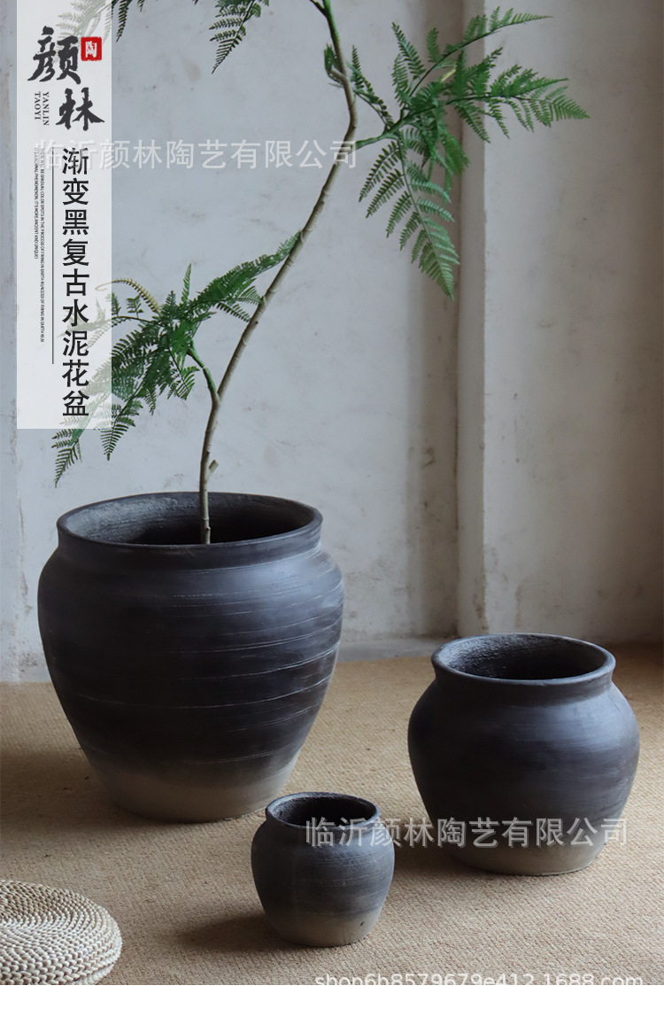 Gradiente maceta de cemento negro gran estómago retrógrado maceta de tequila azul sala de estar interior maceta de plantación simple