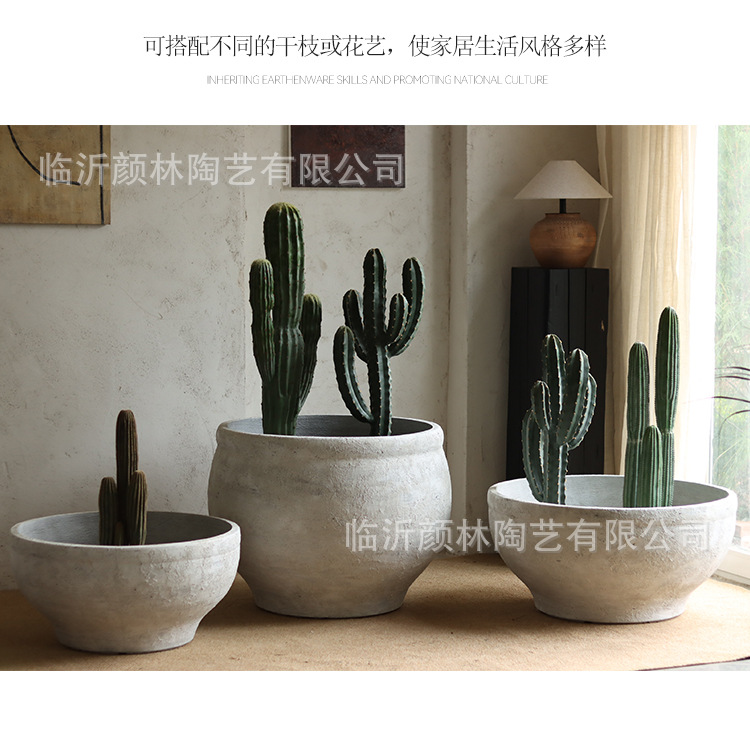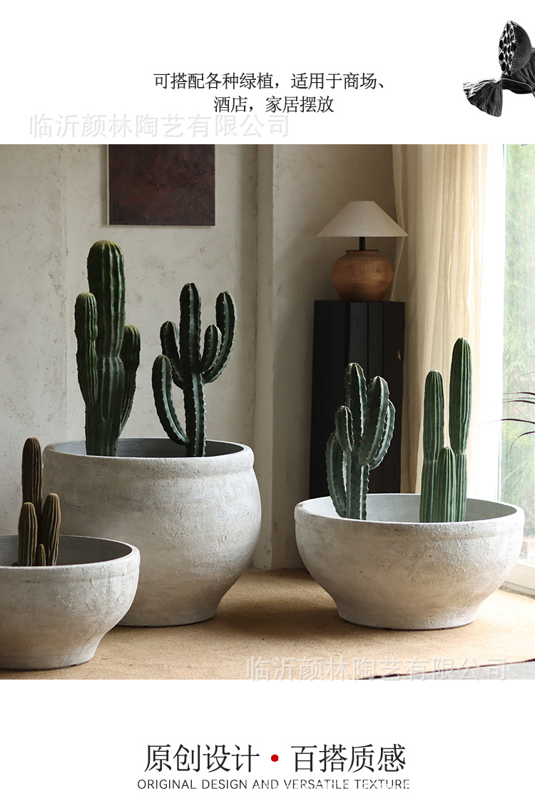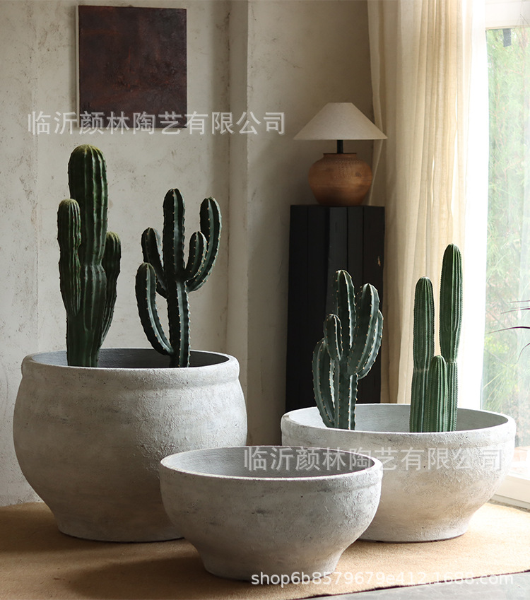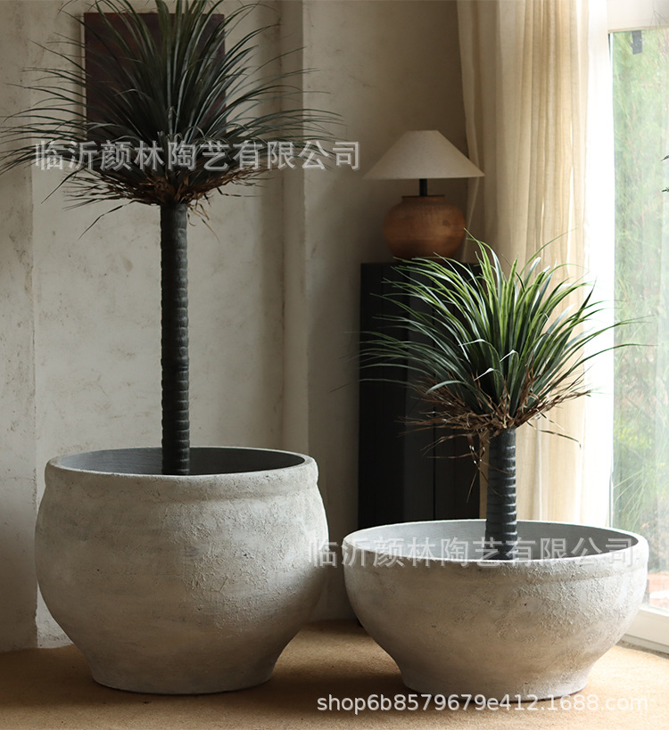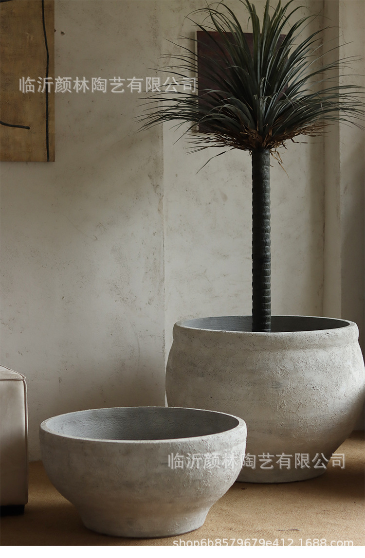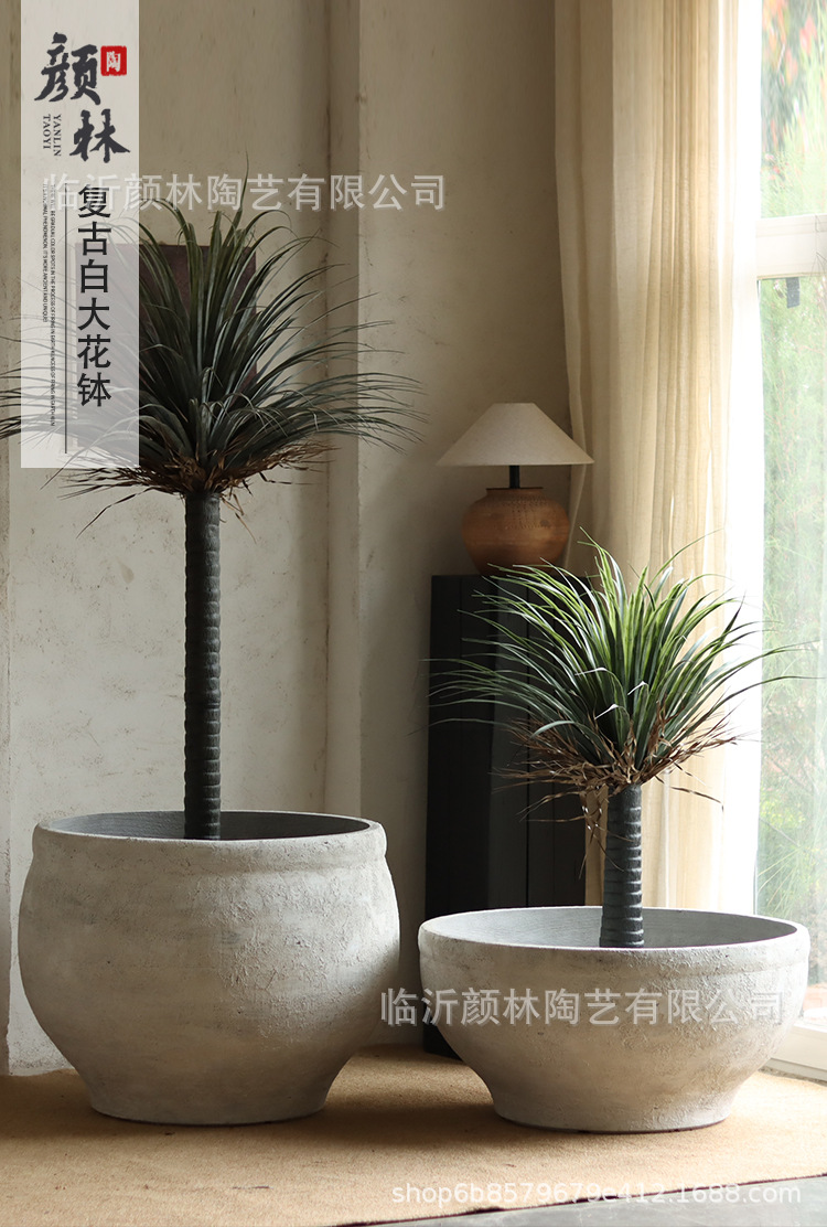 Retro cemento blanco gran maceta de flores nórdica simple gran maceta de flores hotel villa paisaje verde maceta de magnesio maceta de barro