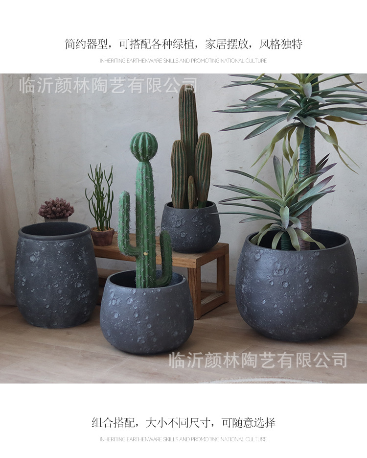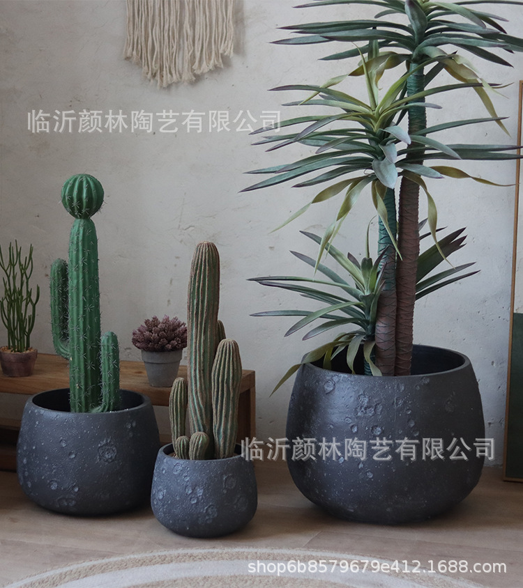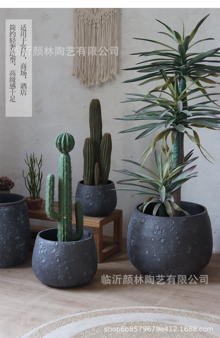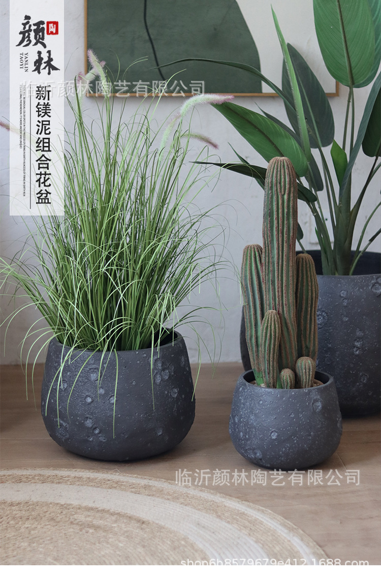 Nórdico negro gris magnesio maceta de barro para el hogar de la decoración de la sala de estar maceta verde al aire libre simple maceta de gran boca