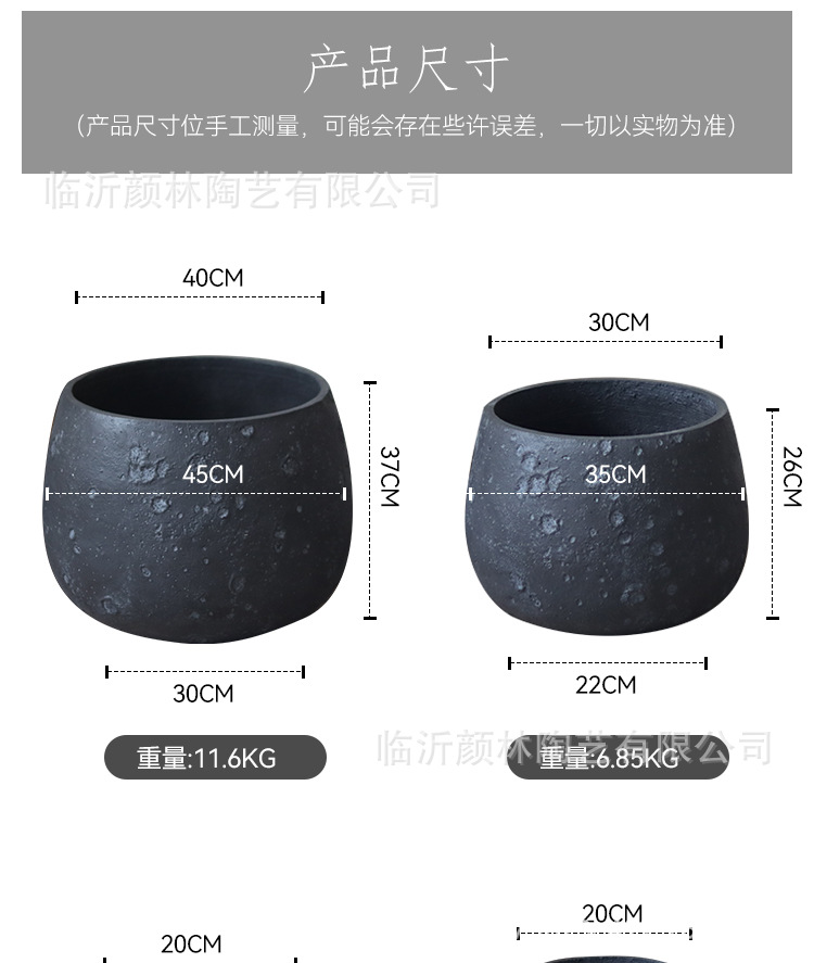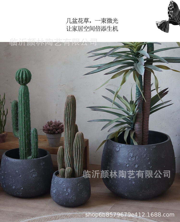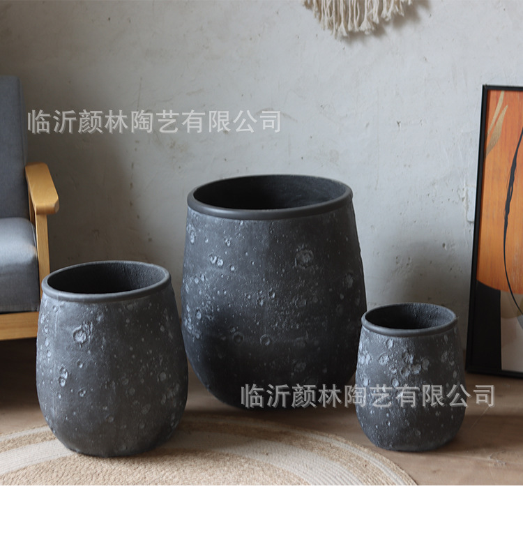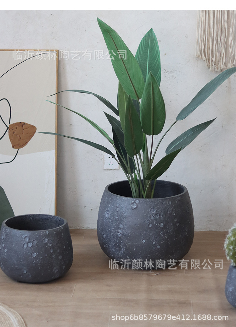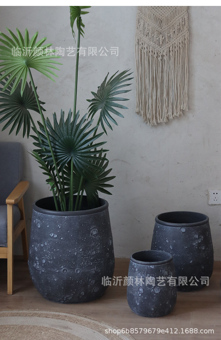 Nórdico negro gris magnesio maceta de barro para el hogar de la decoración de la sala de estar maceta verde al aire libre simple maceta de gran boca