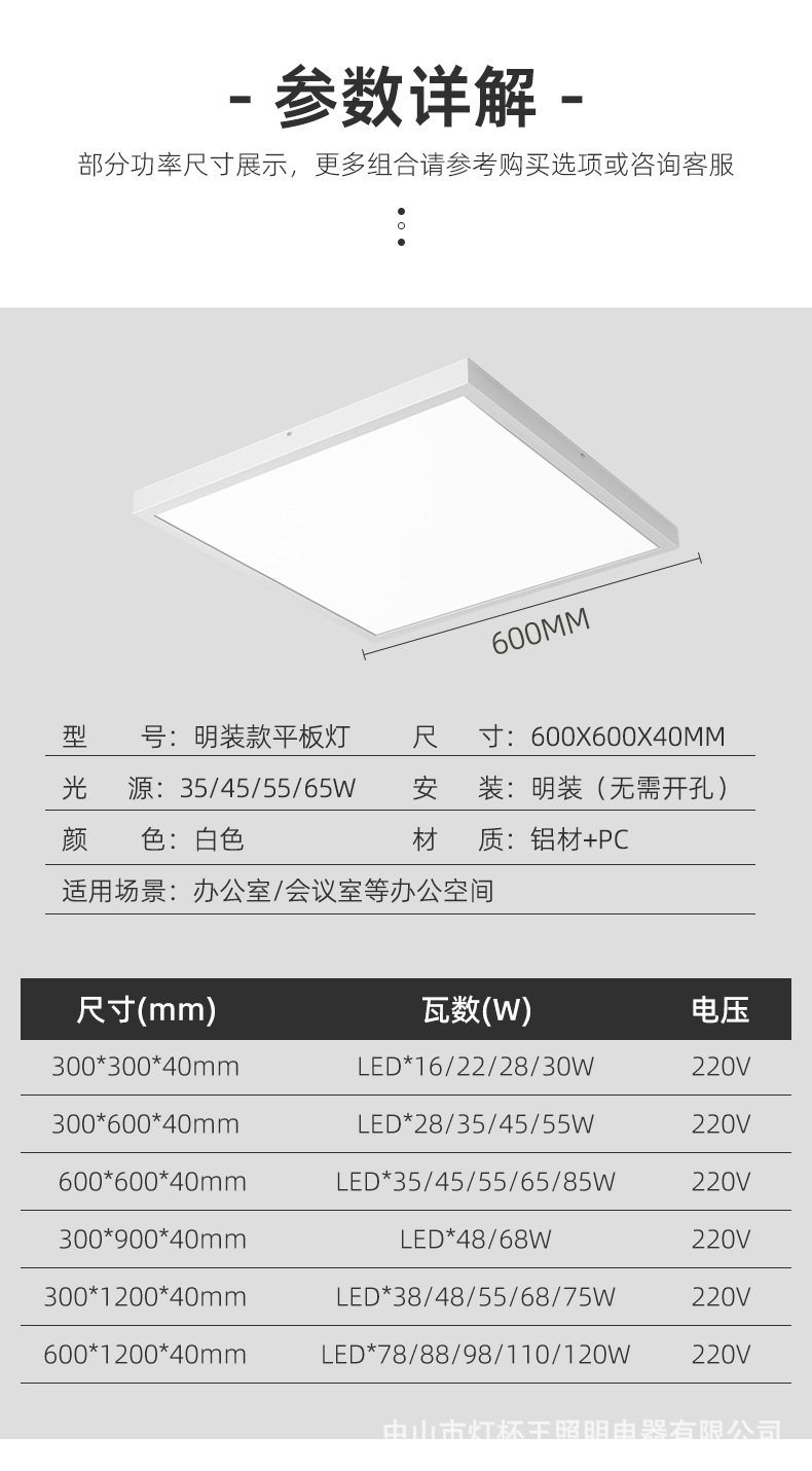 Marco negro 600 x600-surface montado ceiling-85W resaltar