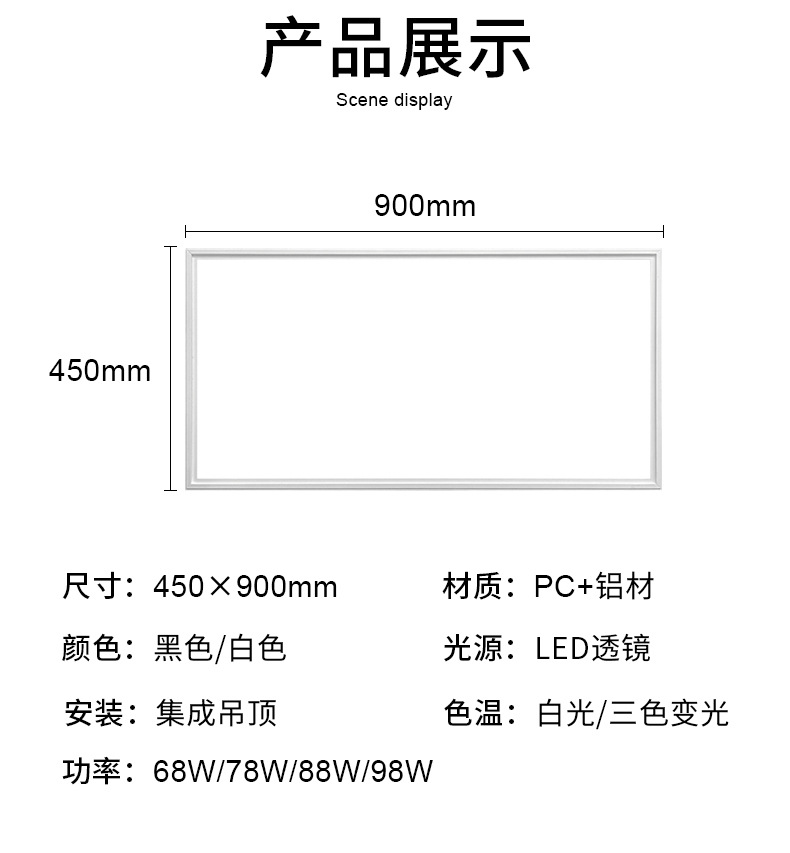 lámpara de techo integrada 450x900 lámpara de panel LED sala de estar estudio aluminio placa de fijación incrustada lámpara de panel grande LED 45x90