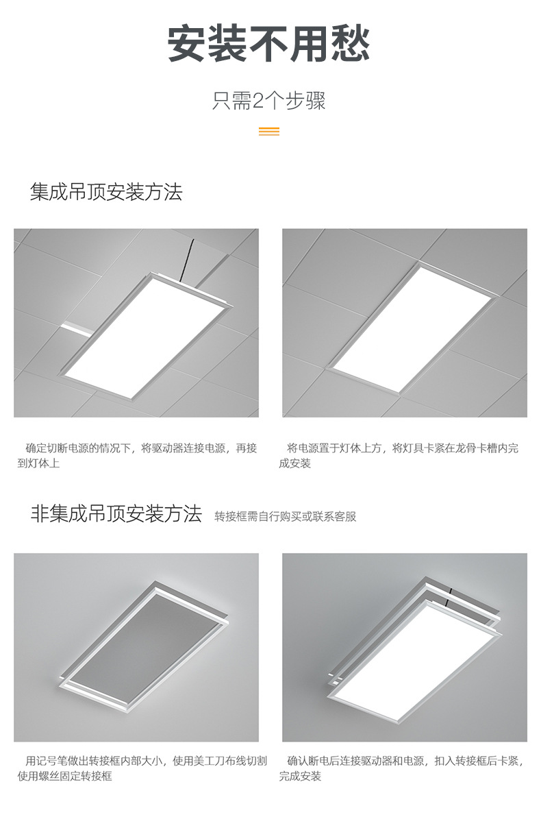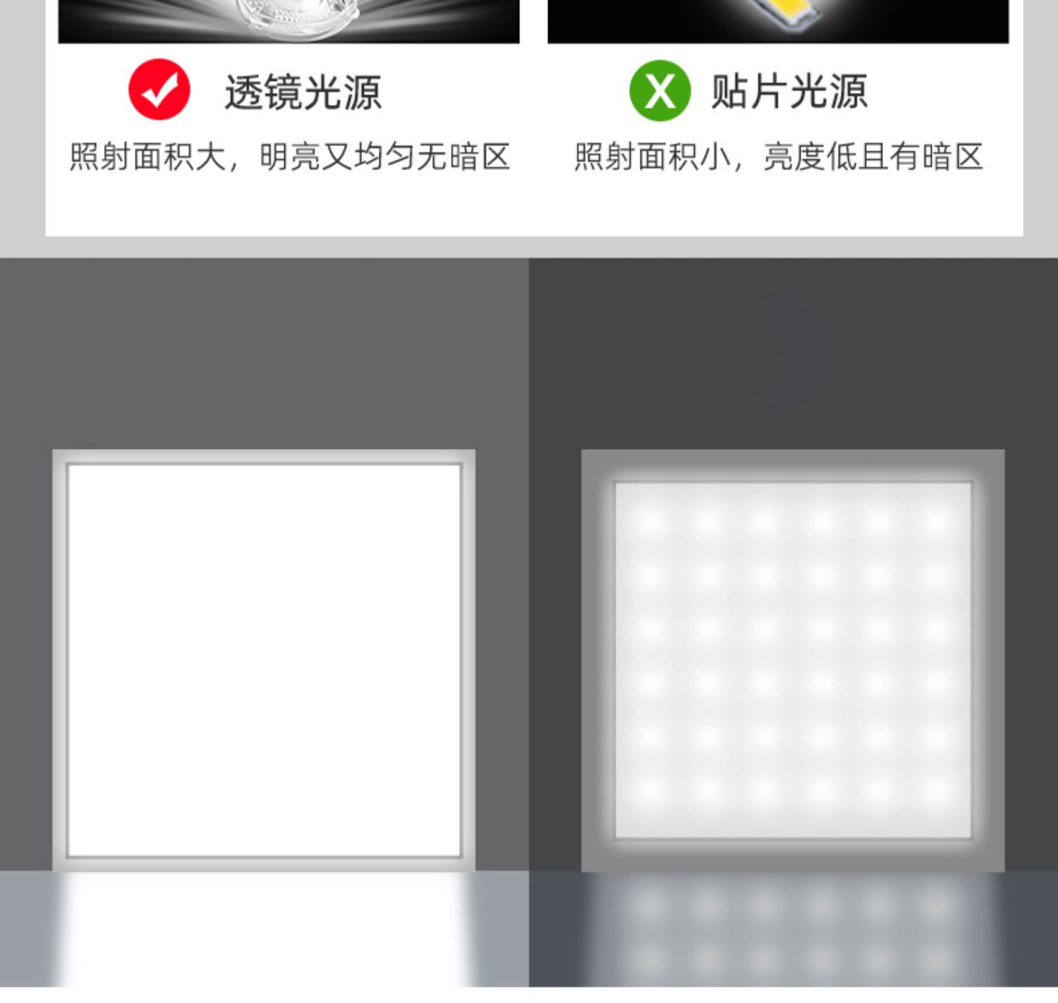 Panel de Luz LED para Techo de 400x400x800x800, Panel de Luz Integrado en Placa de Yeso y Lana Mineral, Luz de Ingeniería Ultradelgada