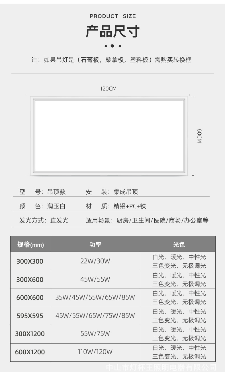 | Potencia | Marco blanco [600x600] con 65 vatios súper brillantes, marco blanco [600x600] con 85 vatios súper brillantes, marco blanco [595x595] con 65 vatios súper brillantes, marco blanco [595x595] con 85 vatios súper brillantes, marco blanco [300x1200] con 55 vatios súper brillantes, marco blanco [300x1200] con 75 vatios súper brillantes, marco blanco [600x1200] con 110 vatios súper brillantes, marco blanco [600x1200] con 120 vatios súper brillantes, Marco blanco [300x900] con 58 vatios súper brillantes, marco blanco [300x900] con 68 vatios súper brillantes |