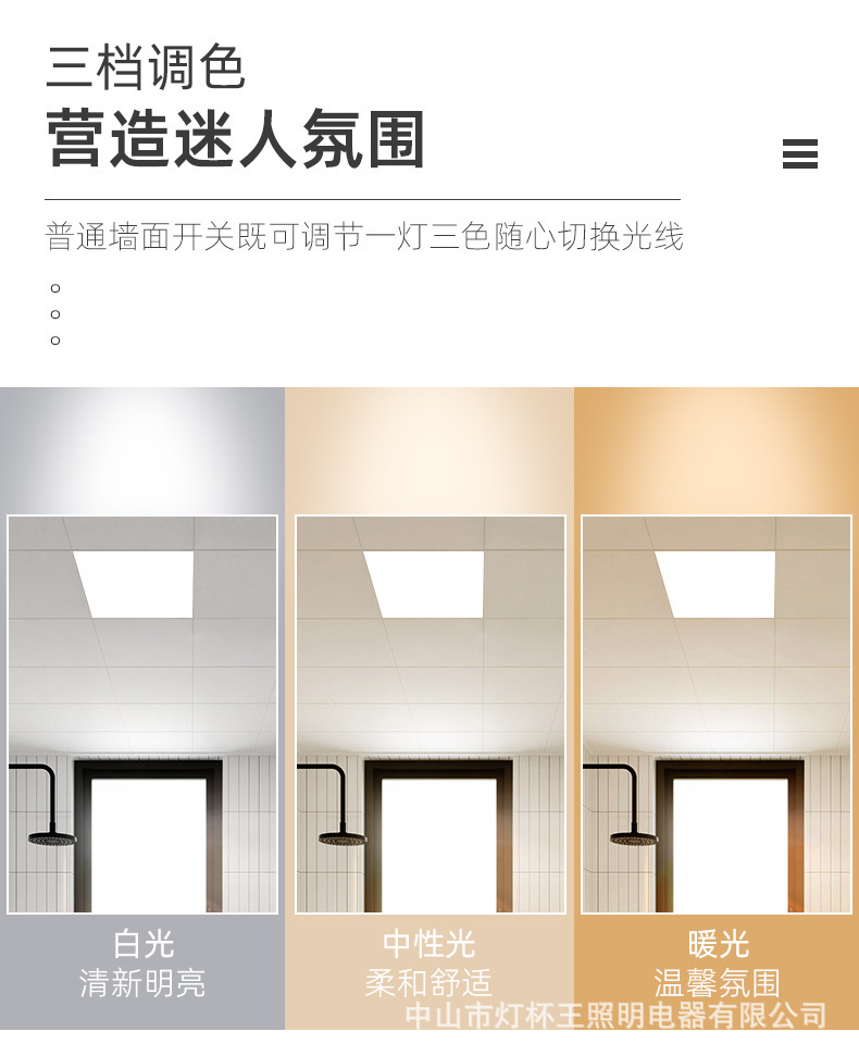 Procesamiento personalizado 600x600led lámpara plana tricolor yeso lana mineral placa integrada techo no estándar lámpara de panel de ingeniería