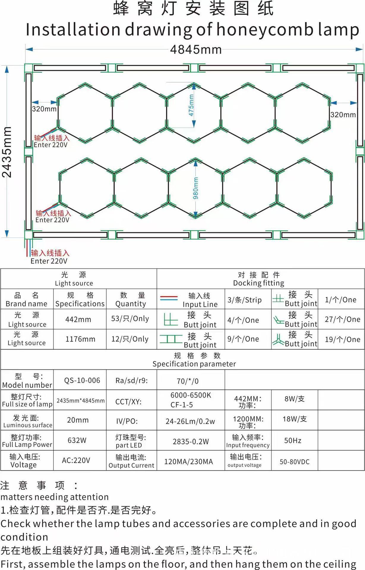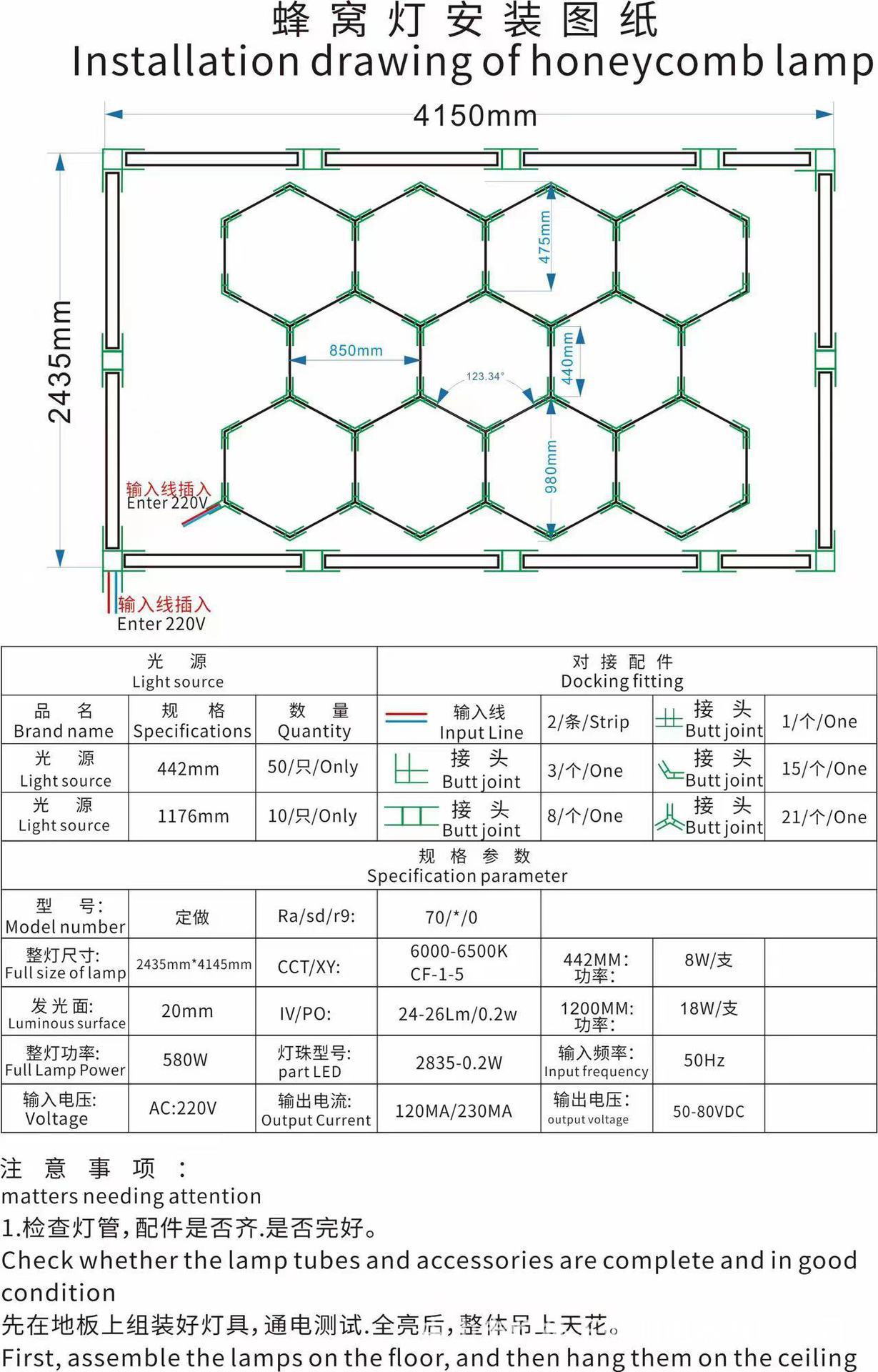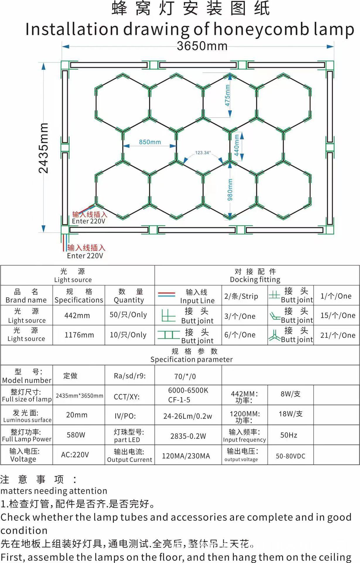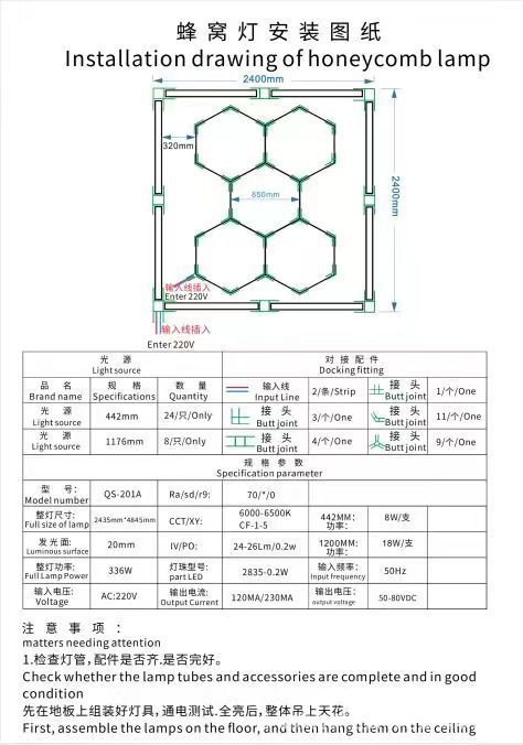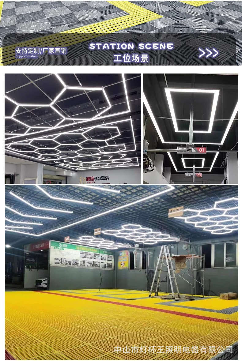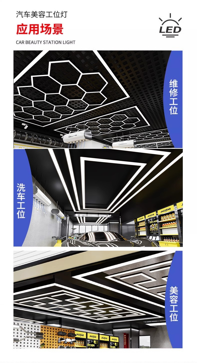 Lámpara de panal transfronteriza gimnasio barbería LED hexagonal empalme a prueba de agua a prueba de polvo luz de lavado de automóviles de alto brillo lámpara de estación de trabajo