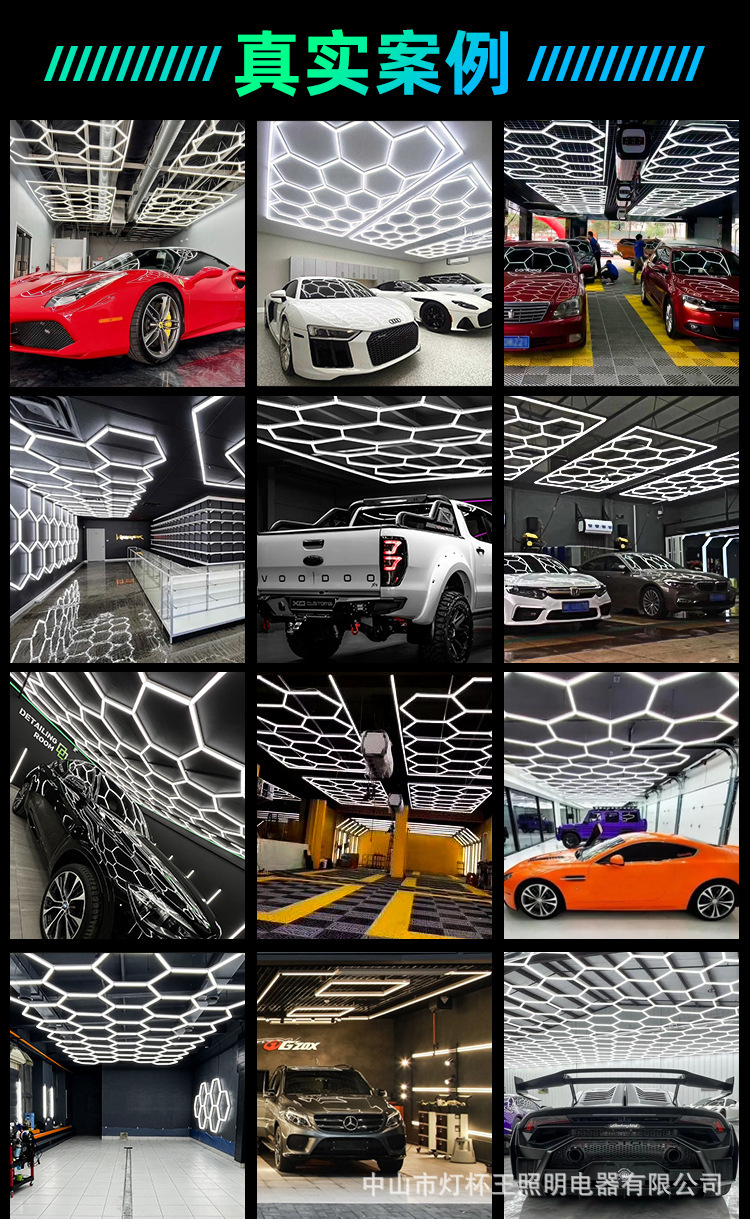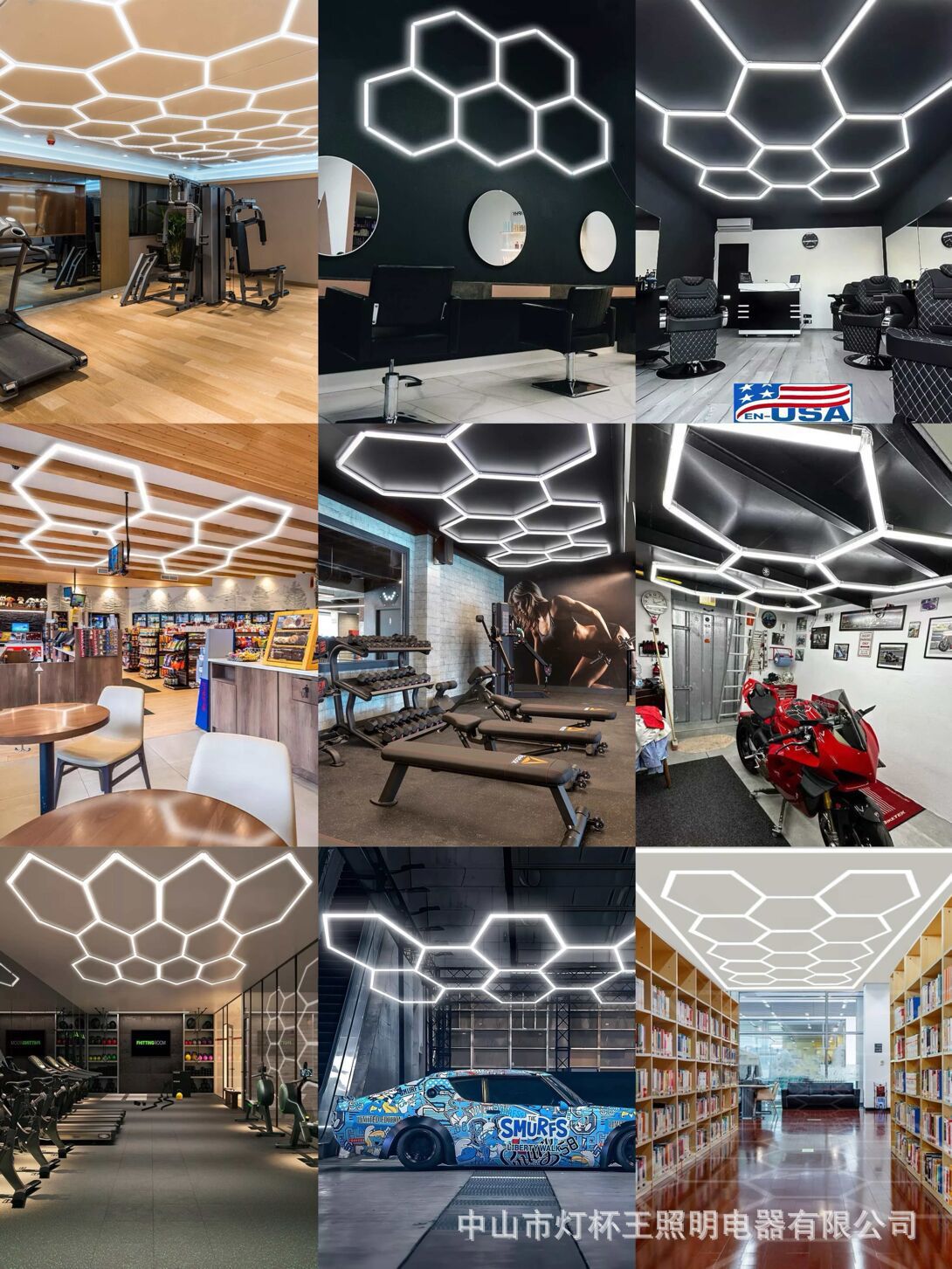 Luz de nido de abeja led gimnasio transfronterizo lámpara de estación de peluquería empalme lámpara hexagonal impermeable al por mayor lámpara de lavado de autos