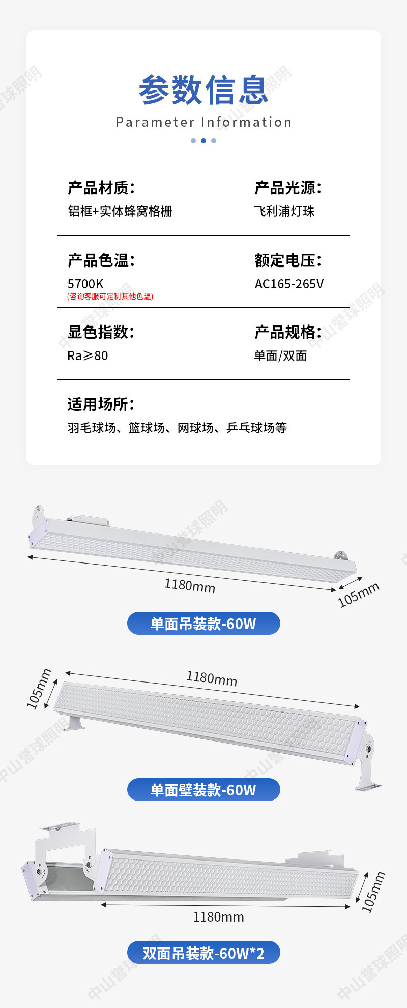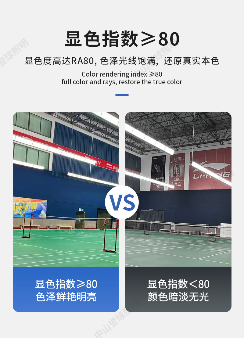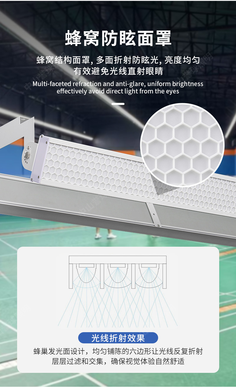 LED防眩目球馆灯 室内无影篮球棒球馆专用灯 无缝拼接羽毛球馆灯
