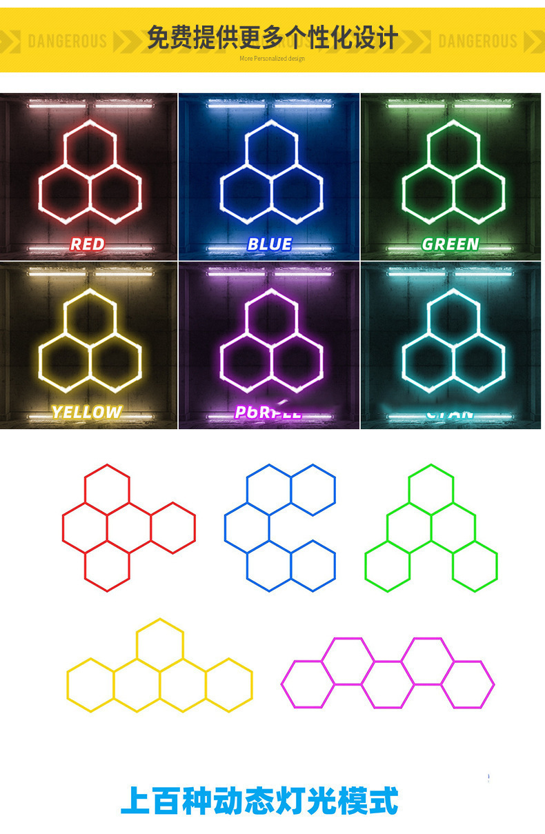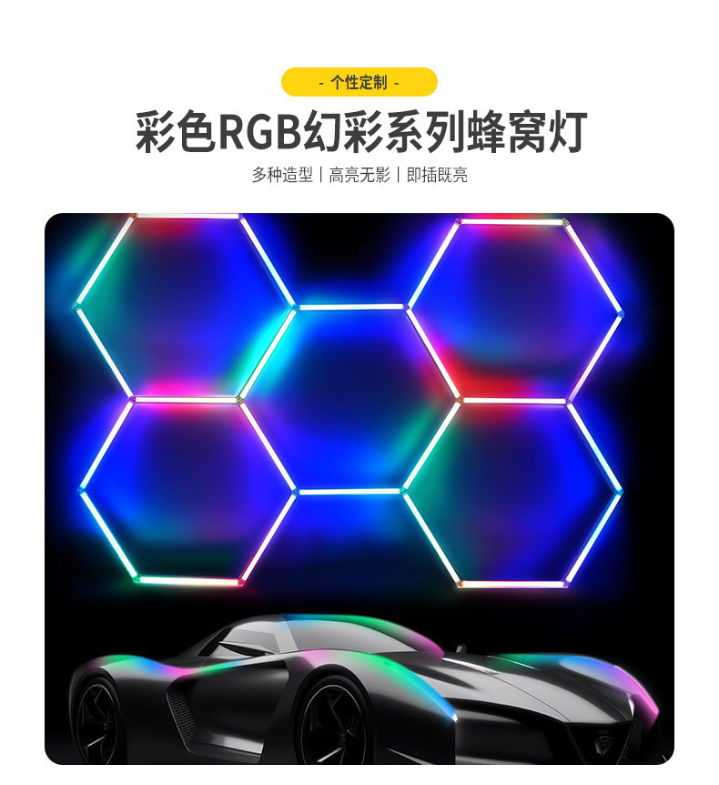 Transfronterizos led luz de atmósfera RGB amplio voltaje 110V colorido panal lámpara hexagonal para garaje lavado de automóviles panal lámpara de empalme
