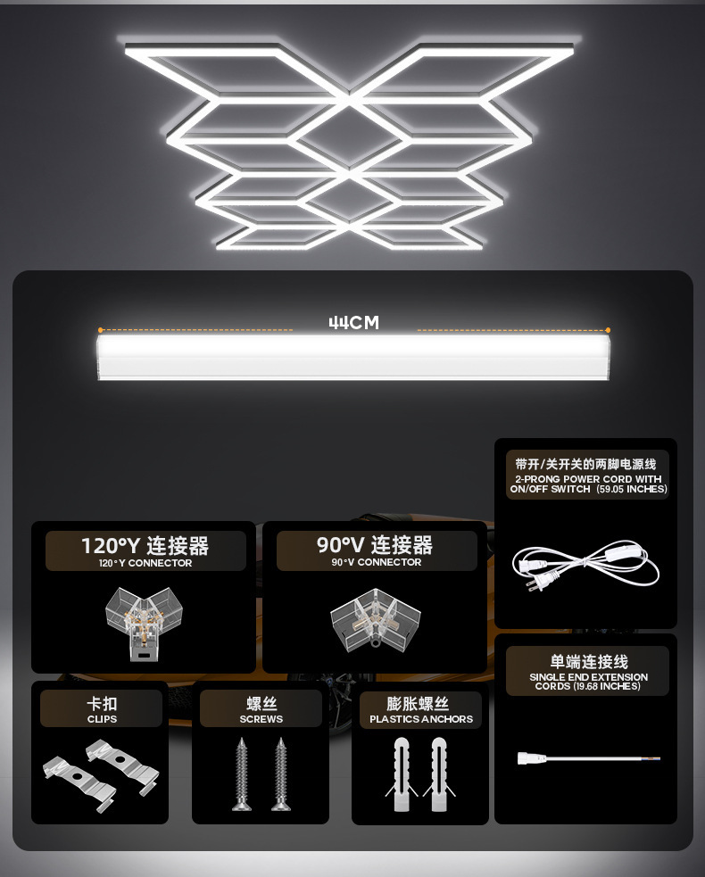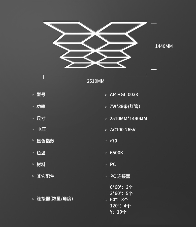 38 conectores de tubo de luz - 266w + pc