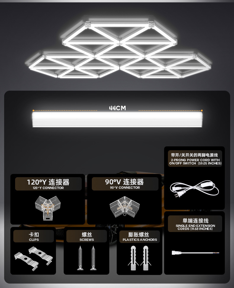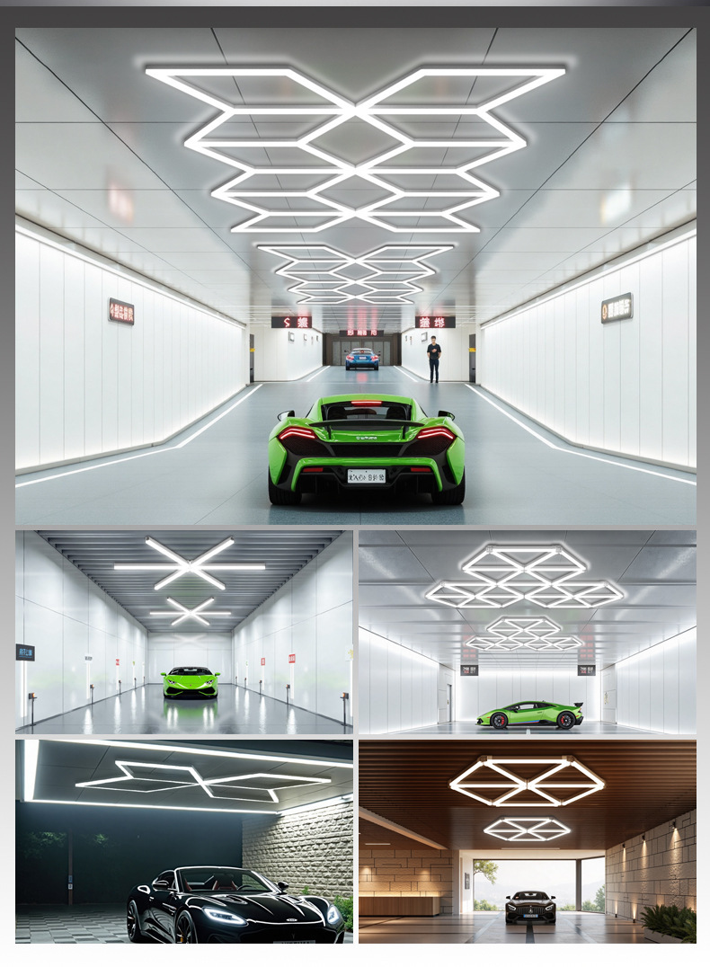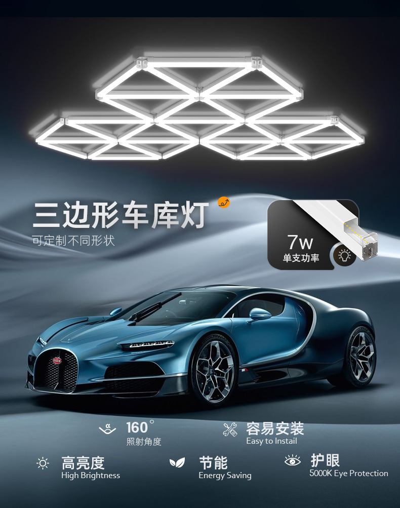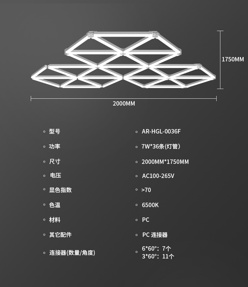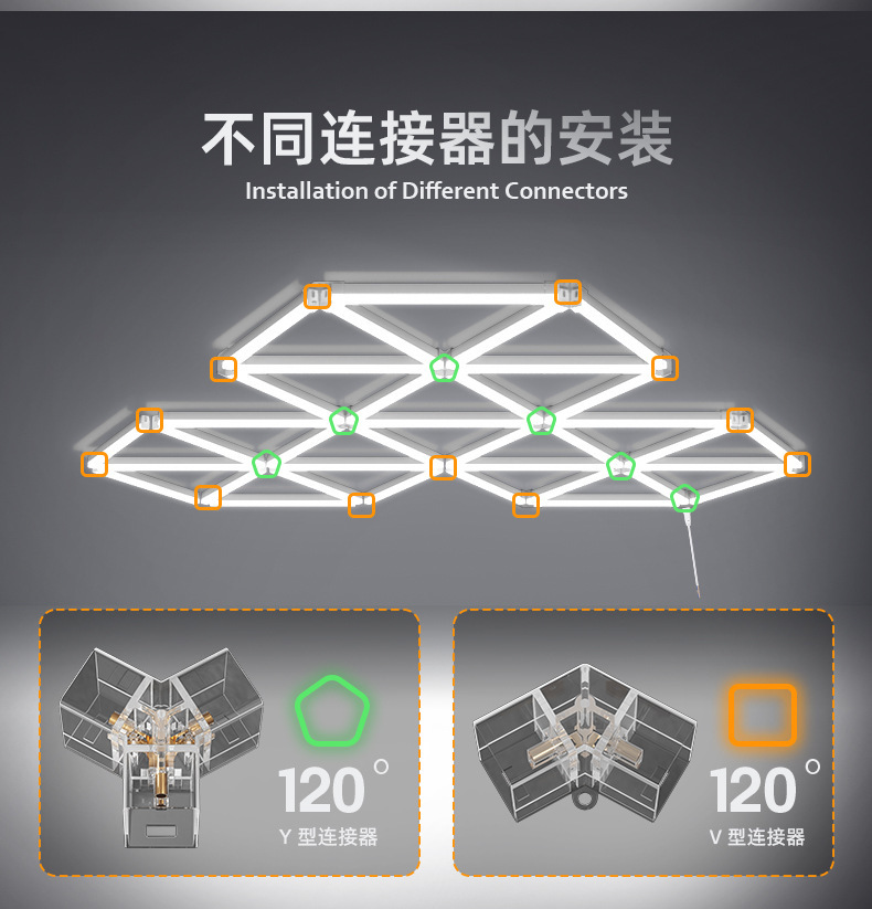 Triangular panal LED lámpara de garaje gimnasio pared empalmado techo lámpara de forma especial integrada lámpara de cable suspendida comercial