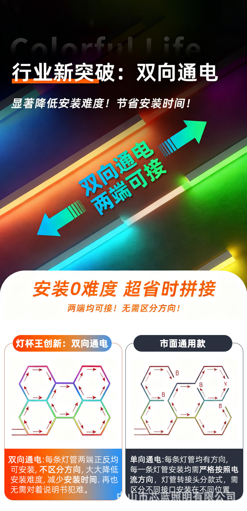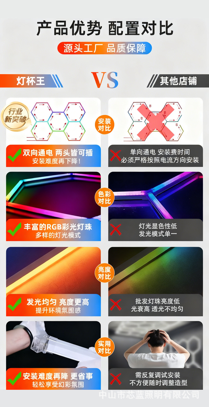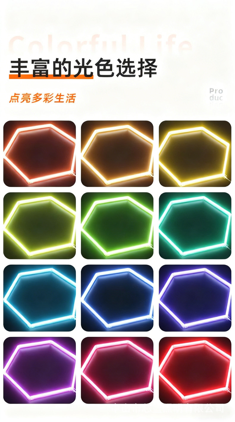 Luz transfronteriza deslumbrante RGB atmósfera de cambio de color caballo corriendo lámpara led nido de control aplicación de lavado de autos estación de garaje lámpara hexagonal
