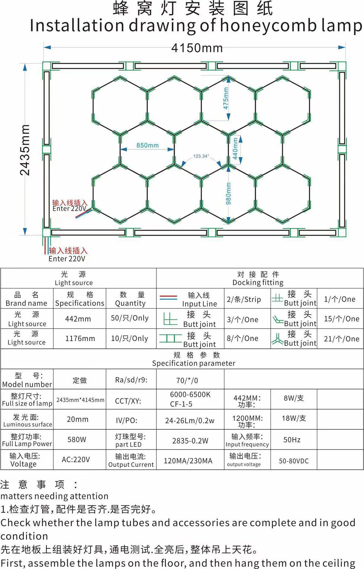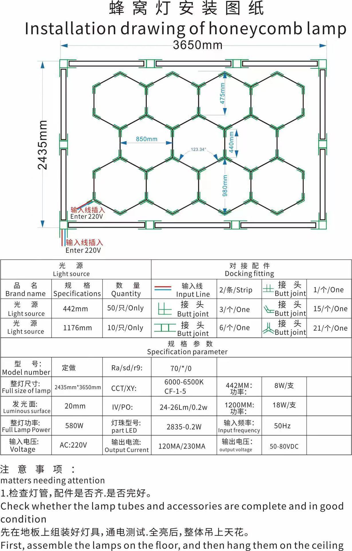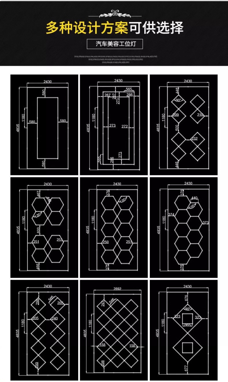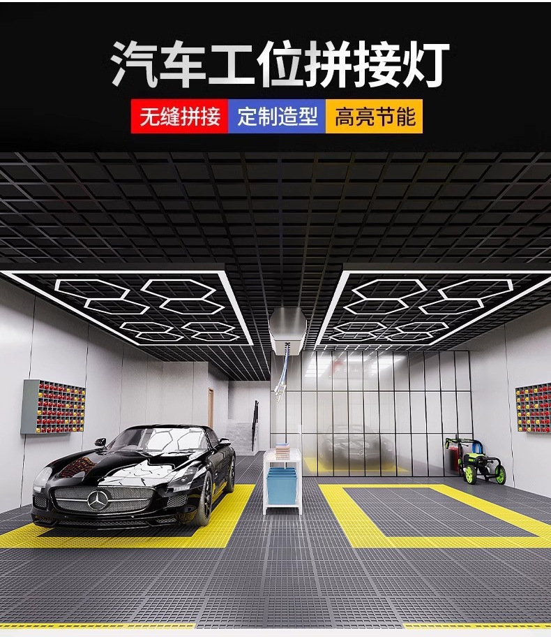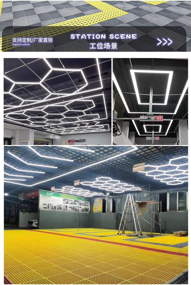 Lámpara de panal 110V transfronteriza atenuable lámpara de garaje hexagonal película impermeable lámpara de lavado de automóviles lámpara de estación de belleza de automóviles