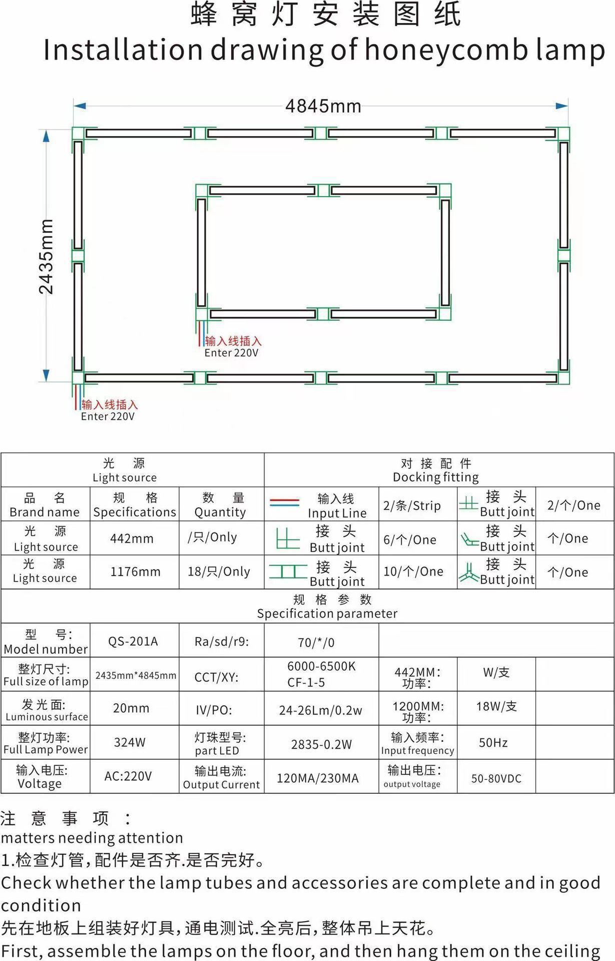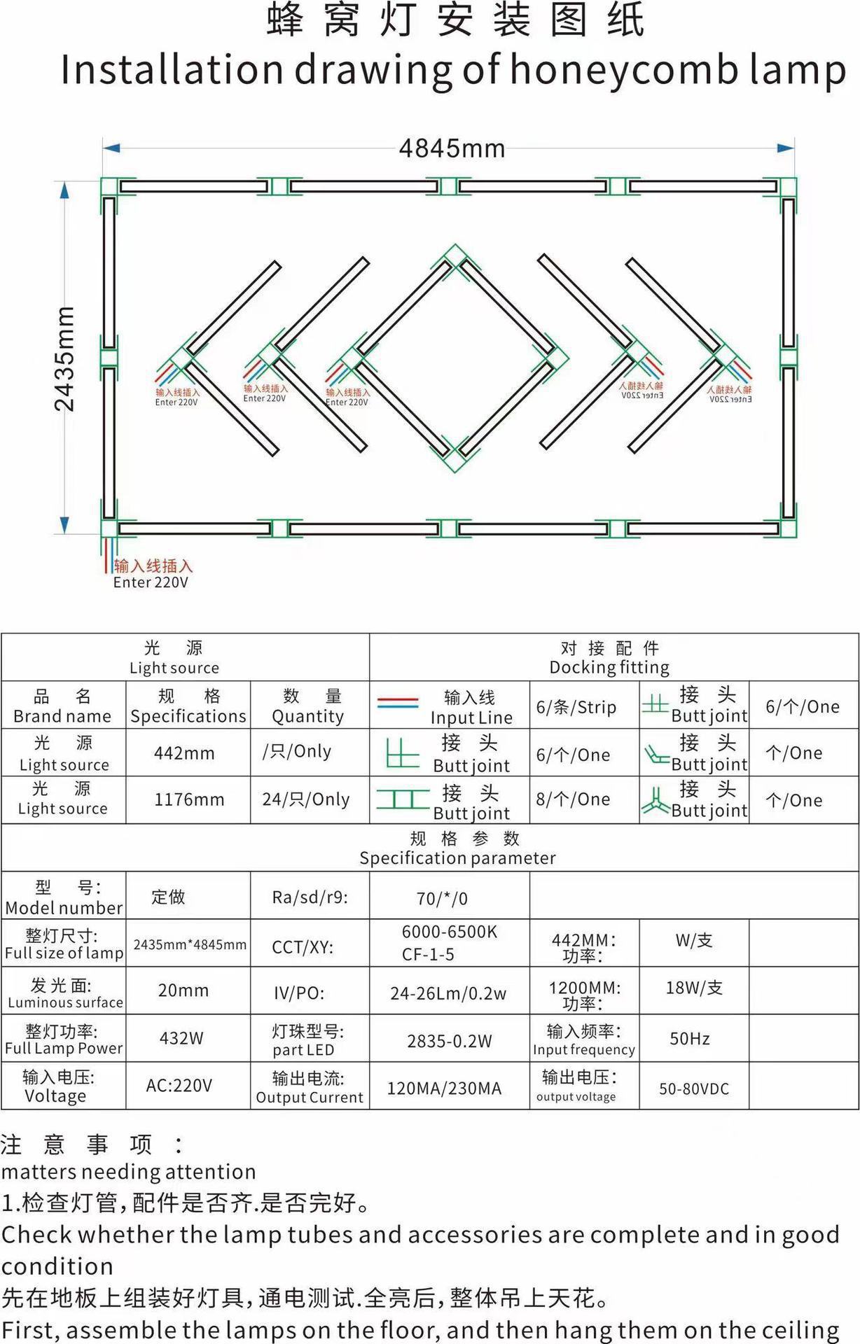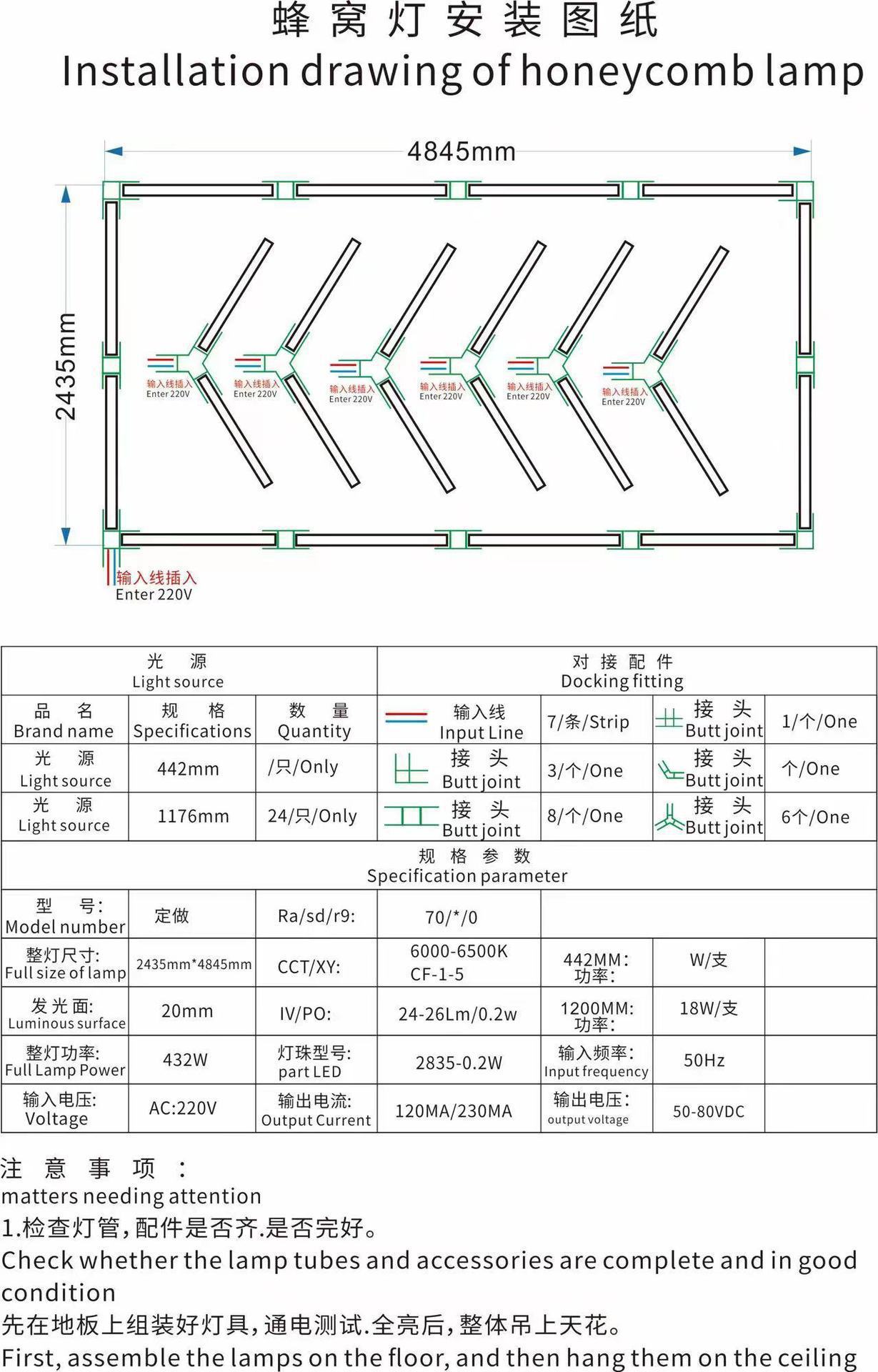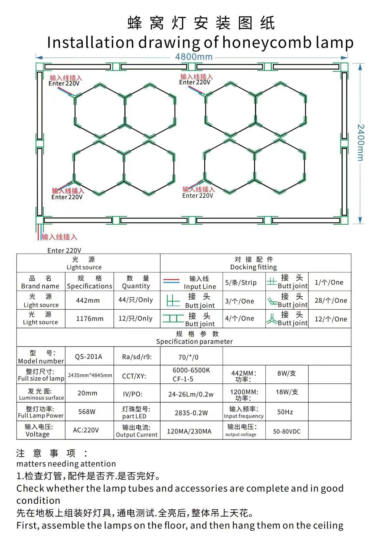 Lámpara de panal 110V transfronteriza atenuable lámpara de garaje hexagonal película impermeable lámpara de lavado de automóviles lámpara de estación de belleza de automóviles