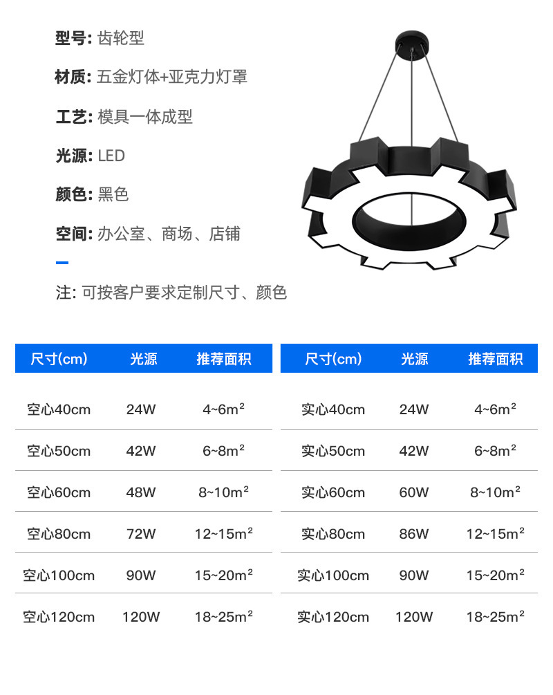 Número de artículoLámpara de forma de engranaje sólido hueco