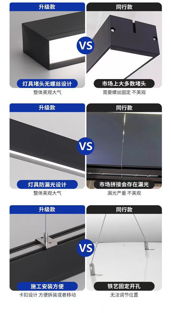 La parte superior e inferior de la cáscara negra ilumina las rayas horizontales para evitar el deslumbramiento y la regulación de la luz sin electrodos.