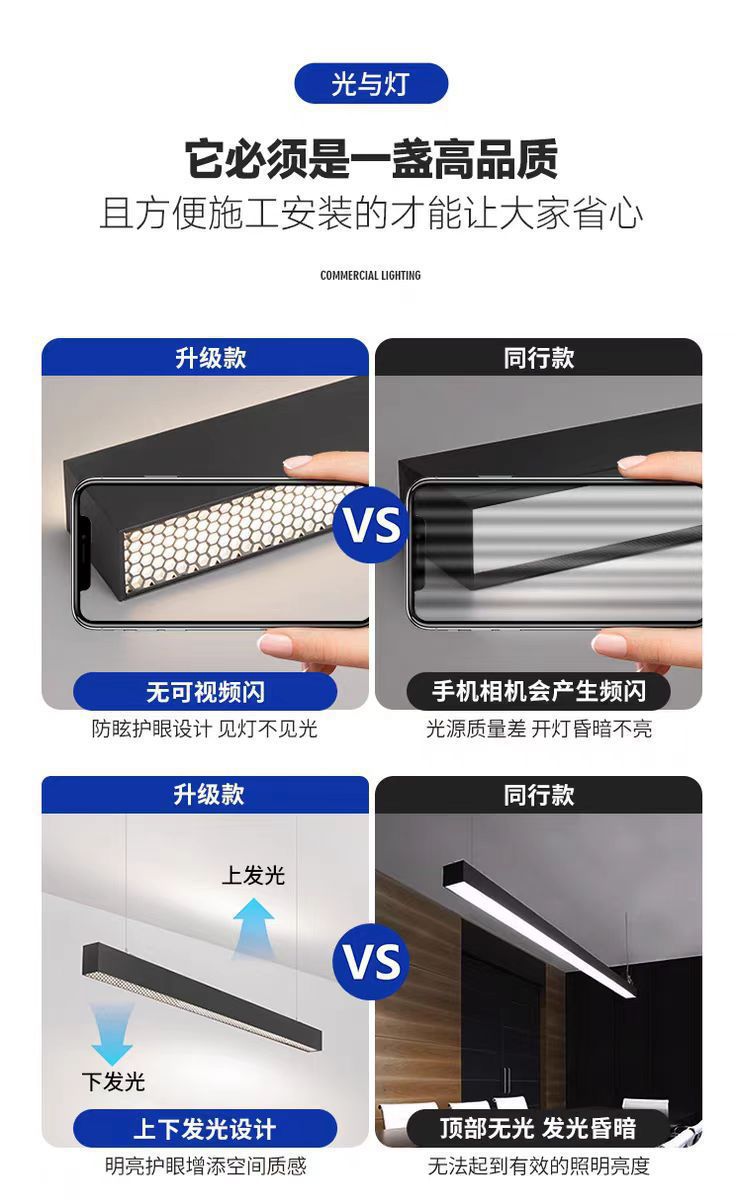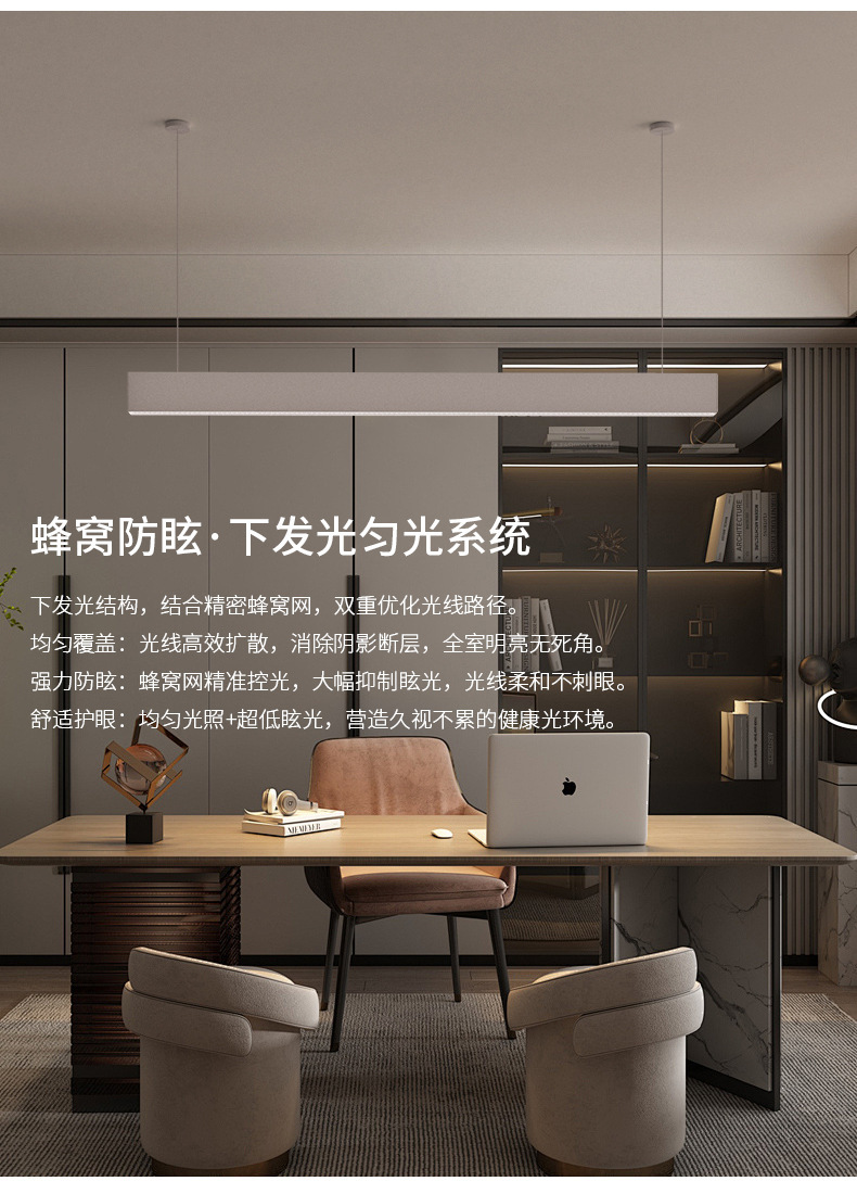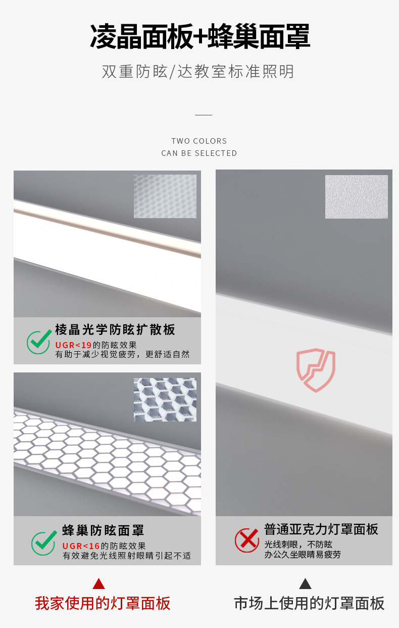 Lámpara de protección de ojos LED simple empalmada sin costuras para el área de la oficina luminosa hacia arriba y hacia abajo antideslumbrante de red de abeja tipo lámpara de lámpara
