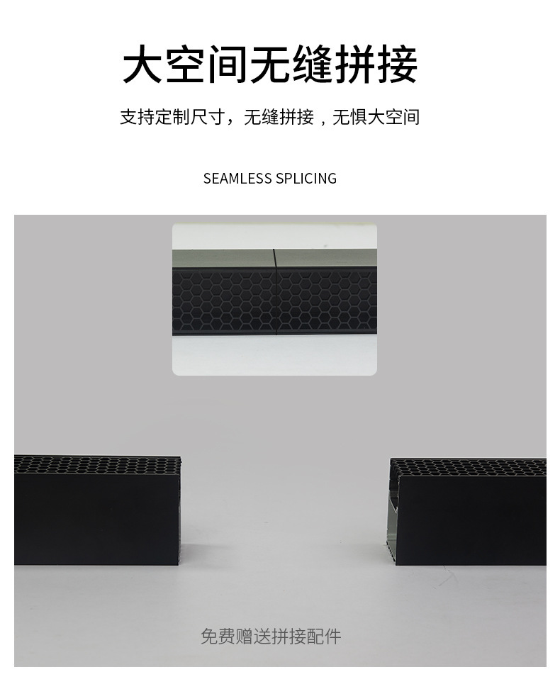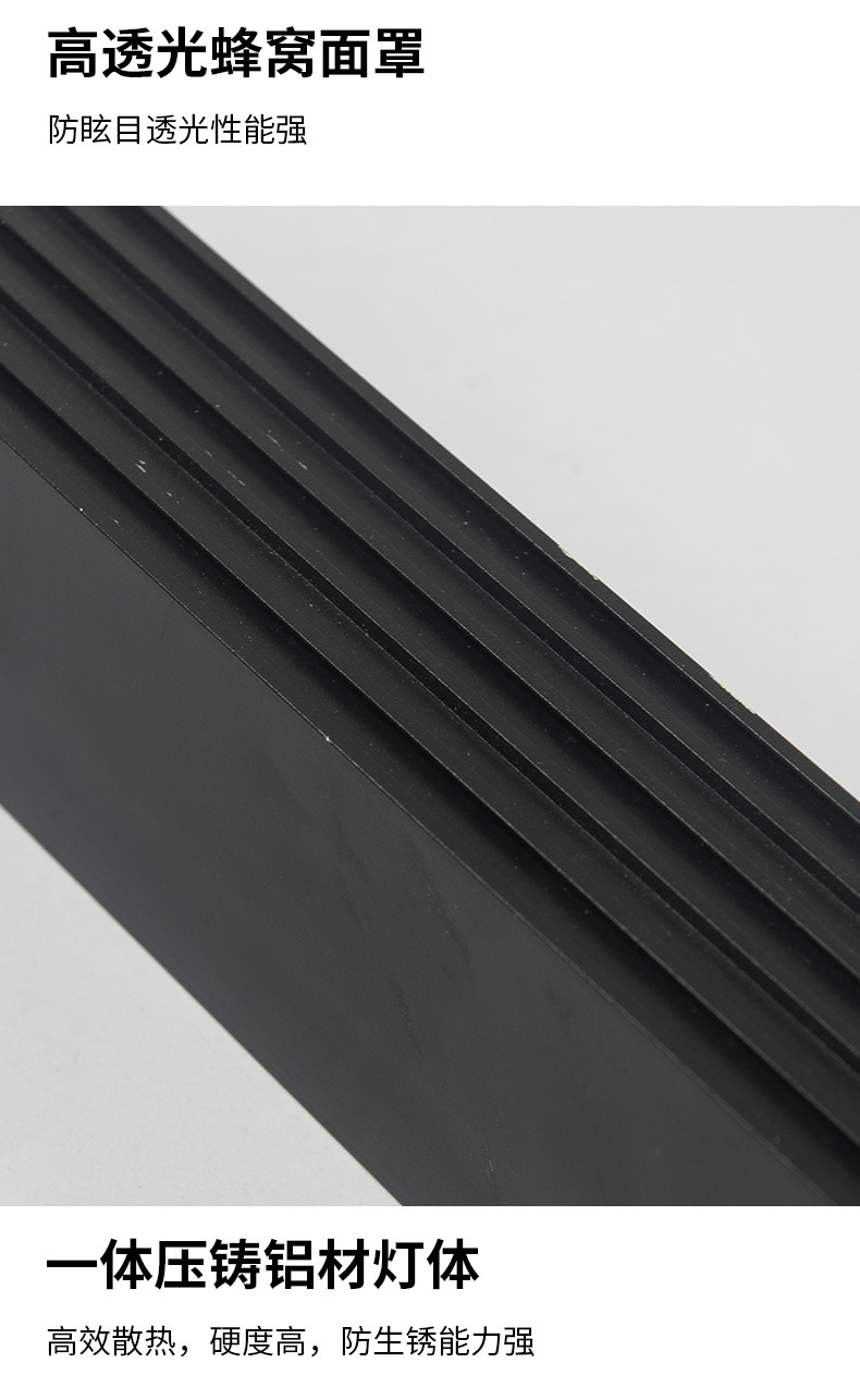La red de panales luminosos superior e inferior de la cáscara negra es antideslumbrante y sin regulación de la luz.