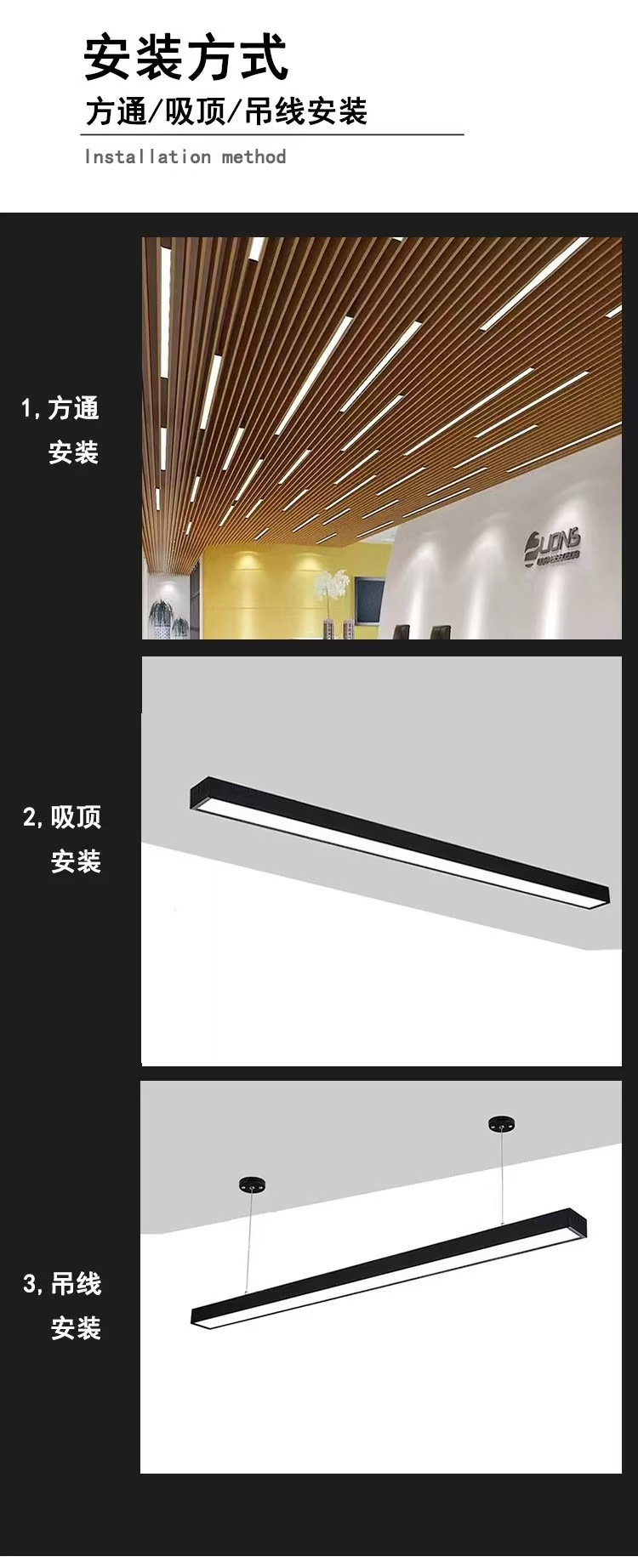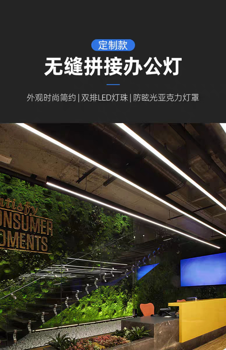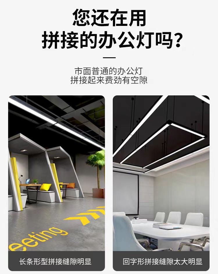Lámpara de banda especial de empalme sin costura LED cuadrante para sala de conferencias de banda de techo de oficina de supermercado lámpara de oficina comercial