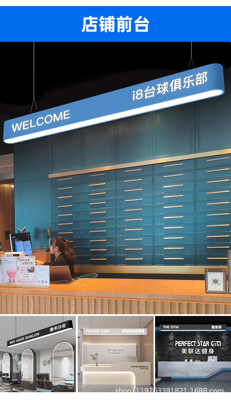 logotipo letras hueco lámpara de tira tiendas de recepción gimnasio personalidad estilo candelabros sala de billar atmósfera lámpara comercial